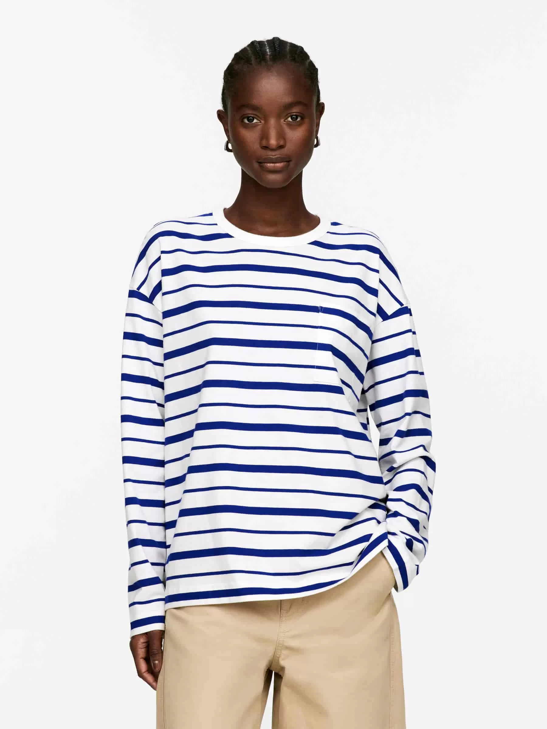 ARKE Damen SHIRO Entspanntes T-Shirt Blau/Weiß