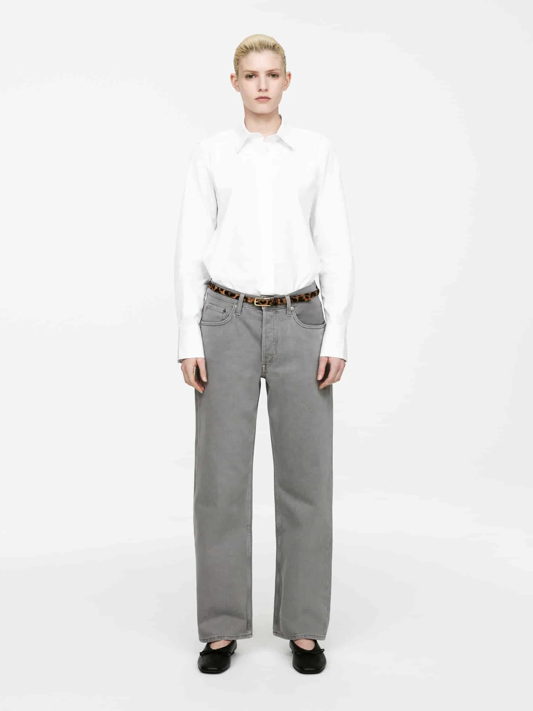 SHORE ist aus nicht dehnbarem Denim gefertigt und hat eine niedrige Taille, eine entspannte Passform und gerade, lockere Beine. Knopfleiste.