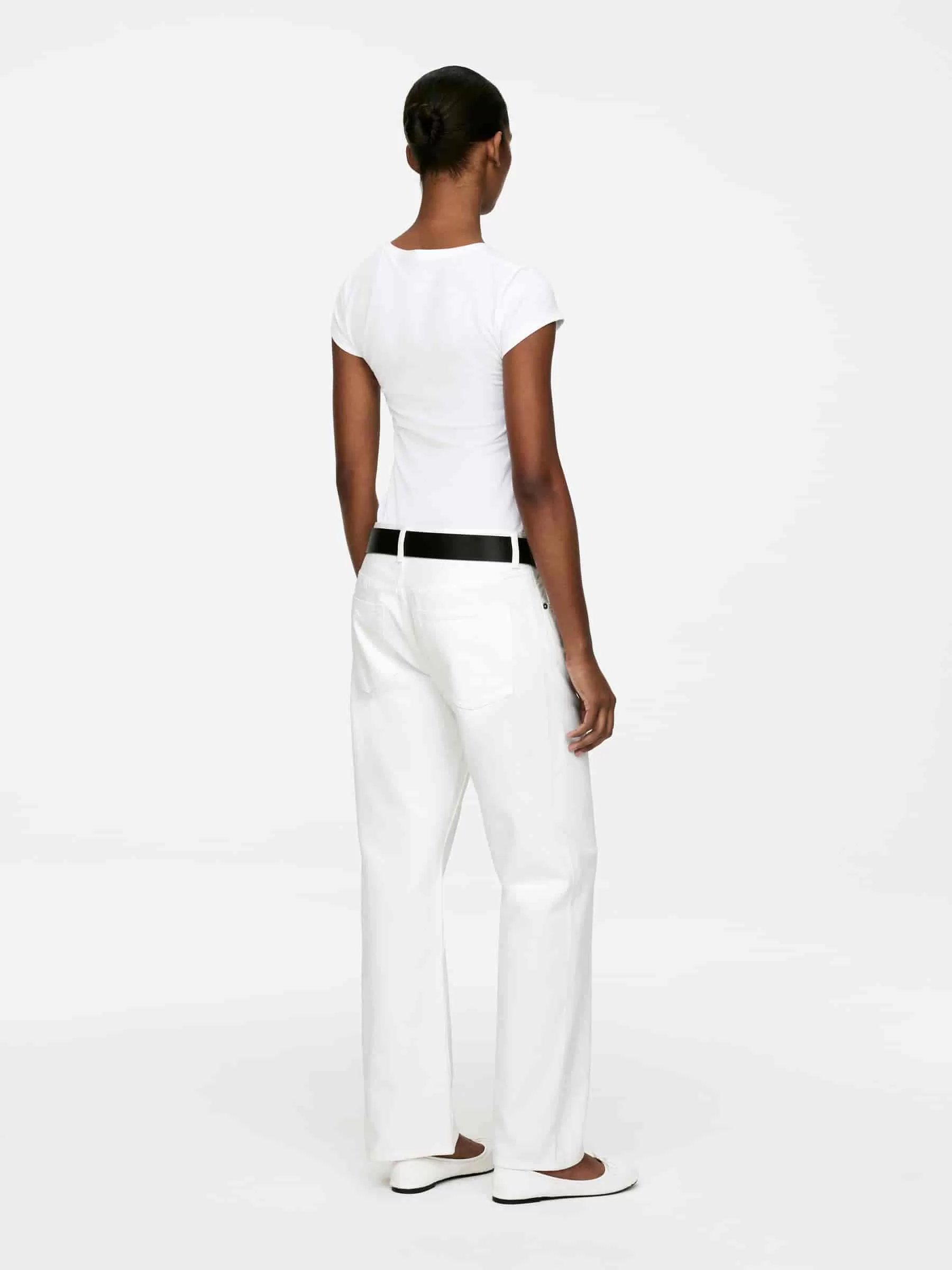 SHORE ist aus nicht dehnbarem Denim gefertigt und hat eine niedrige Taille, eine entspannte Passform und gerade, lockere Beine. Knopfleiste.