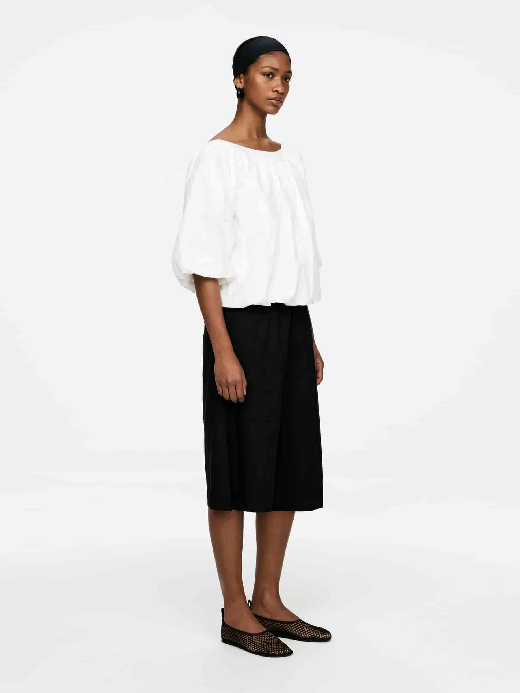Lange Shorts aus einer Leinenmischung. Mit schrägen Seitentaschen und einer einzelnen aufgesetzten Tasche hinten. Gummizug in der Taille, genähte Falten vorne und Bügelfalten hinten.