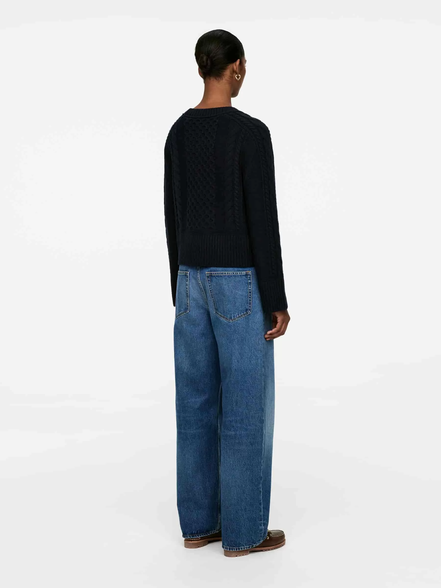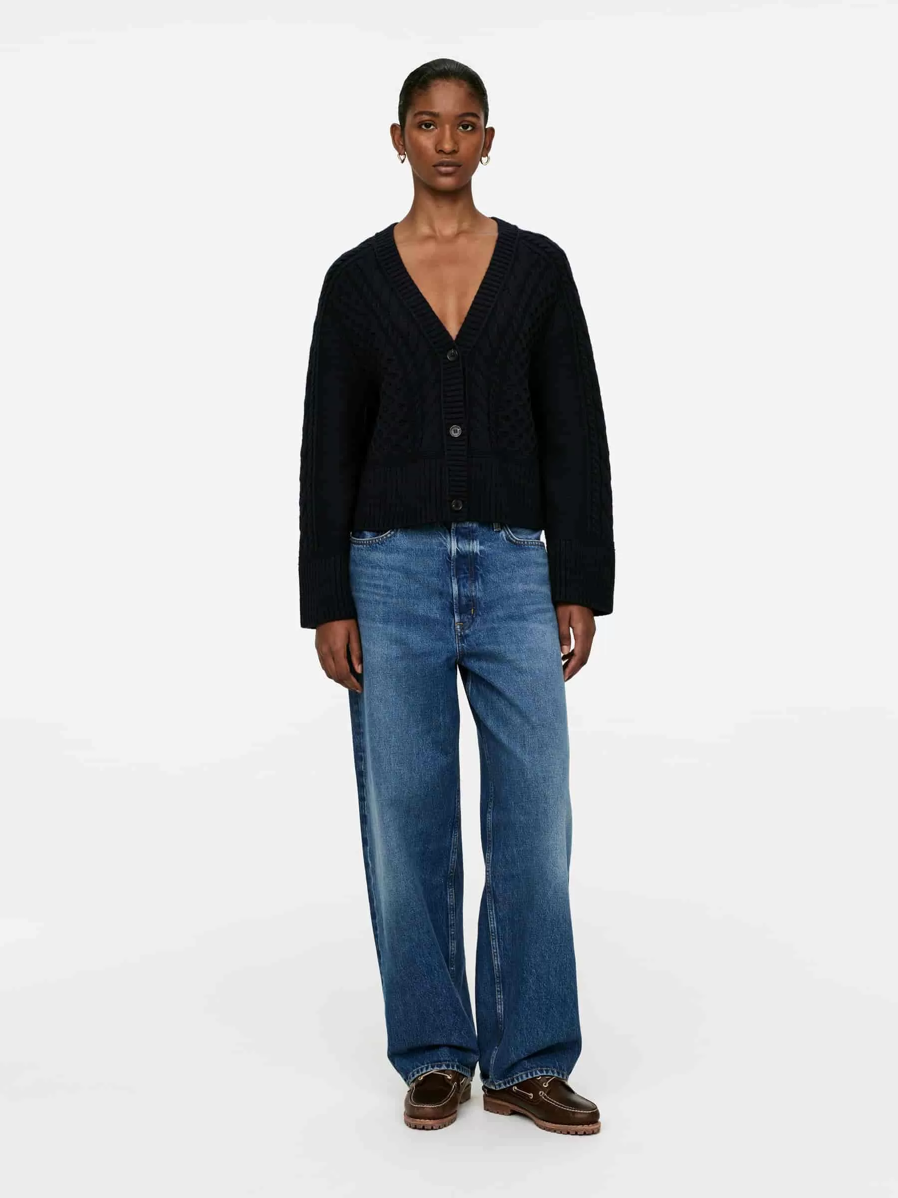 ARKE Damen Strickjacke aus Wolle mit Zopfmuster Dunkelblau