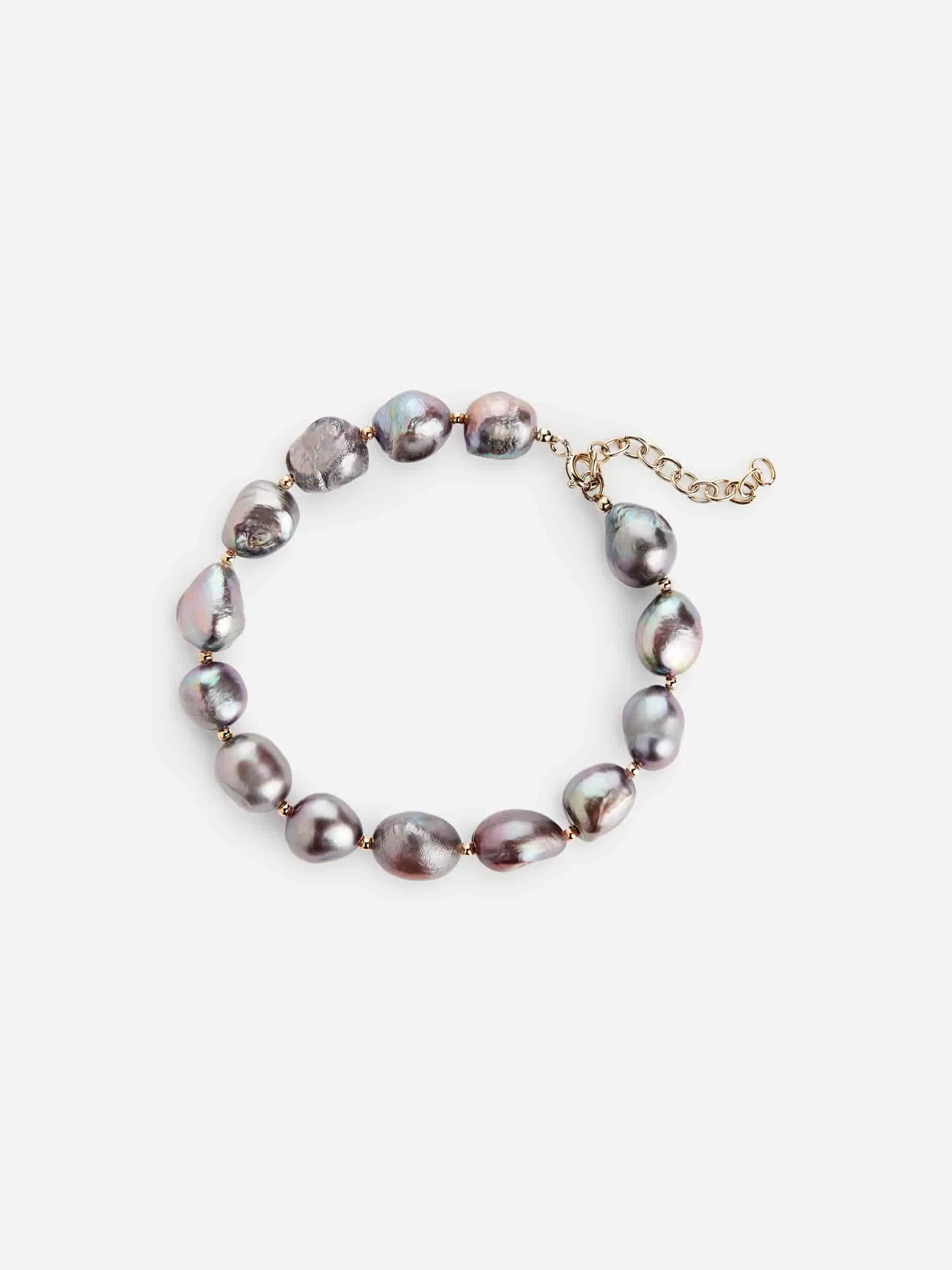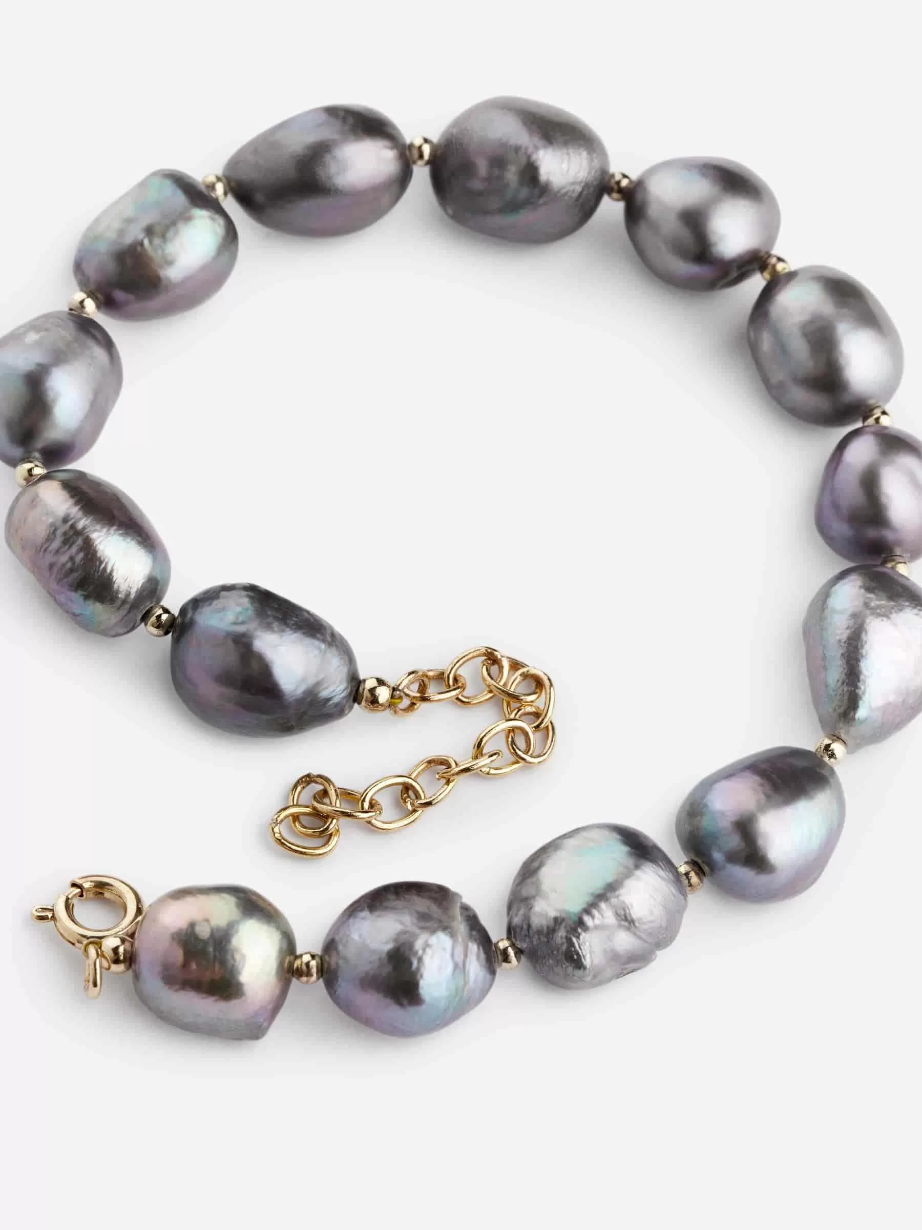ARKE Damen Süßwasserperlenarmband Dunkelgrau/Gold