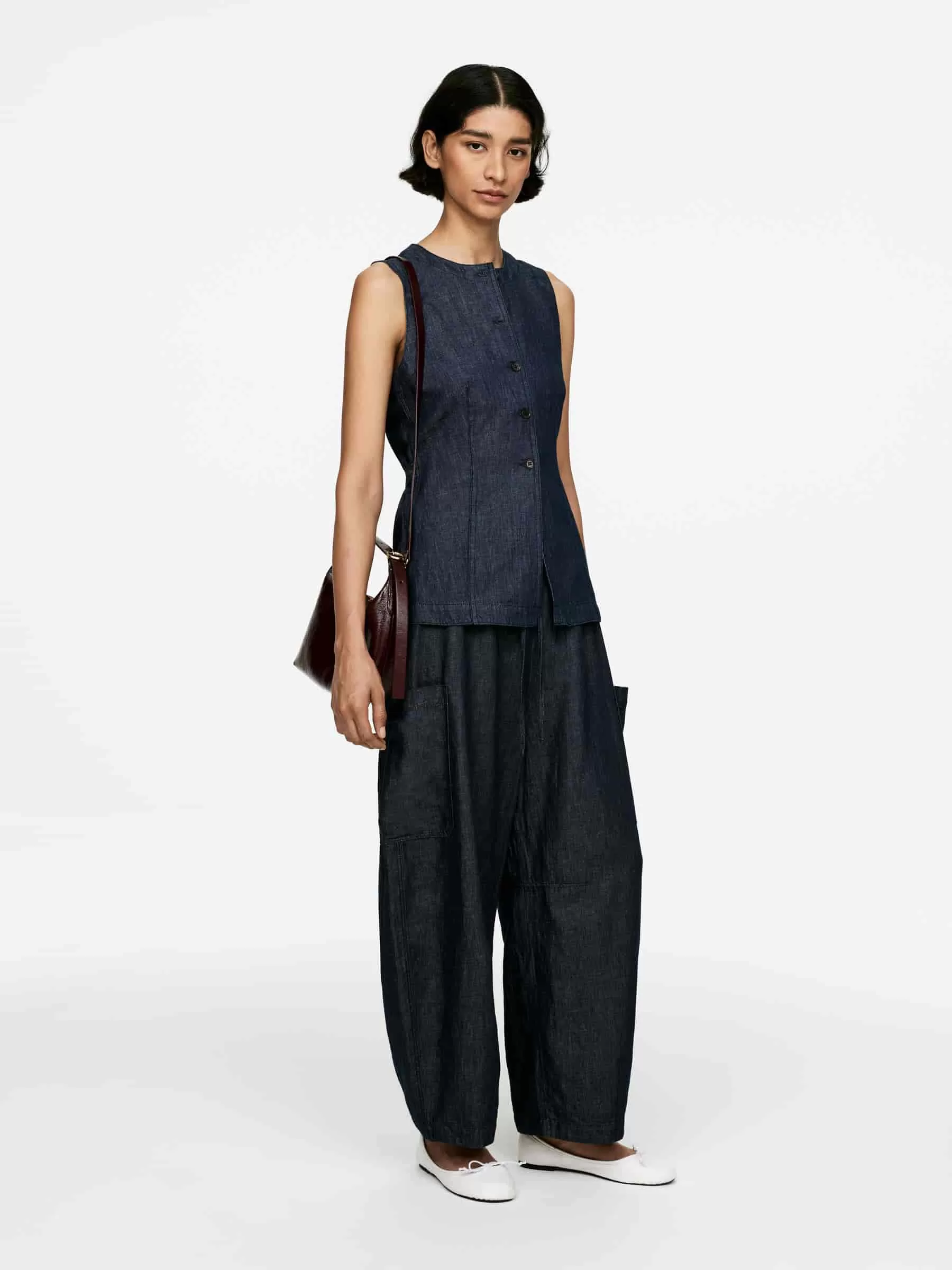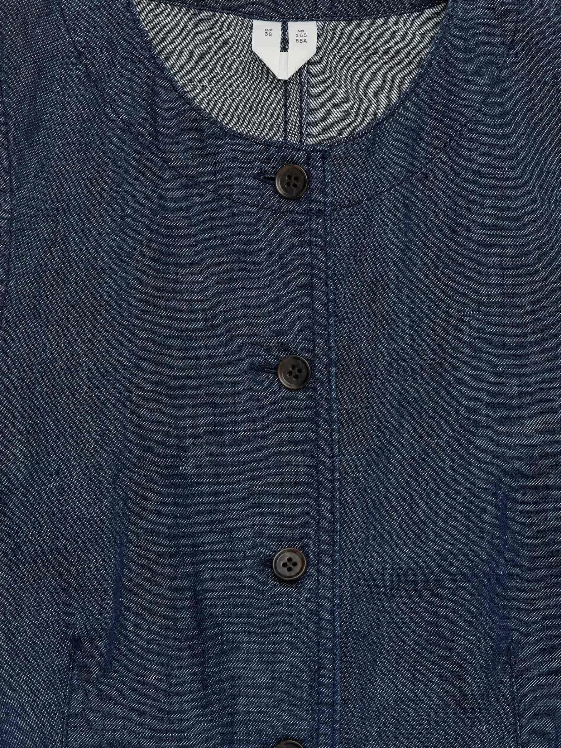 Passgenaue Jeansweste aus einer Baumwoll-Leinen-Mischung. Knopfverschluss. Normale Passform.
