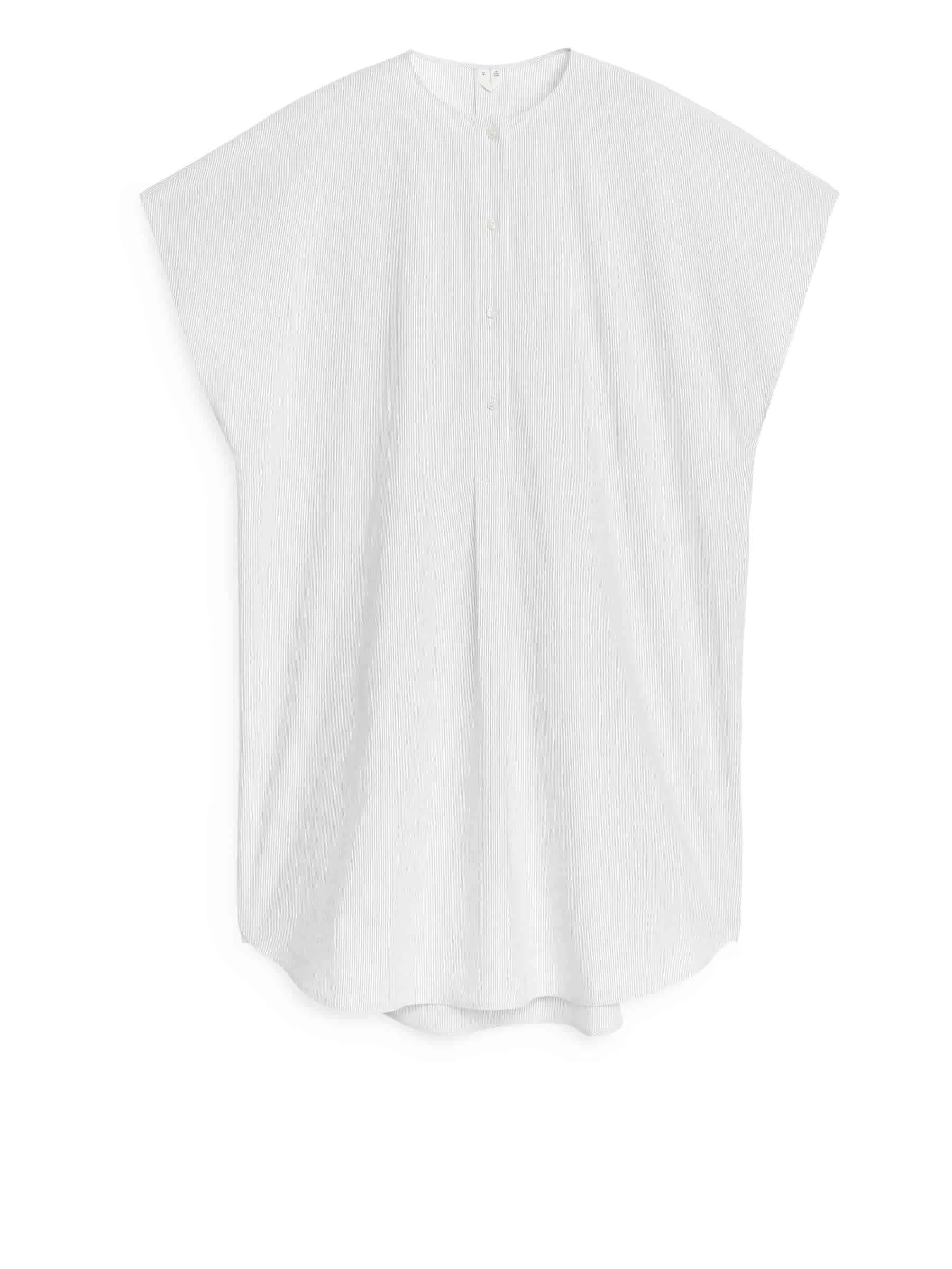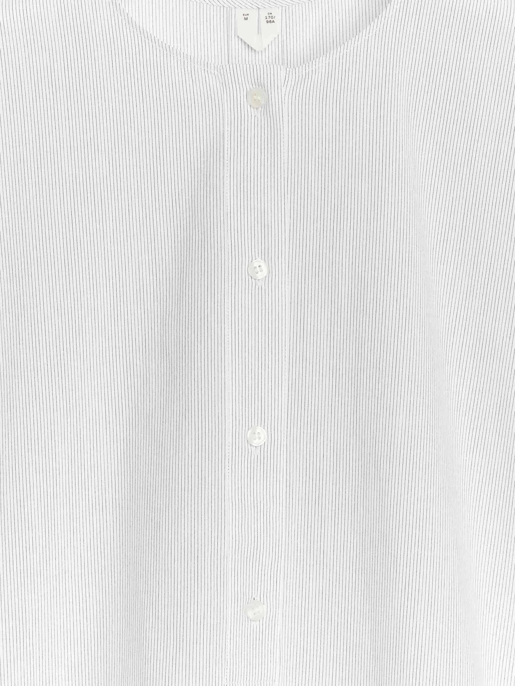 Kragenlose Tunika mit Flügelärmeln aus gewaschenem Baumwollgewebe. Ein locker sitzender Stil mit geknöpfter halber Knopfleiste.