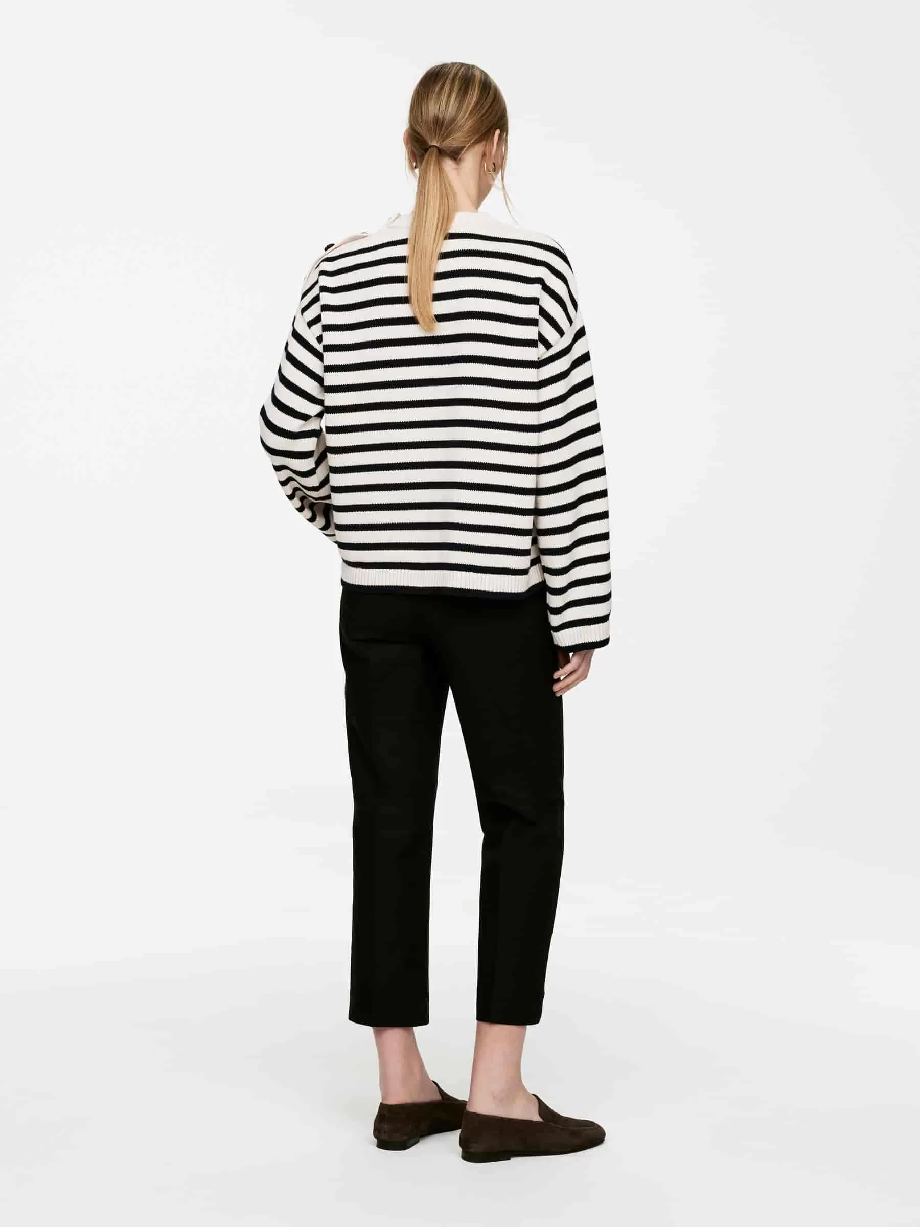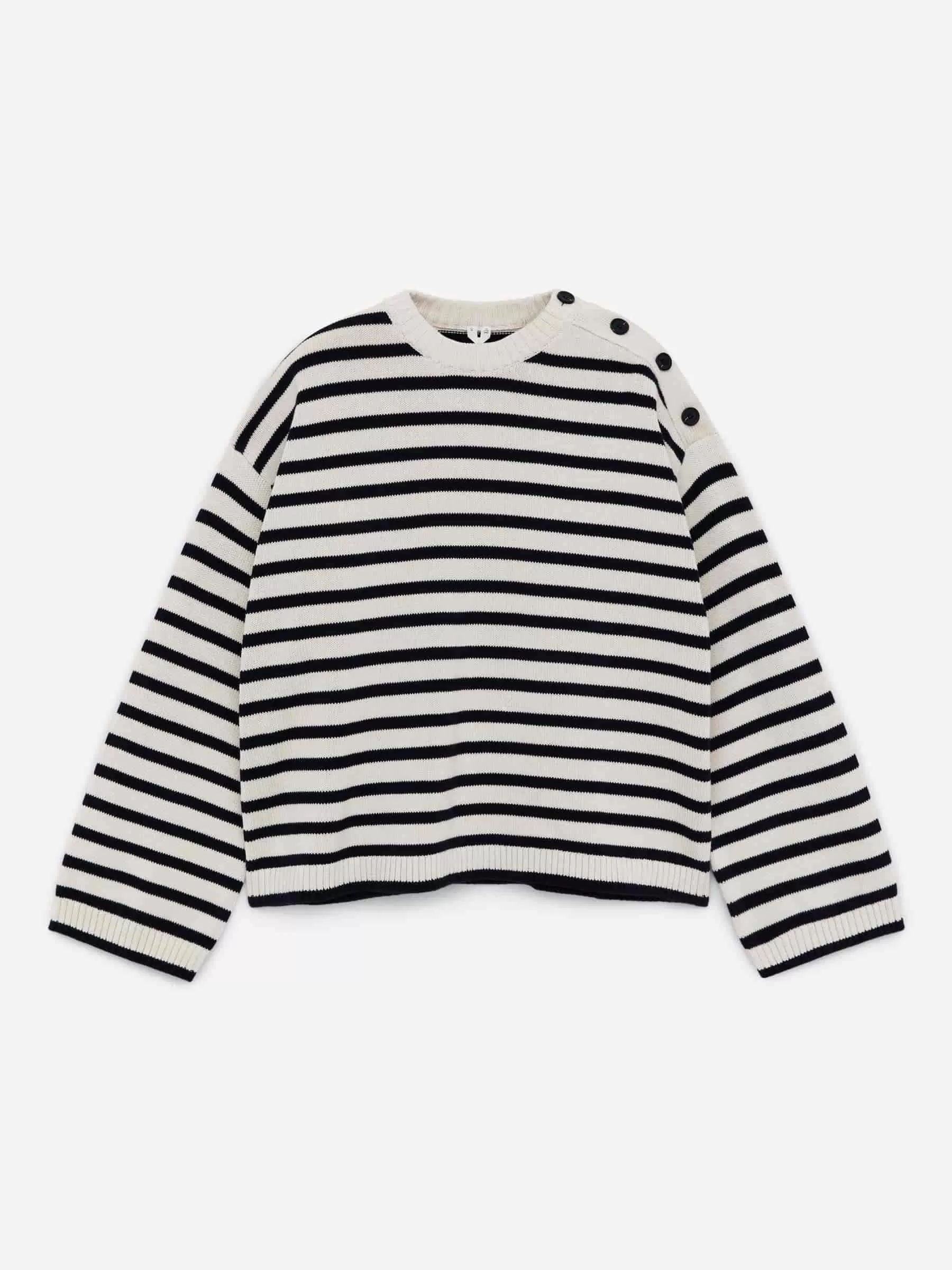 Dieser Pullover aus weicher Baumwolle hat eine entspannte Passform und ist mit Knöpfen seitlich am Hals versehen. Gerippte Abschlüsse.