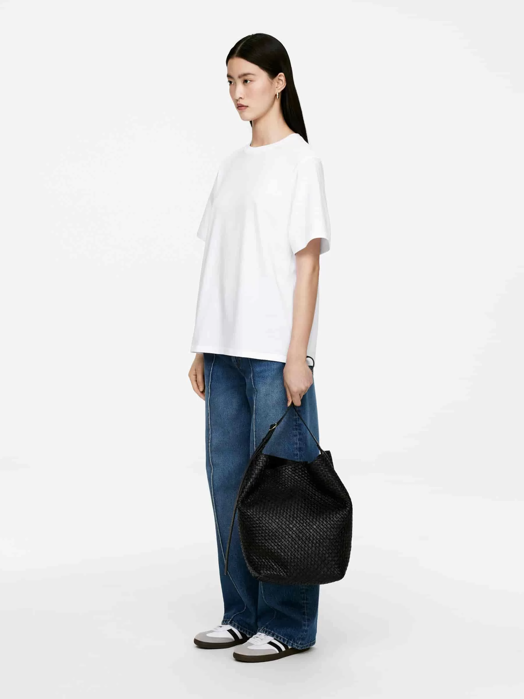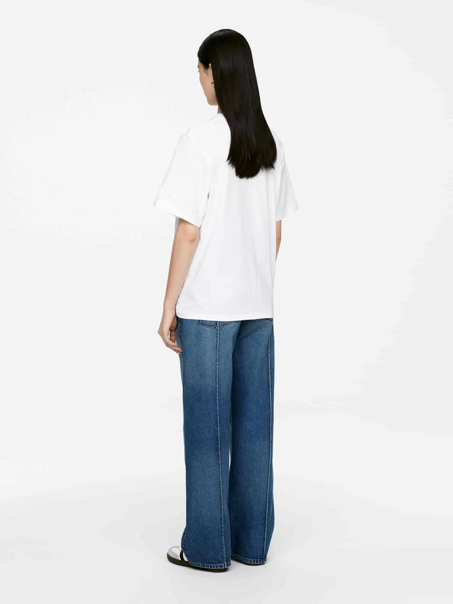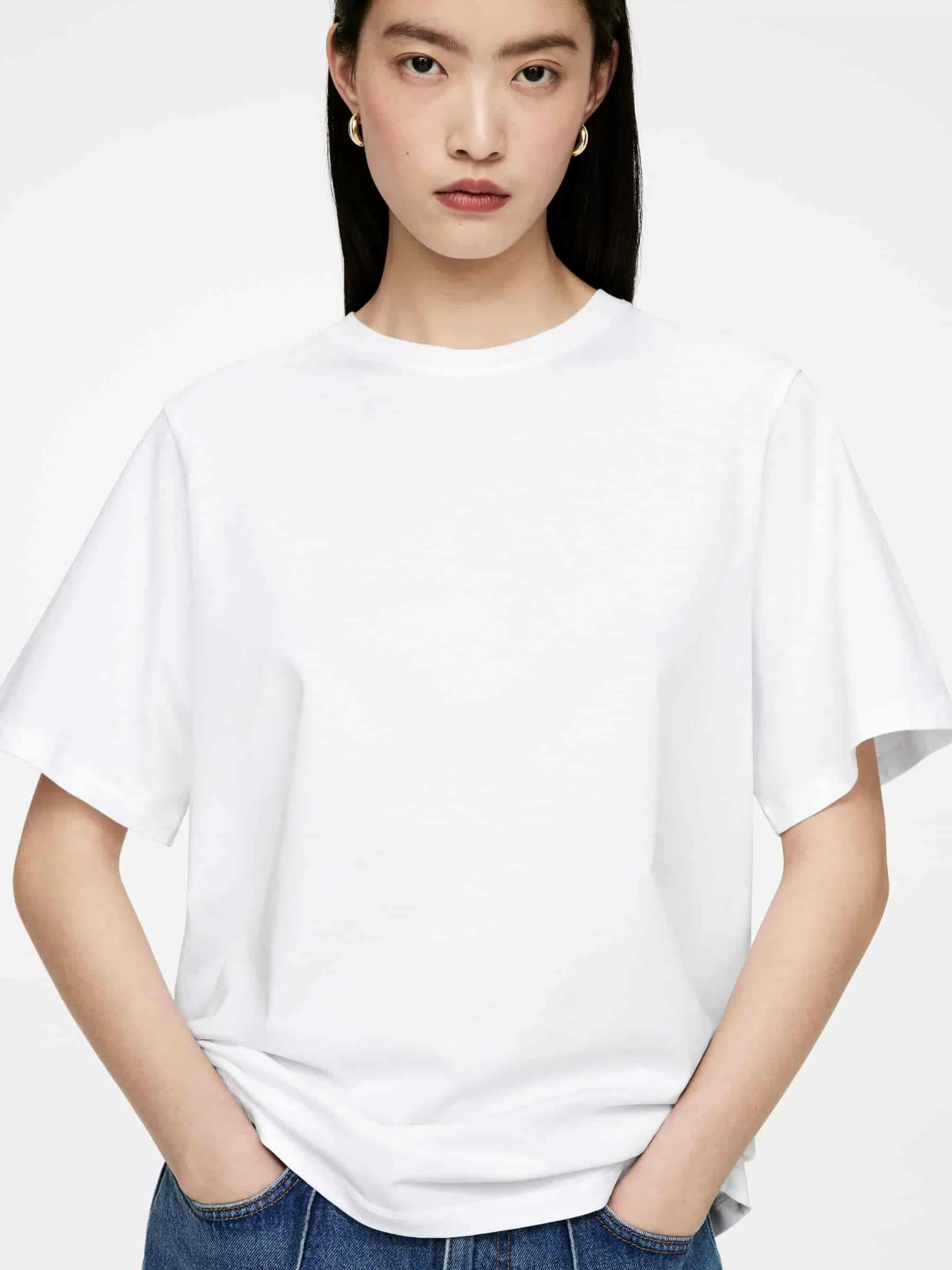 Übergroßes T-Shirt aus weichem Baumwolljersey. Mit einem breiteren gerippten Halsausschnitt und weiten Ärmeln.