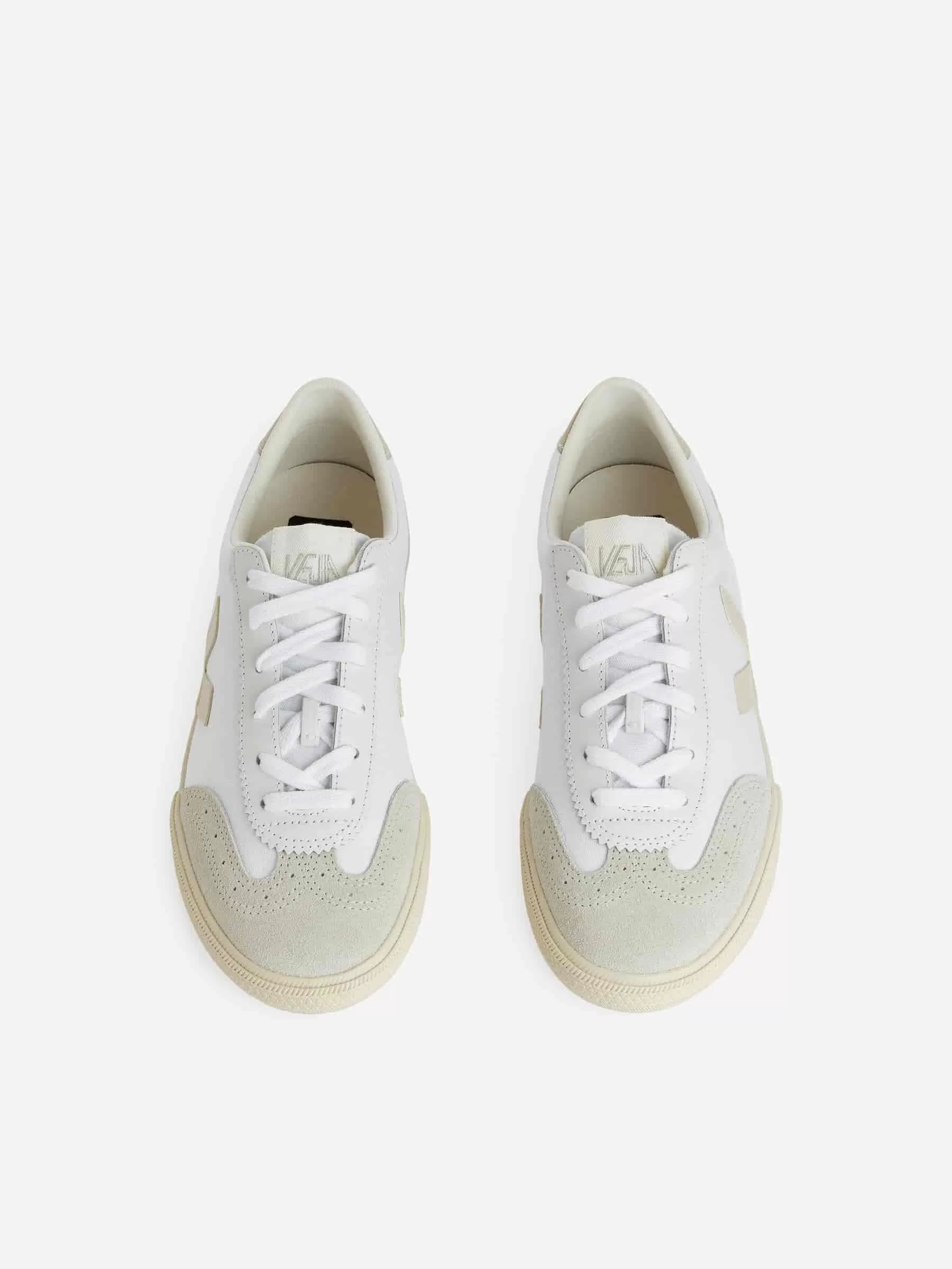 Low-Top-Sneaker von Veja. Der Veja Volley ist vom Volleyballstil der 70er-Jahre inspiriert und verfügt über ein Obermaterial aus Baumwolle und Einsätze aus Leder und Wildleder.
