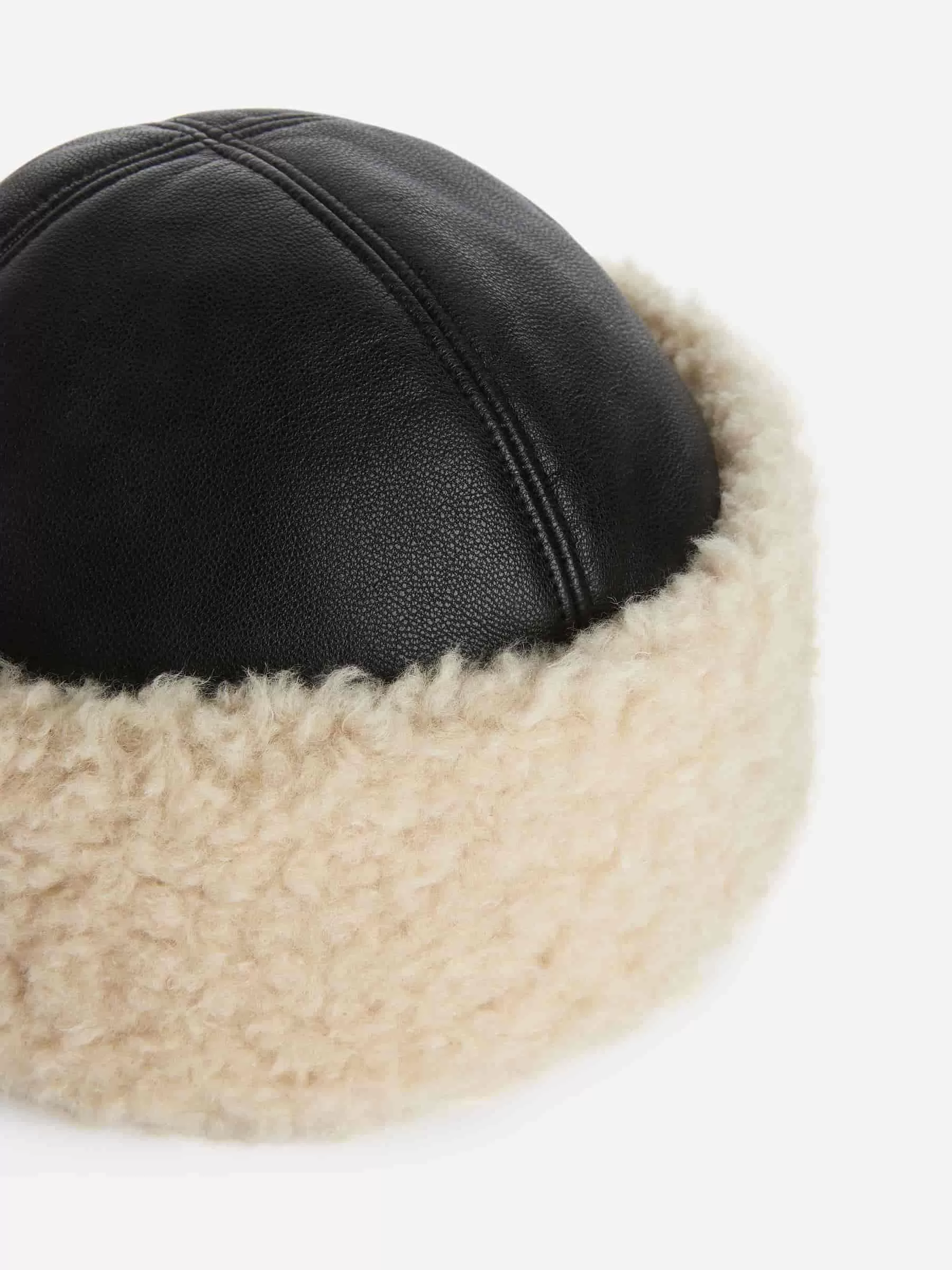ARKE Damen Wärmender Lederhut Schwarz/Beige