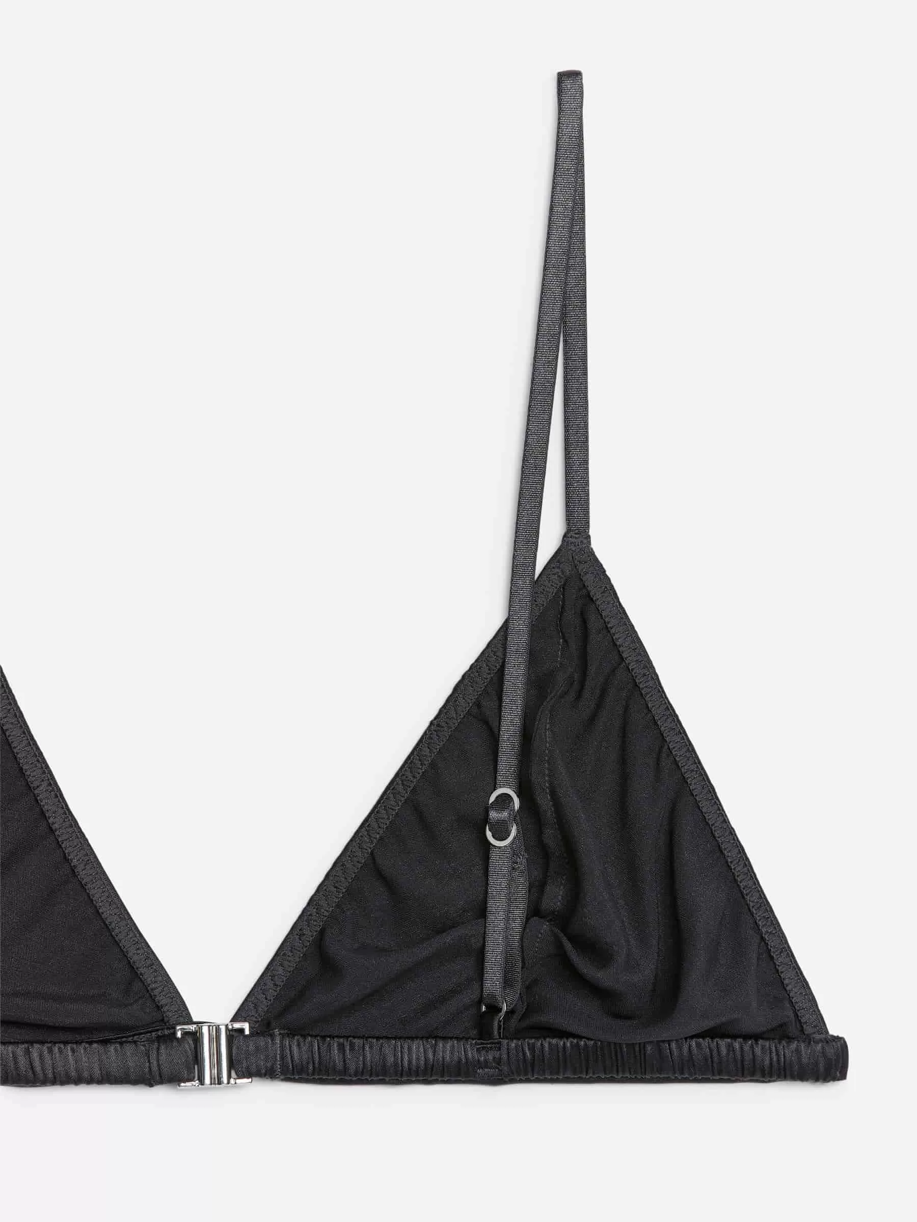 Weicher BH aus üppigem Maulbeerseidensatin mit einem Hauch Elasthan für Flexibilität. Mit dreieckigen Körbchen, gerafftem Rückenträger mit Schnalle und elastischen Schulterträgern.