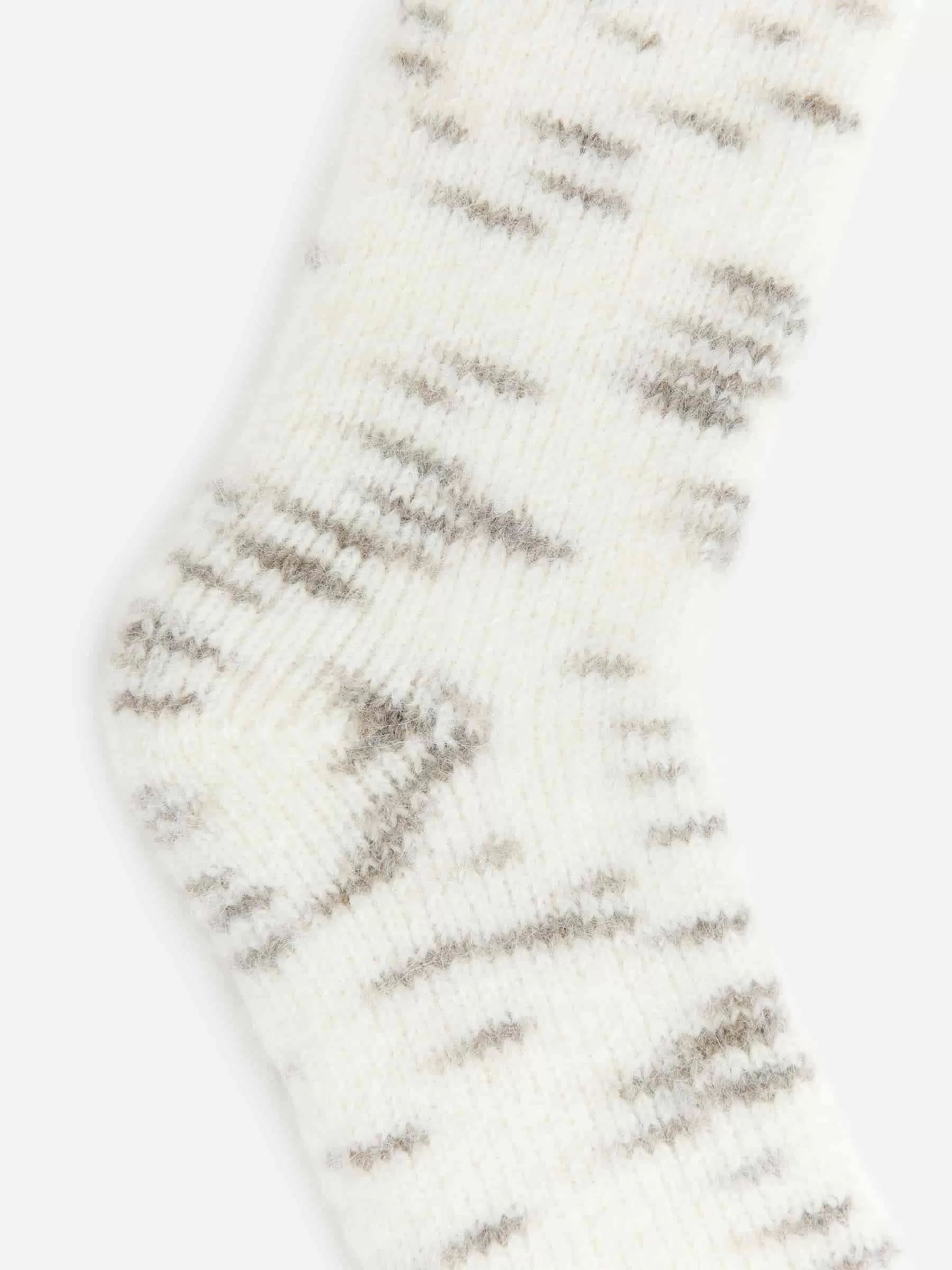 Grob gestrickte Socken aus einer dehnbaren Mischung aus Wolle und Alpaka. Diese Socken enthalten 50 % RWS-Wolle, zertifiziert durch die Kontrollunion 811082. Produkte, die nach dem Responsible Wool Standard (RWS) zertifiziert sind, enthalten Wollfasern von Farmen, die unabhängig nach Tierschutz- und Landbewirtschaftungsanforderungen zertifiziert sind.