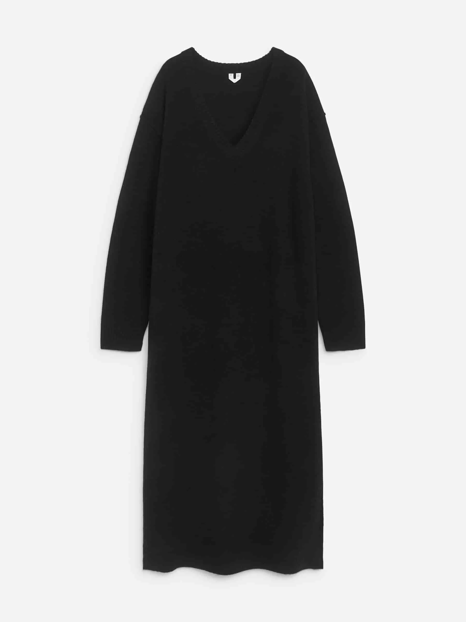 ARKE Damen Wollkleid mit V-Ausschnitt Schwarz