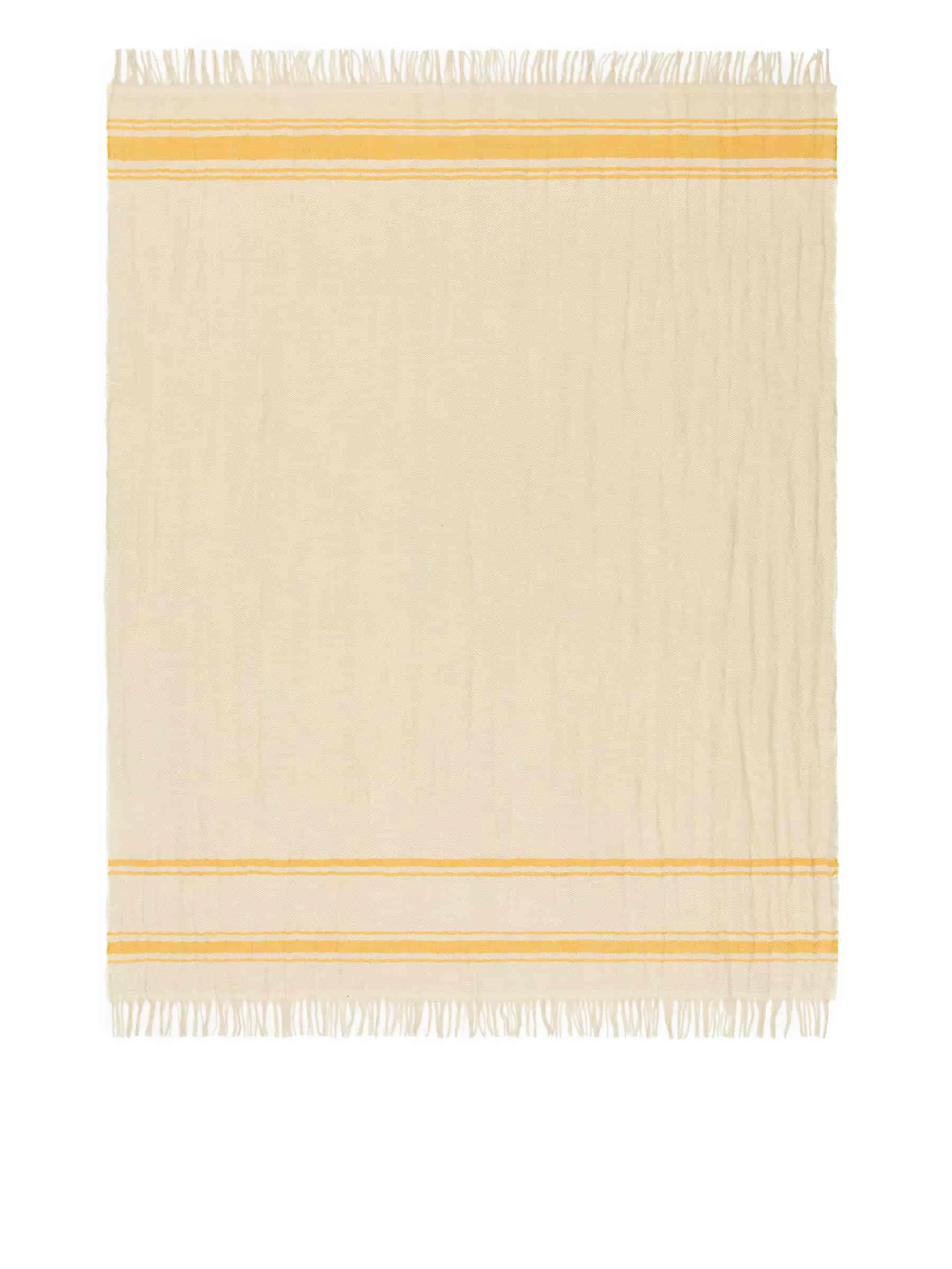 ARKE Haushaltswaren Decke aus Leinenwolle Gebrochenes Weiß/Gelb