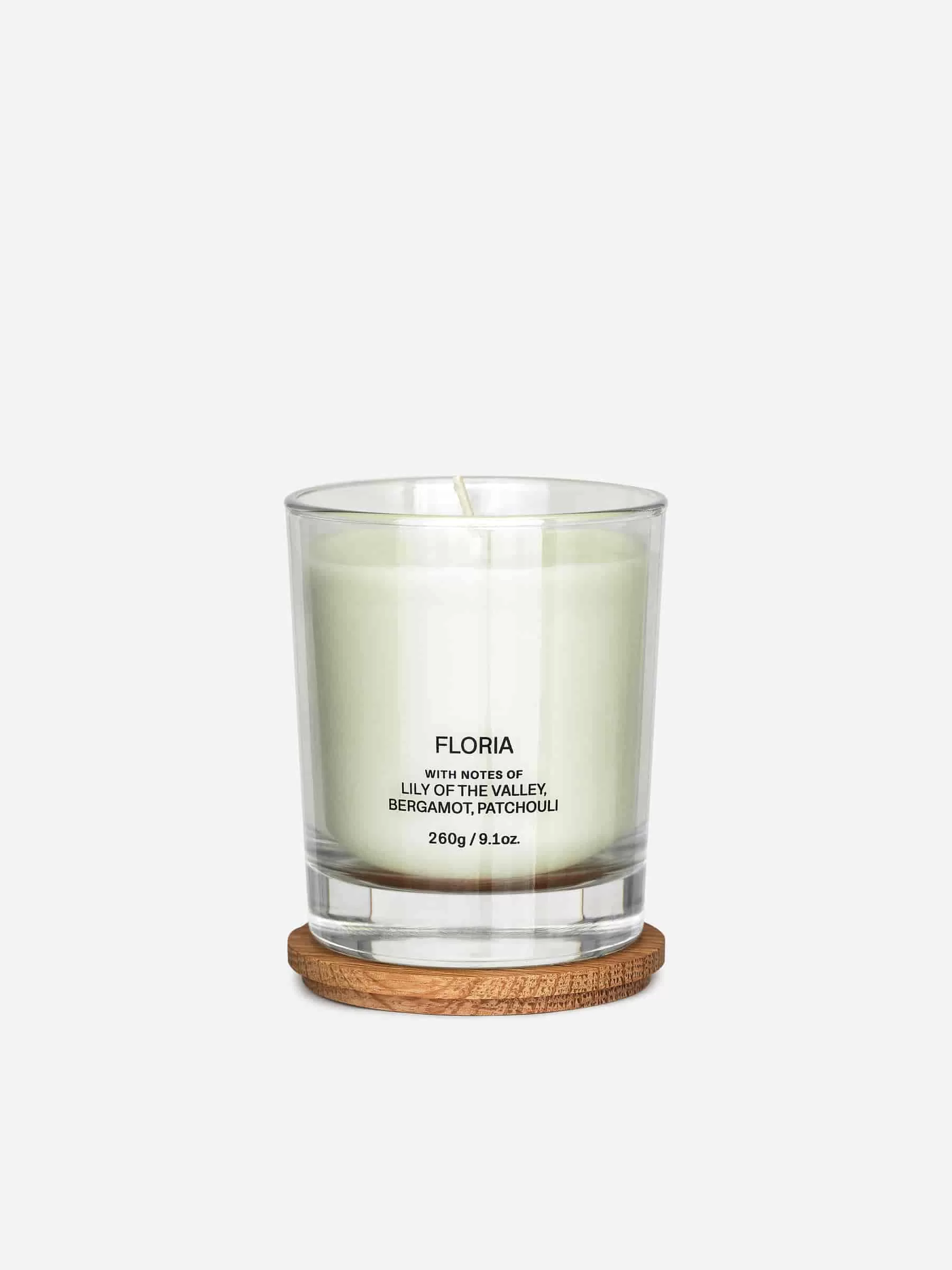 Duftkerze in einem Glasbehälter mit Holzdeckel. Die Kerze besteht aus einer Mischung aus Olivenwachsresten und Rapswachs. 260 g. Brenndauer 60 Stunden.