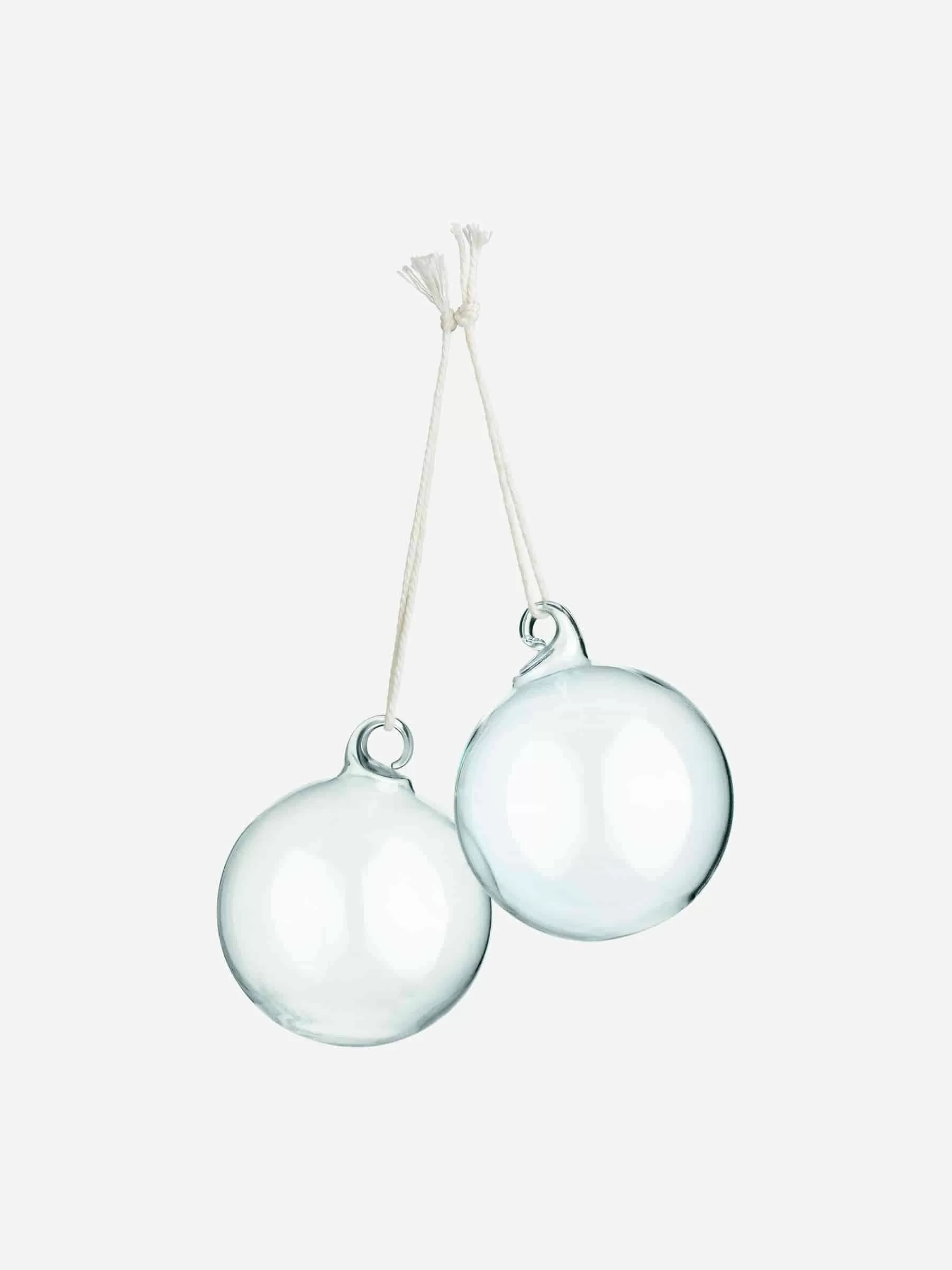 Zarte Glasornamente. Durchmesser 6 cm. Baumwollschnur 8,5 cm. Verkauft im 2er-Set.