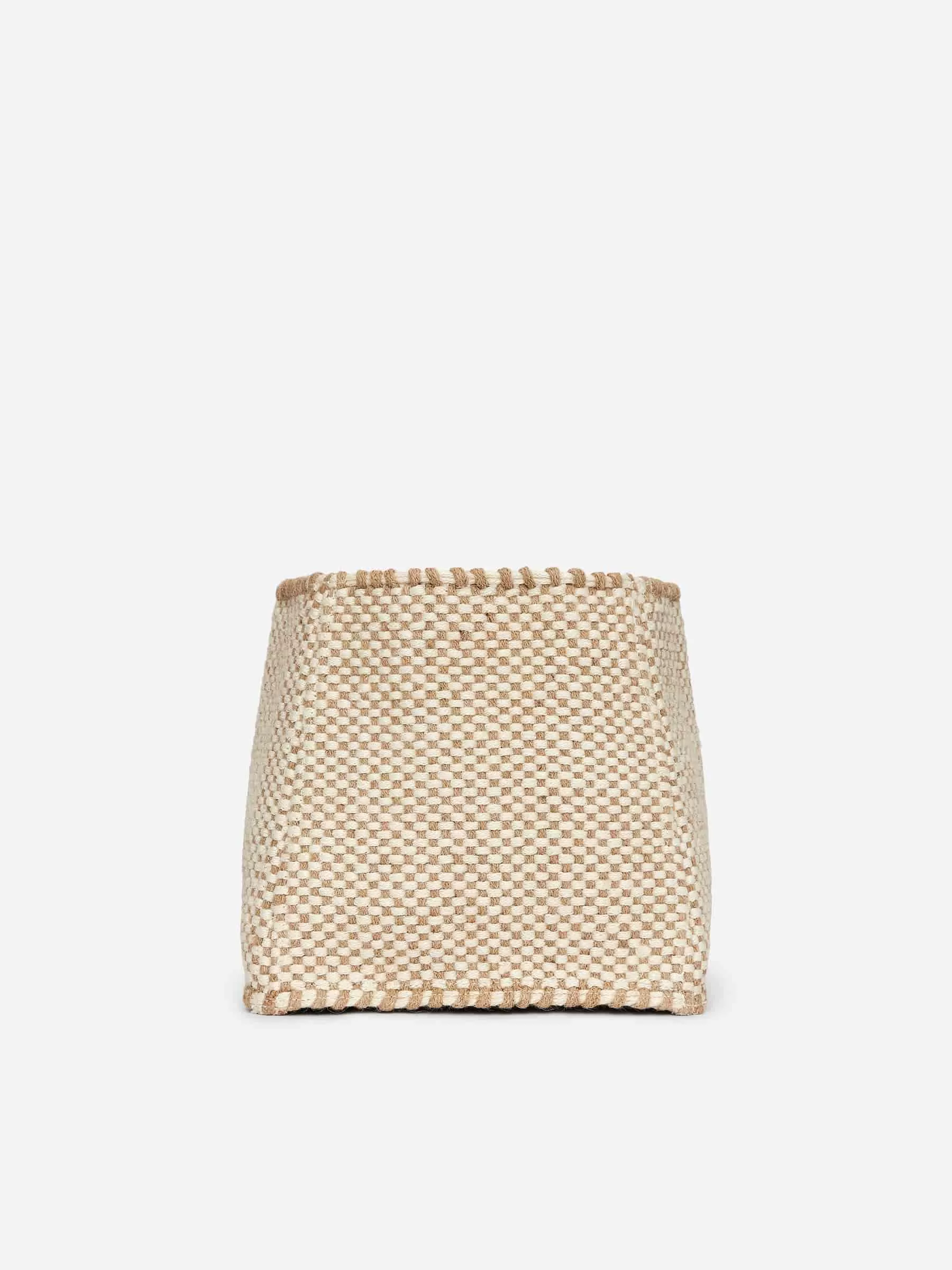 Quadratischer Aufbewahrungskorb aus Jute. 25 cm x 25 cm.