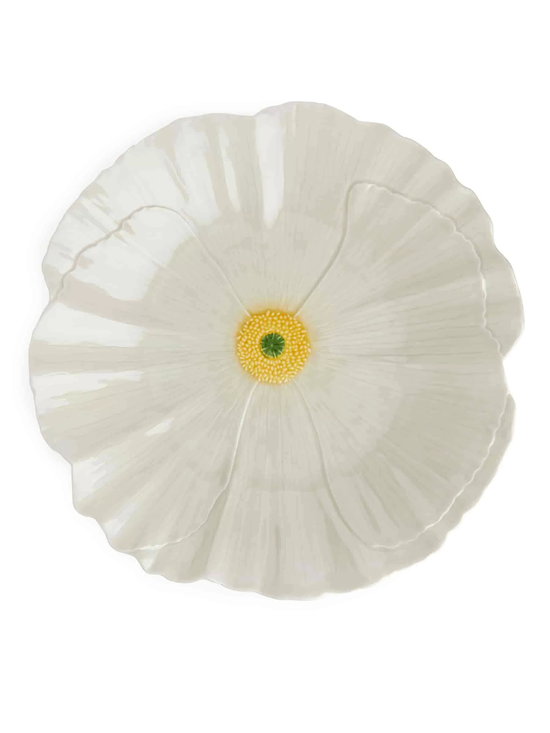 Lebendiger Teller aus der San Raphael-Kollektion von Bordallo Pinheiro. Hergestellt in der Region Caldas da Rainha in Portugal unter Verwendung von Elementen traditioneller Handwerkstechniken. Dieser große Teller mit Mohnblumenmotiv ist so gestaltet, dass er Ihrer Tischdekoration einen verspielten und dennoch raffinierten Ausdruck verleiht. Abmessungen 40 x 40 x 6 cm.