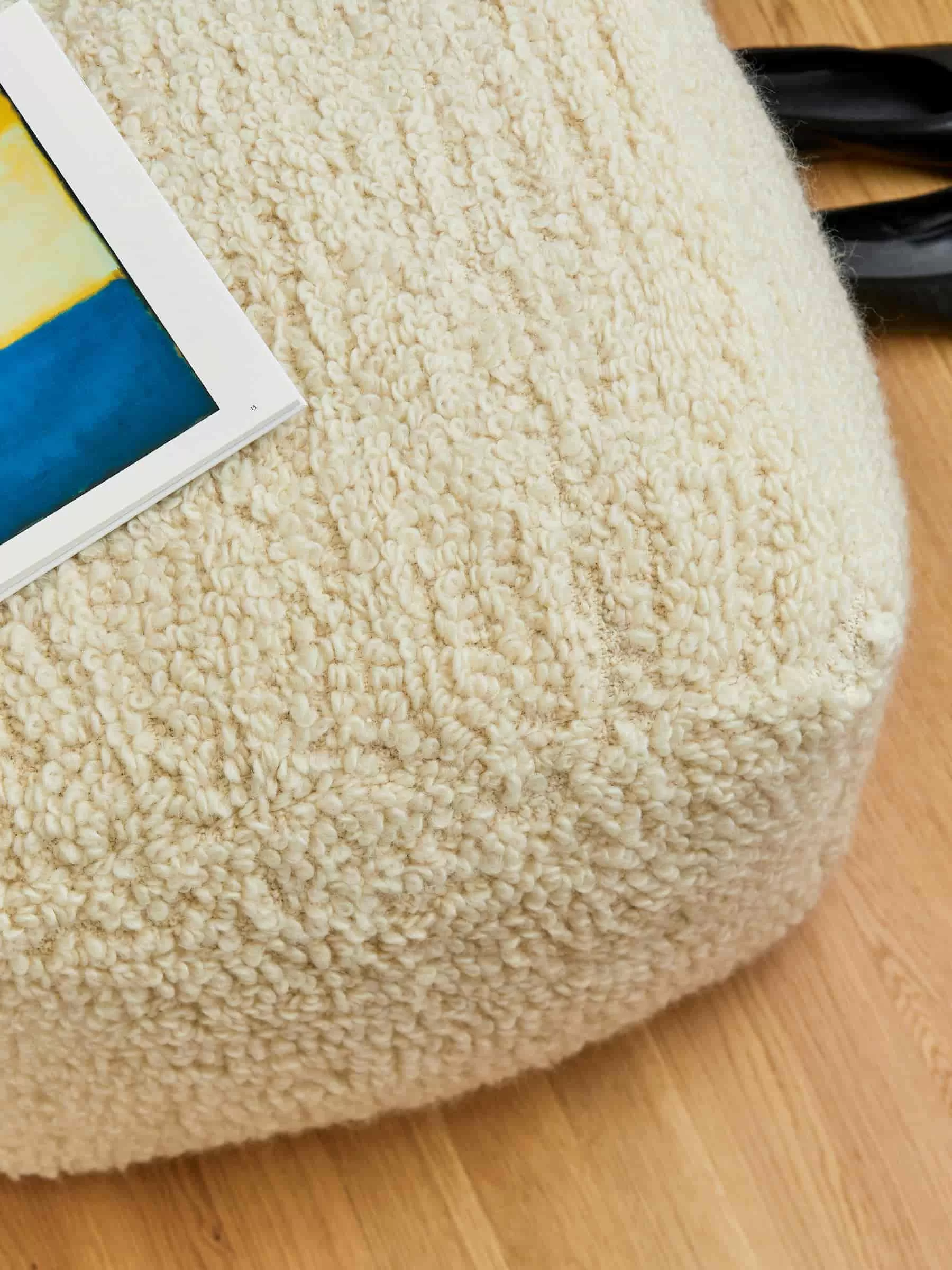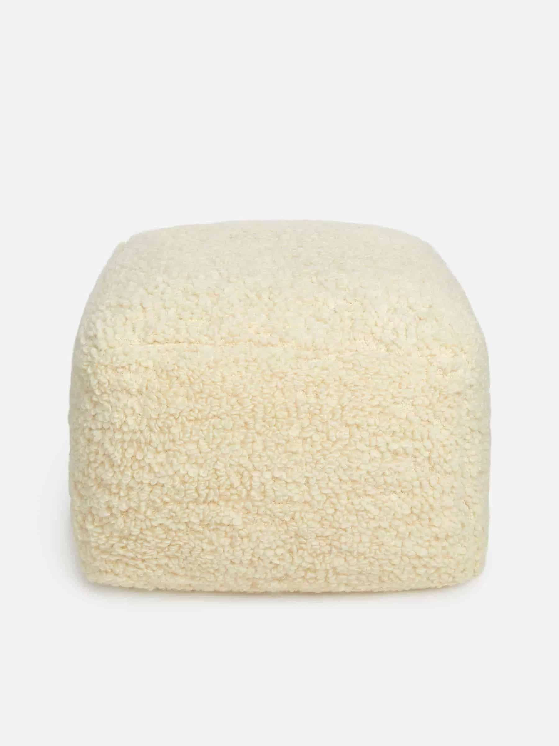 Hocker mit strukturierter Oberfläche aus einer Woll-Baumwoll-Mischung. Abmessungen 52 cm x 52 cm x 35 cm.