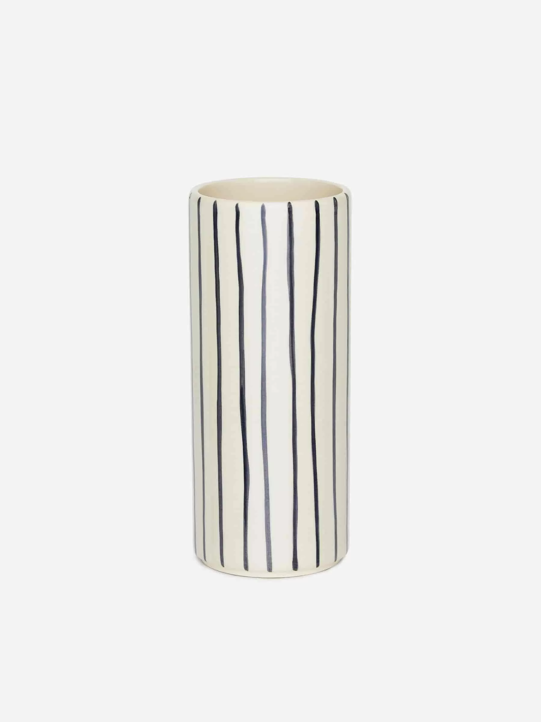 Glasierte Steingutvase in Zylinderform. Höhe 23 cm. Durchmesser 9,5 cm.