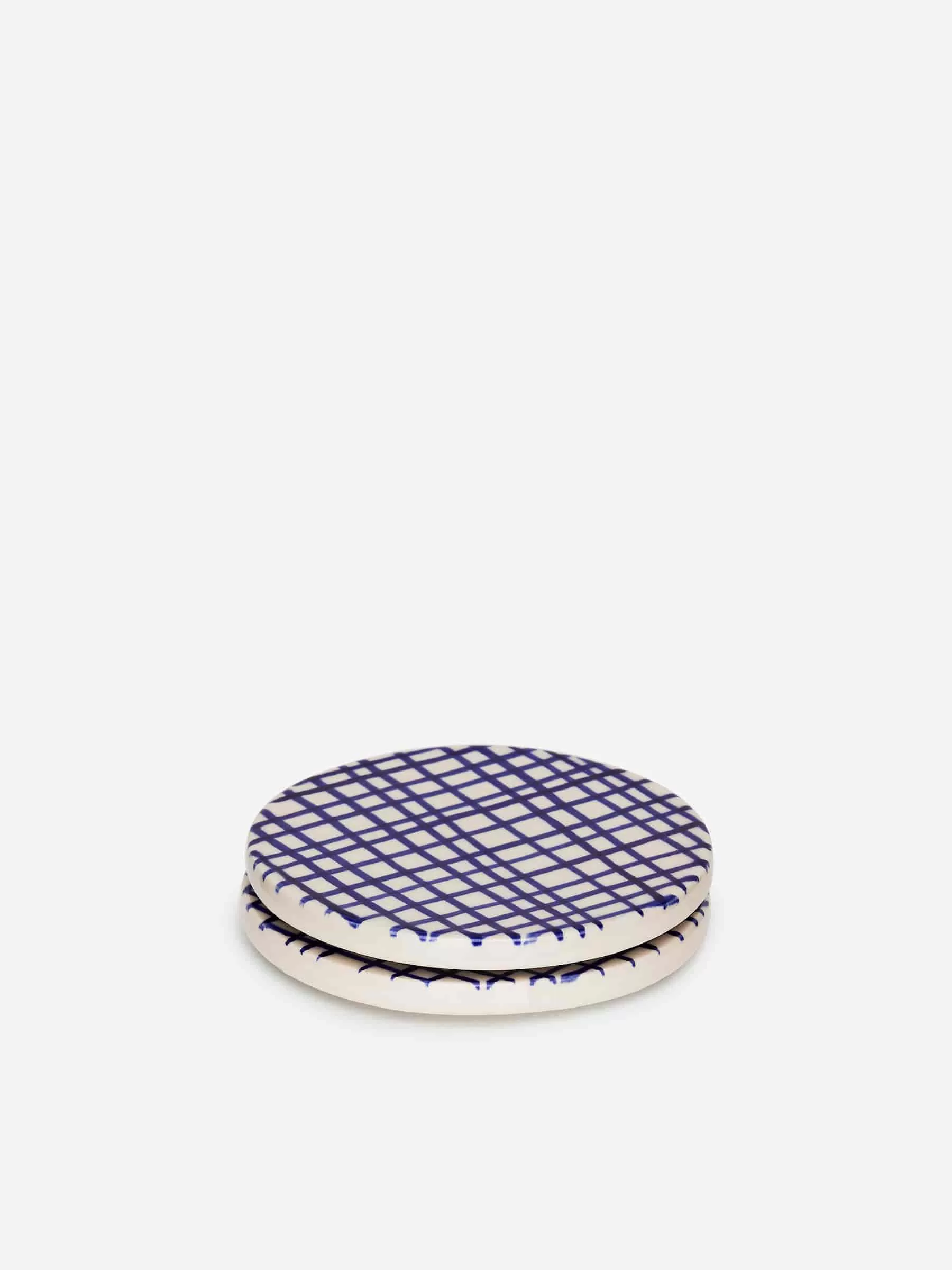 ARKE Haushaltswaren Untersetzer aus Steingut, 2er-Set Gebrochenes Weiß/Blau
