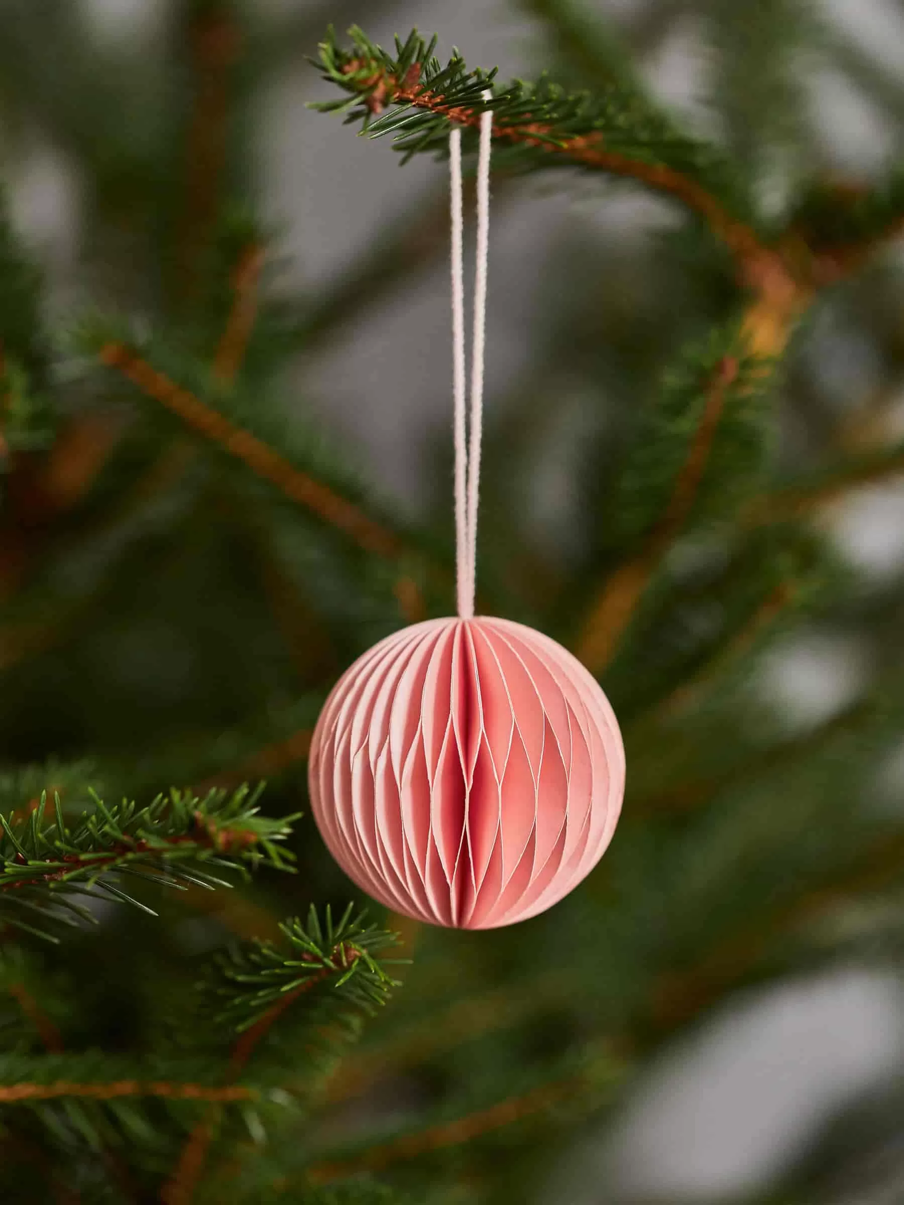 Wabenornamente, handgefertigt aus stabilem Papier. Eine Baumwollschnur zum einfachen Aufhängen. Zweier-Set. Durchmesser 5 cm.