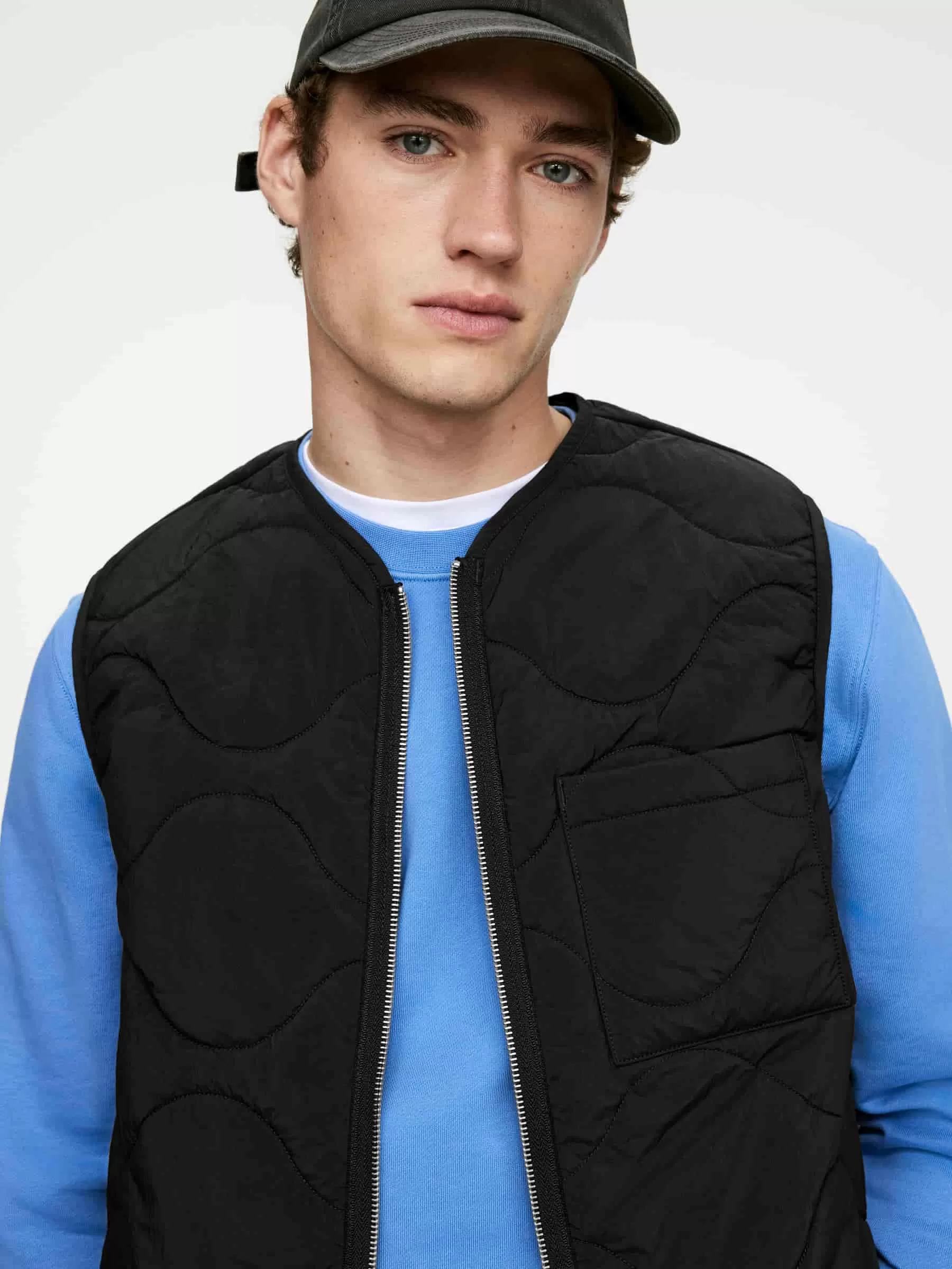Kompakte wattierte Weste mit ARKETs charakteristischer Zwiebelsteppung. Das Außenmaterial ist eine Ripstop-Konstruktion und die Polsterung bietet leichte Isolierung. Die Weste verfügt über einen Frontreißverschluss, eine aufgesetzte Tasche auf der linken Seite und eine aufgesetzte Innentasche. Winddichtes Material und wasserabweisende Ausrüstung. Dieses Kleidungsstück ist Teil der 2-in-1-Serie, einem modularen Oberbekleidungssystem, das Schalen und isolierende Einlagen umfasst, die speziell dafür konzipiert sind, zusammengesteckt zu werden und einen vollständig gepolsterten Mantel zu bilden.