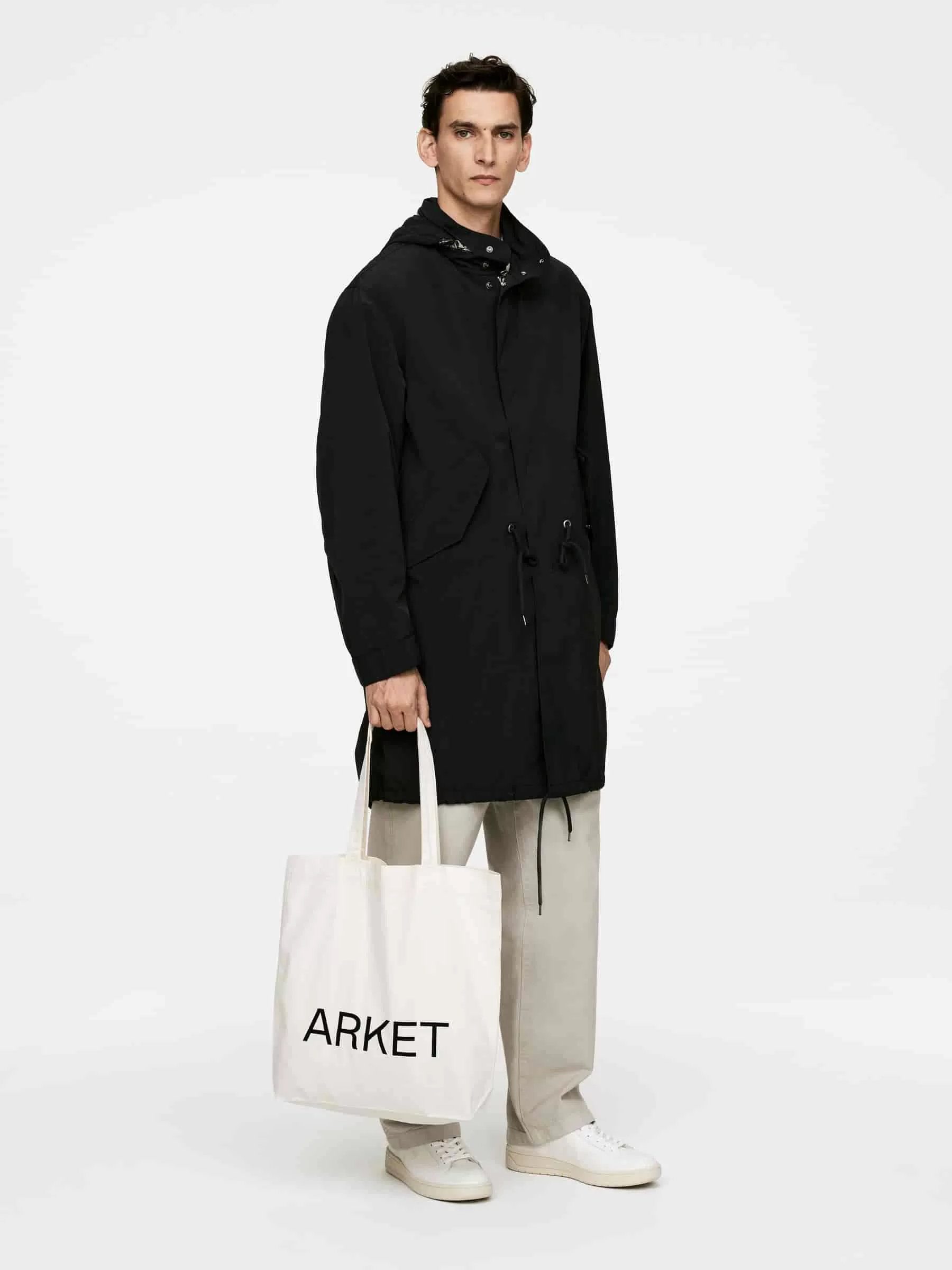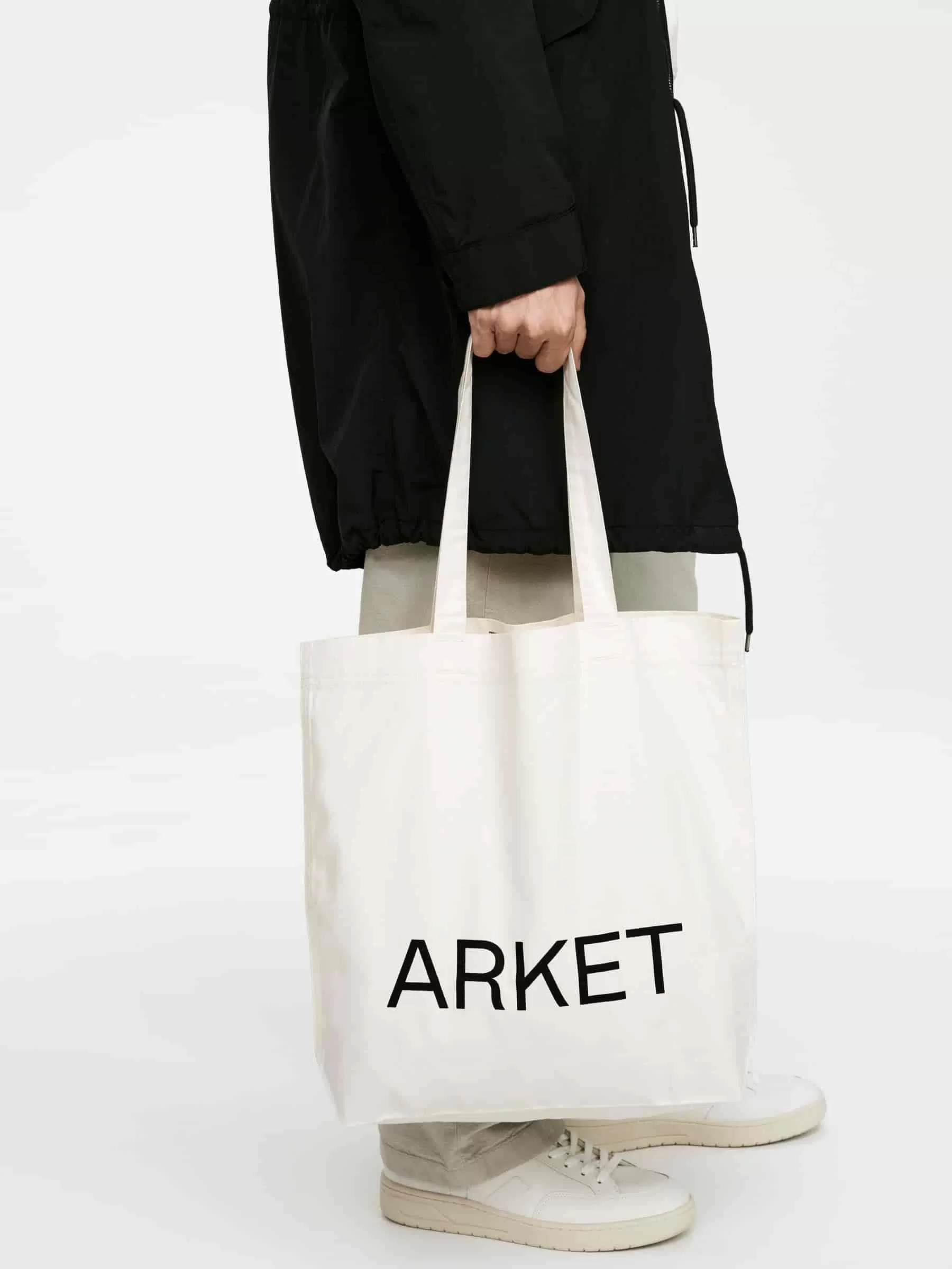 Unsere beliebte Tragetasche besteht aus strapazierfähigem Canvas-Gewebe und ist vorne mit einem aufgedruckten ARKET-Logo versehen. Maße 40 x 33 x 10 cm.