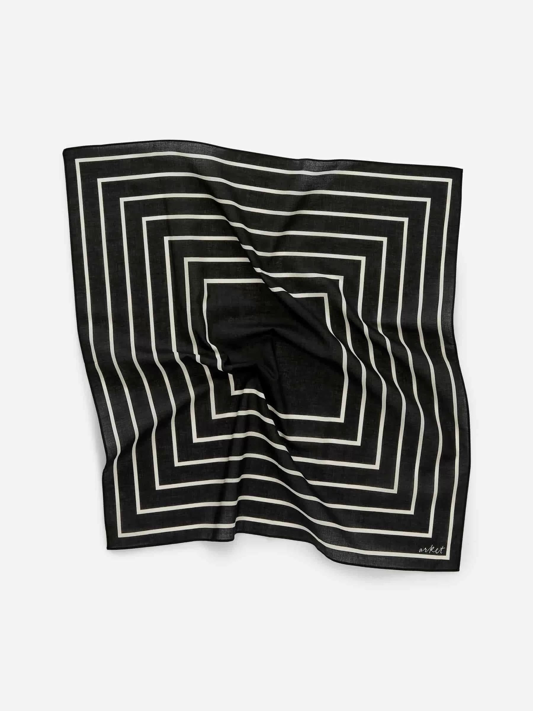 Gewebtes Baumwoll-Bandana mit grafischem Aufdruck. Maße 50 cm x 50 cm.