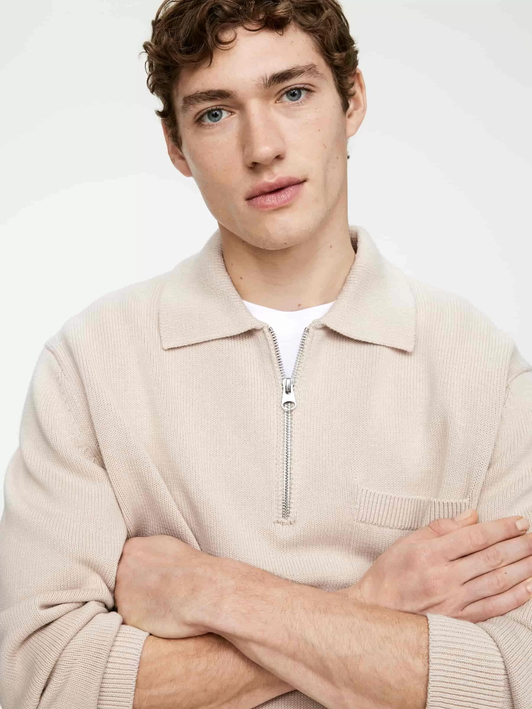 ARKE Herren Baumwollpullover mit halbem Reißverschluss Beige