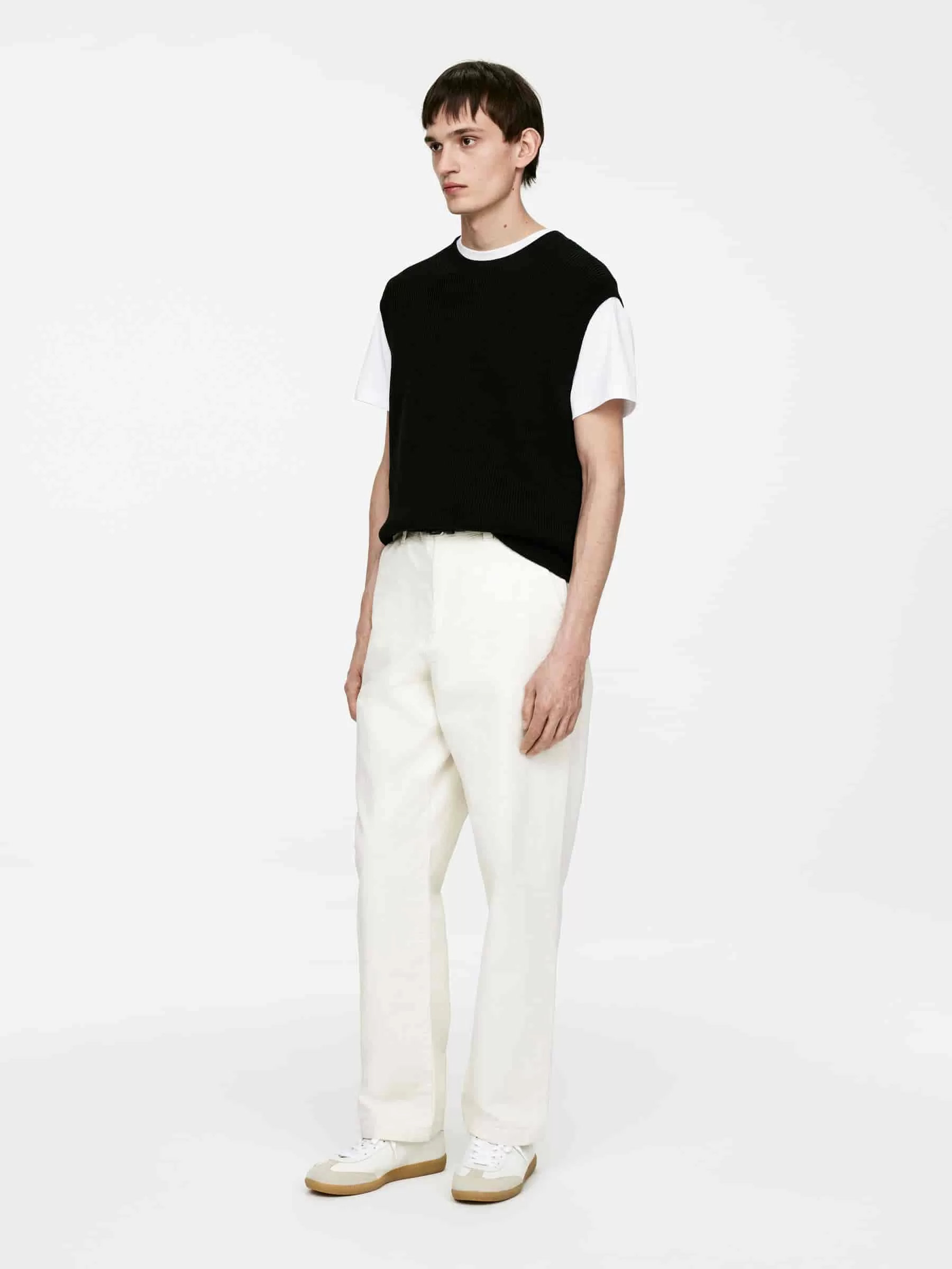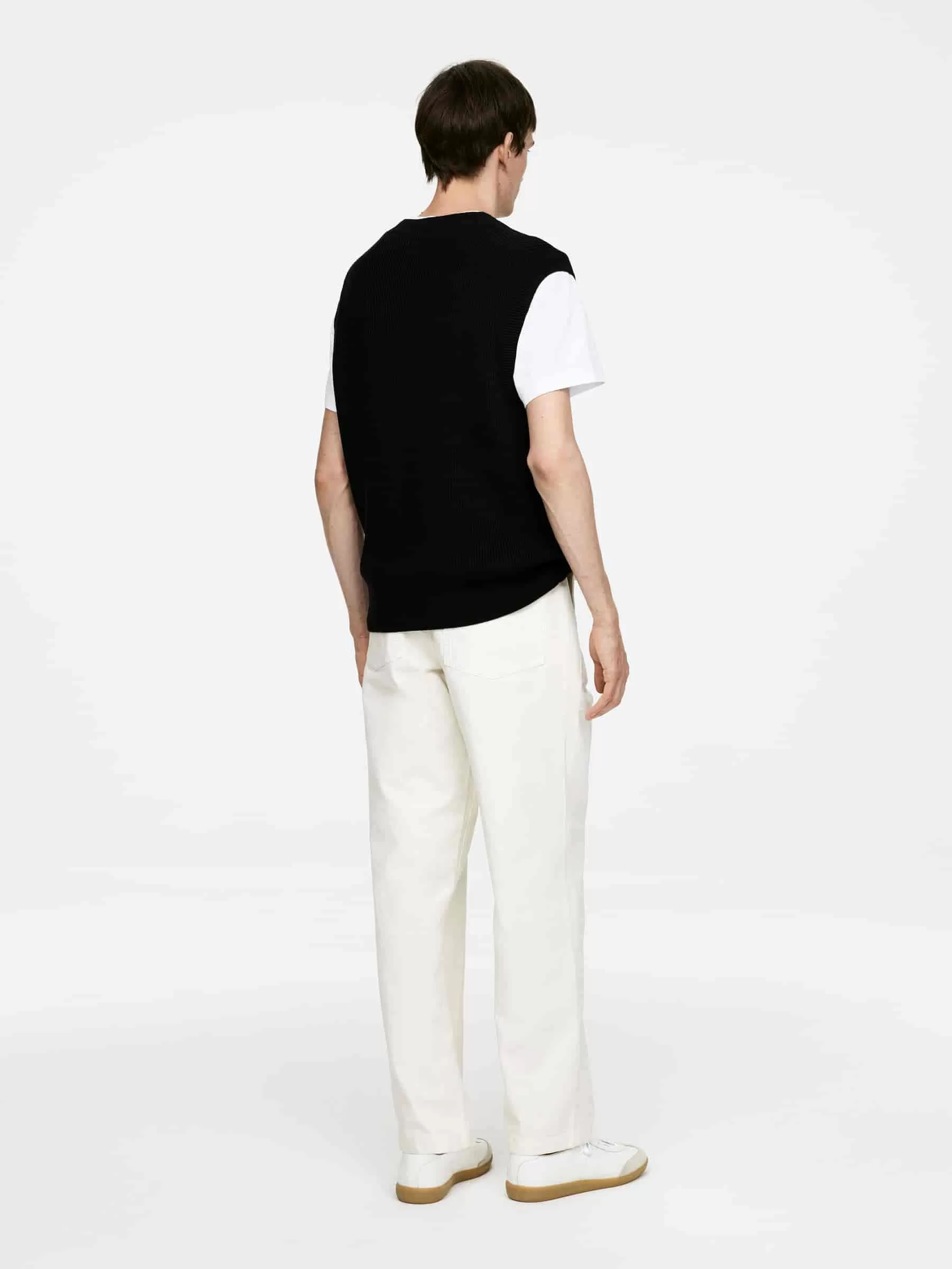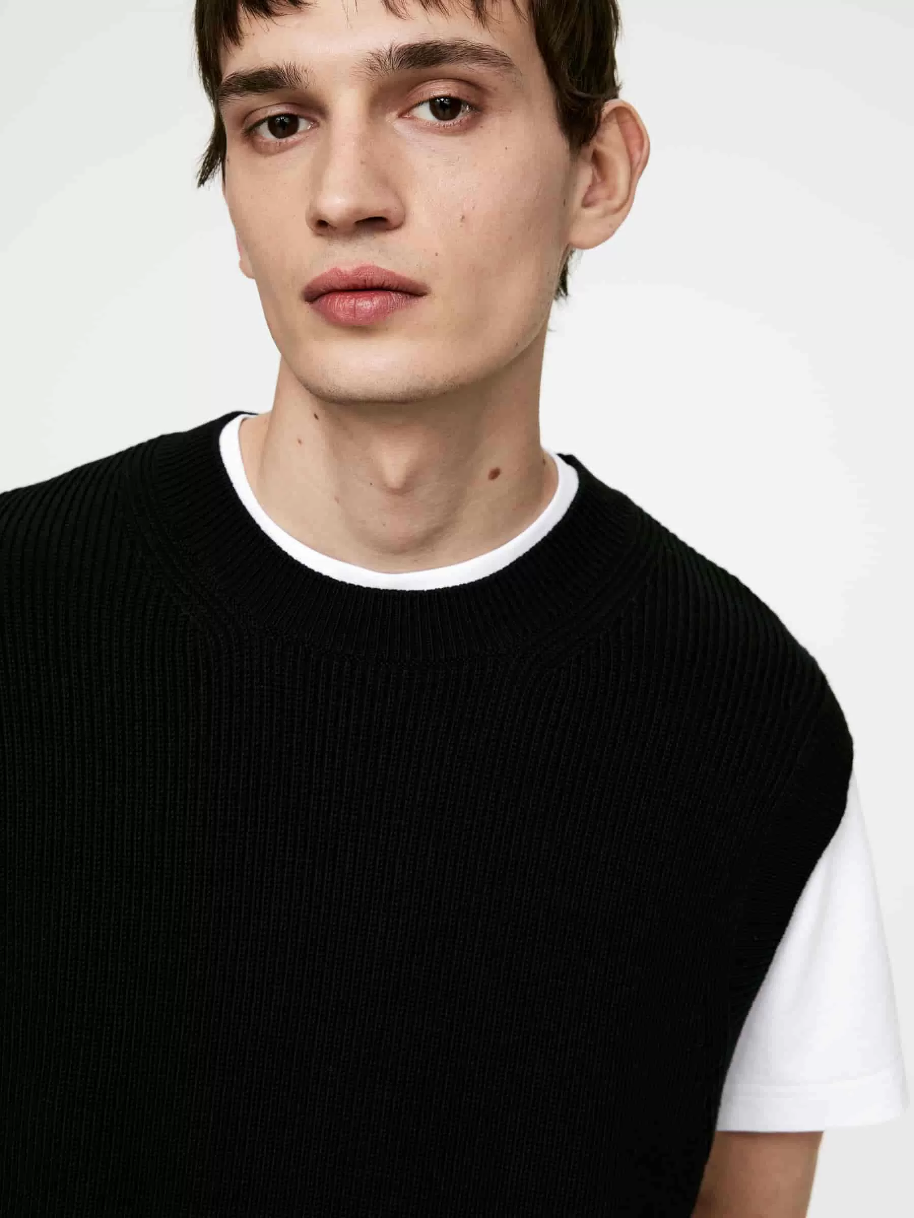 Baumwollweste, gestrickt im Halbstrickmuster. Mit gerippten Abschlüssen und lockerer Passform.