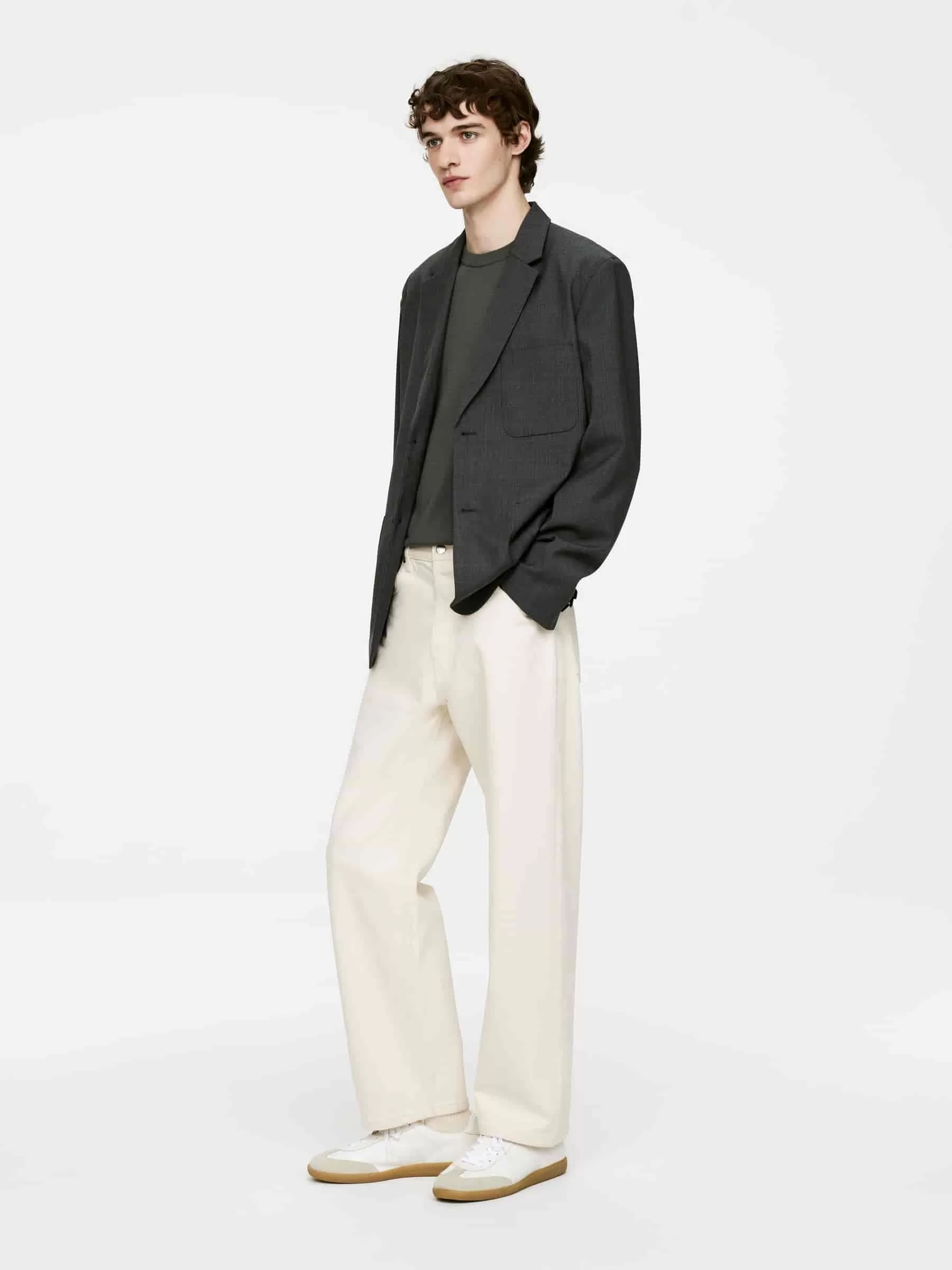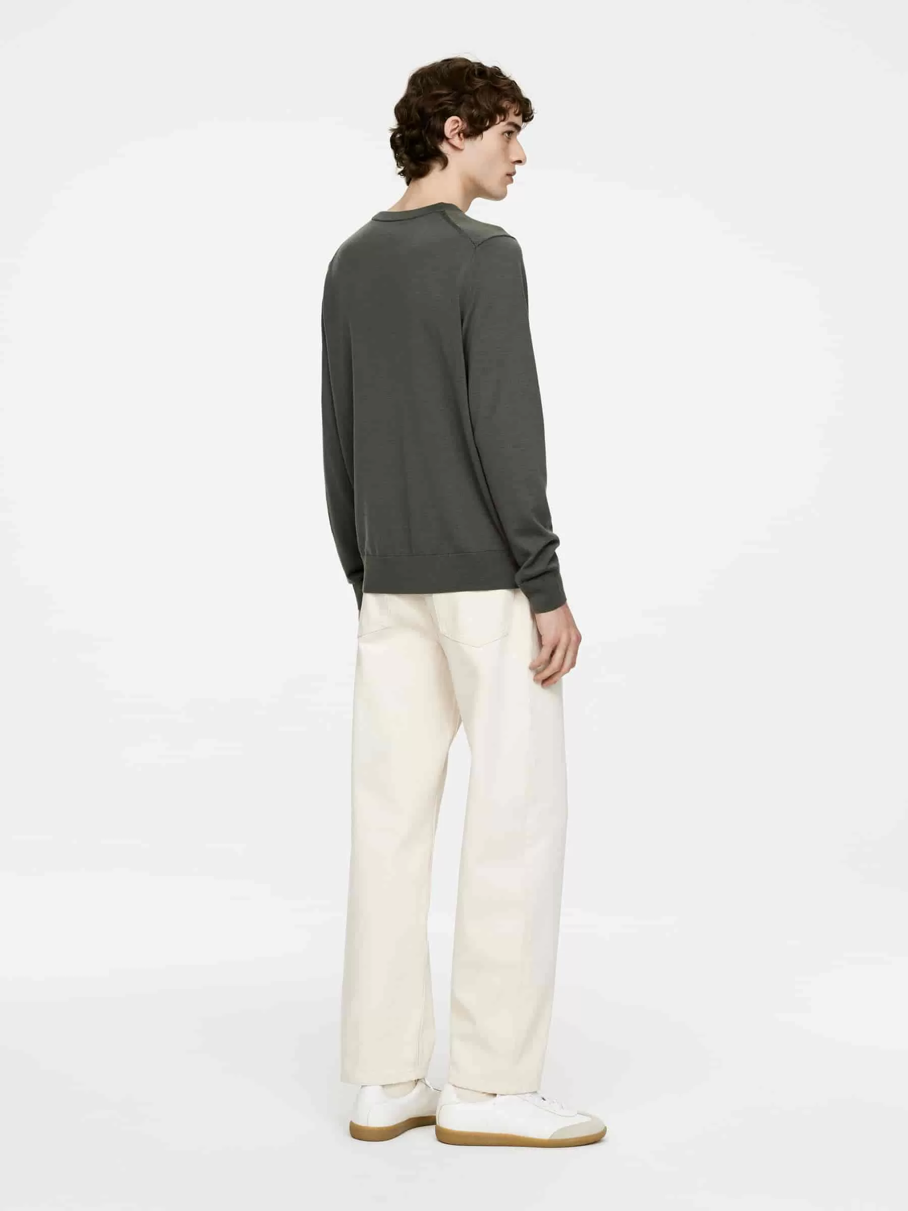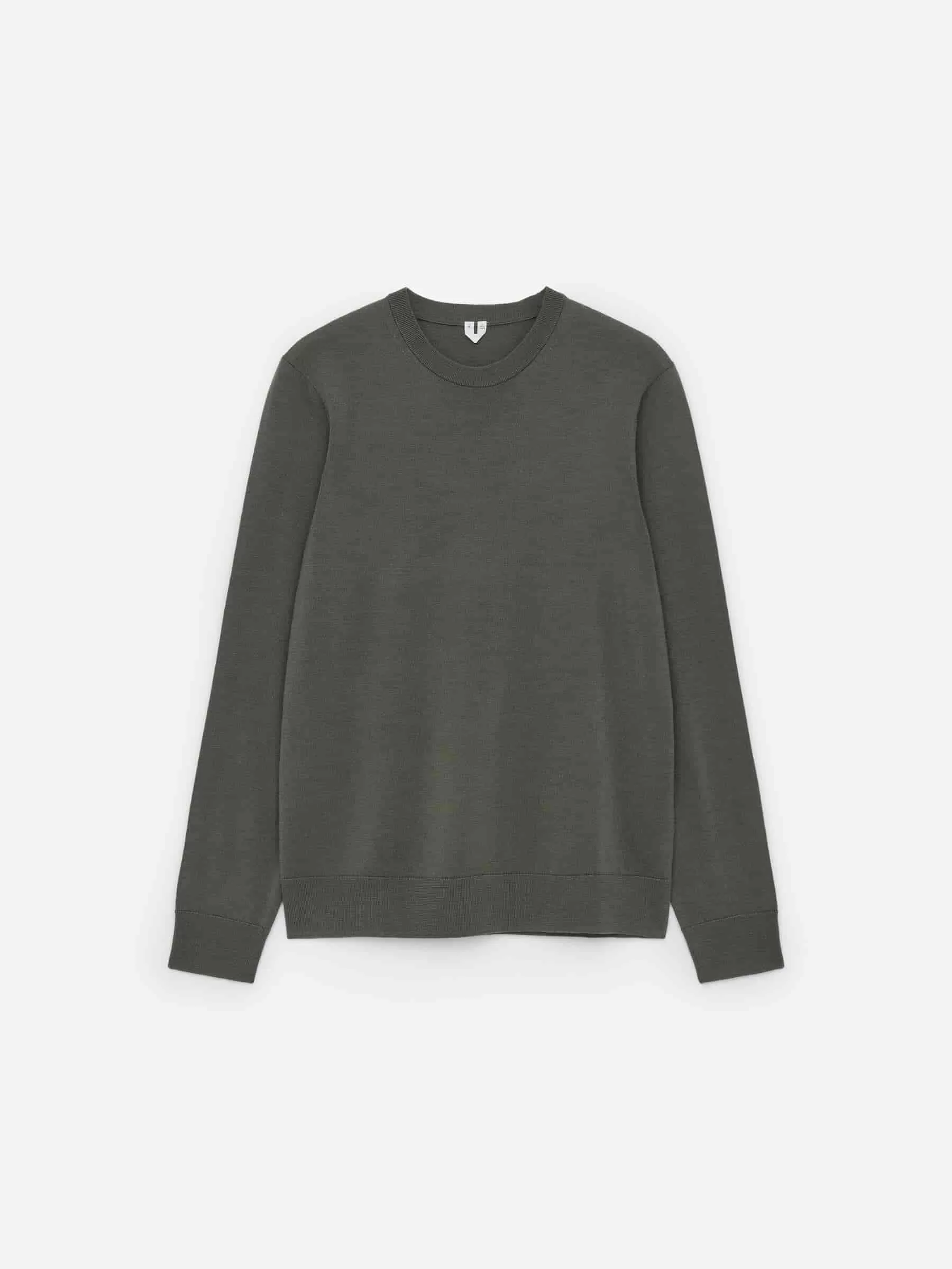 Feinstrickpullover aus weicher Merinowolle. Ein klassischer Rundhalsausschnitt mit gerippten Details. Normale Passform.