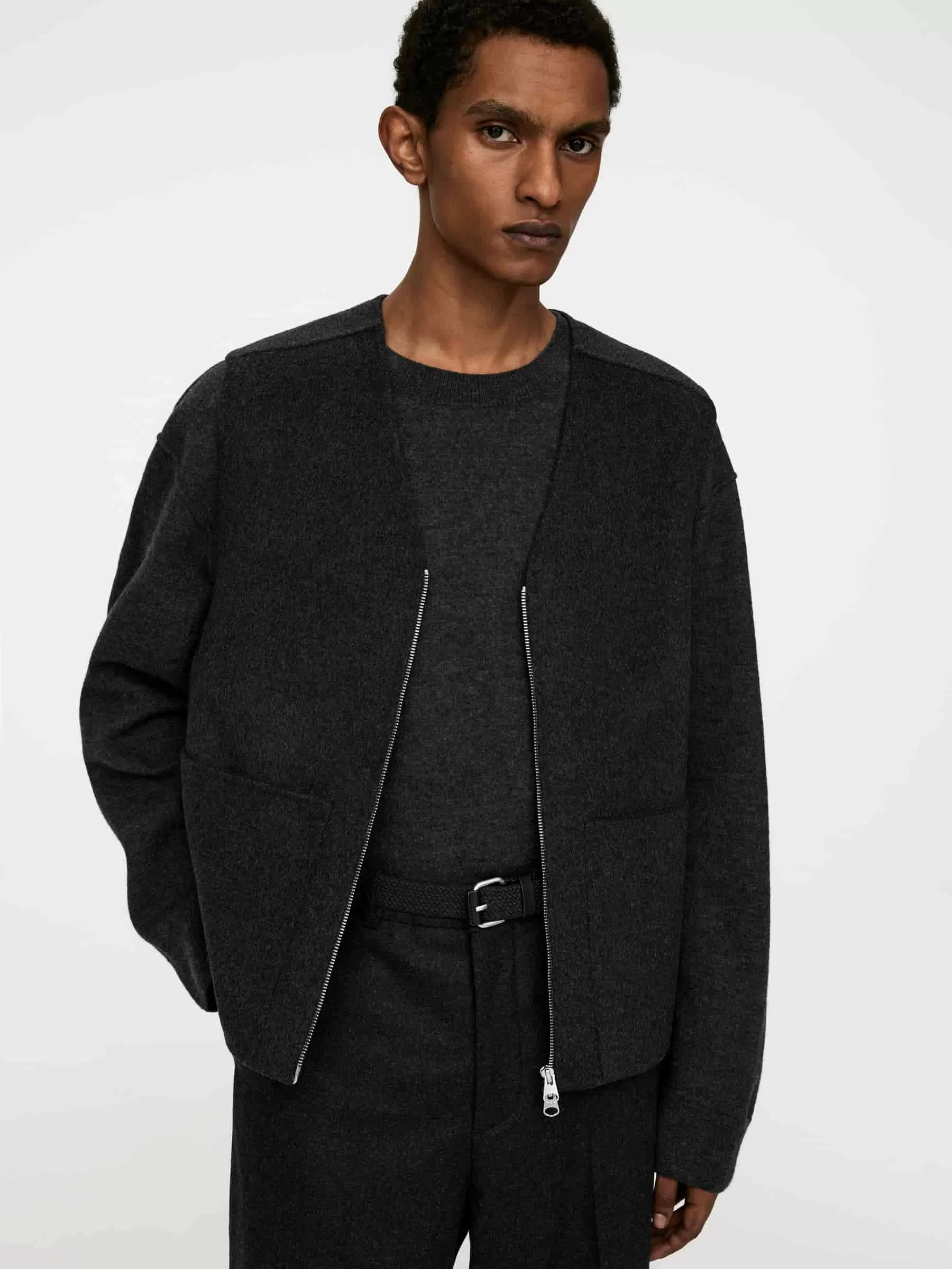 ARKE Herren Geflochtener Gürtel mit Lederbesatz Schwarz