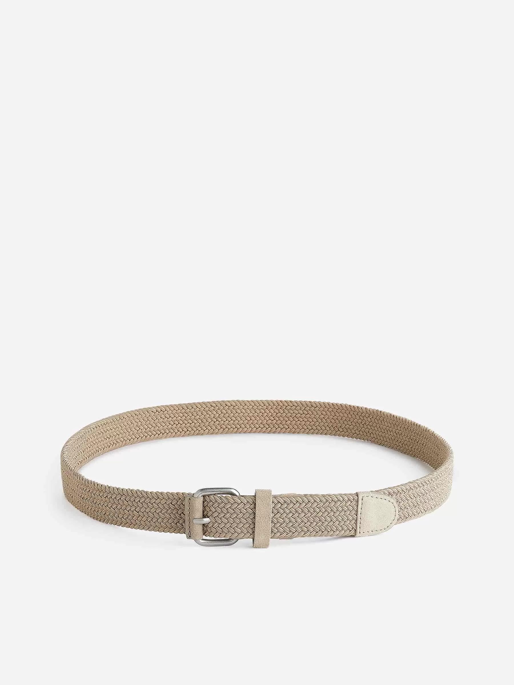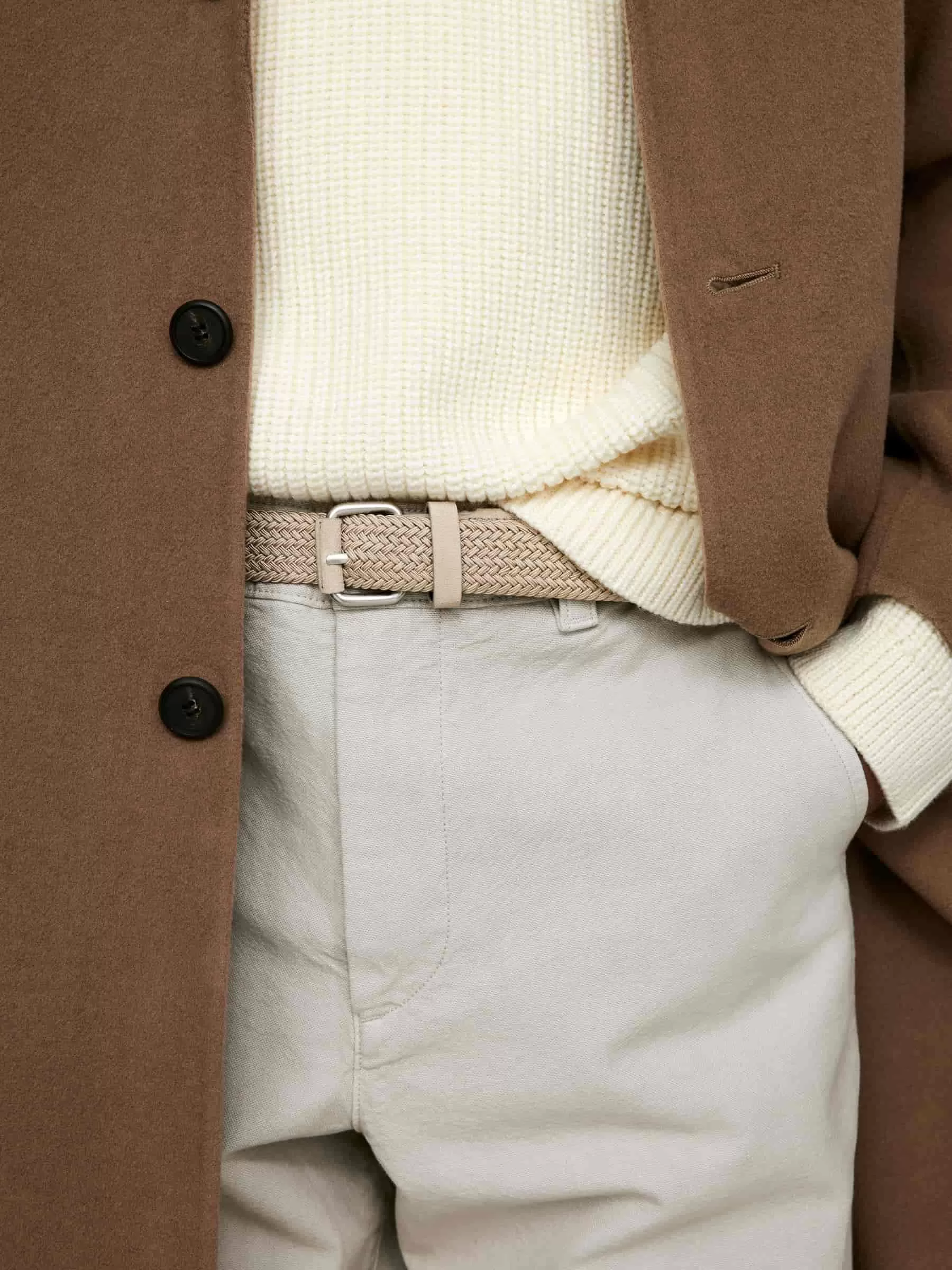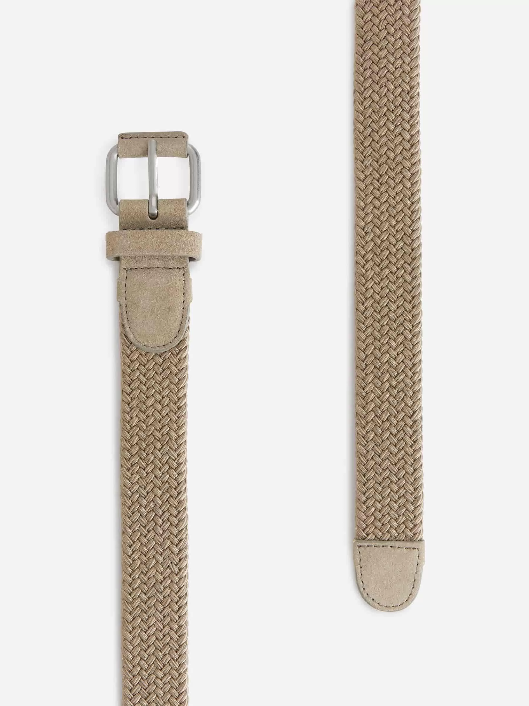 ARKE Herren Geflochtener Gürtel mit Lederbesatz Beige