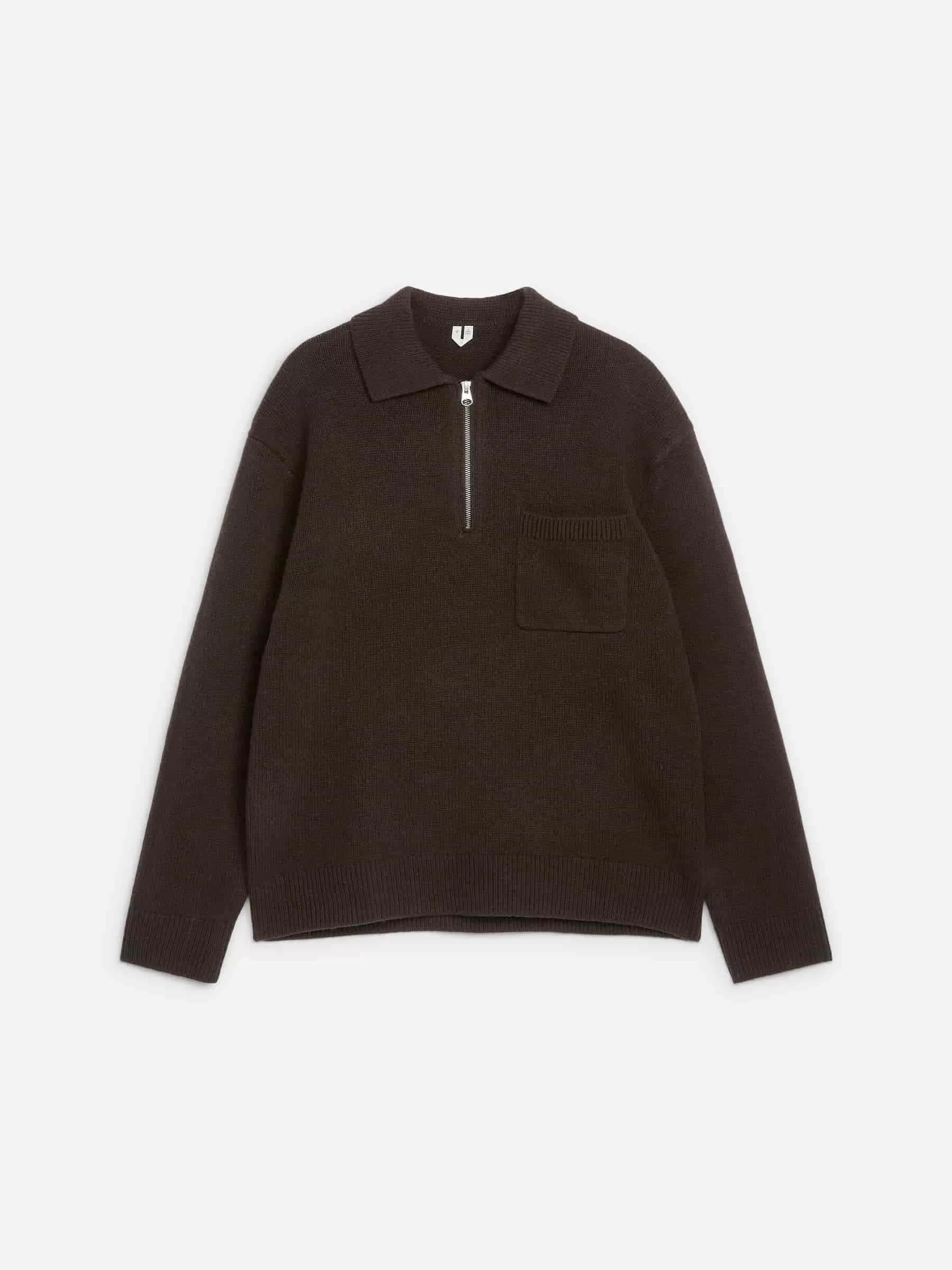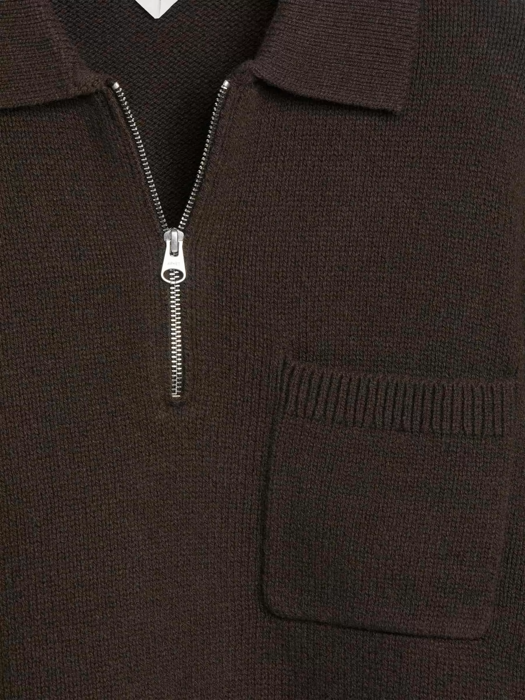 ARKE Herren Gestricktes Woll-Poloshirt mit Reißverschluss Braun
