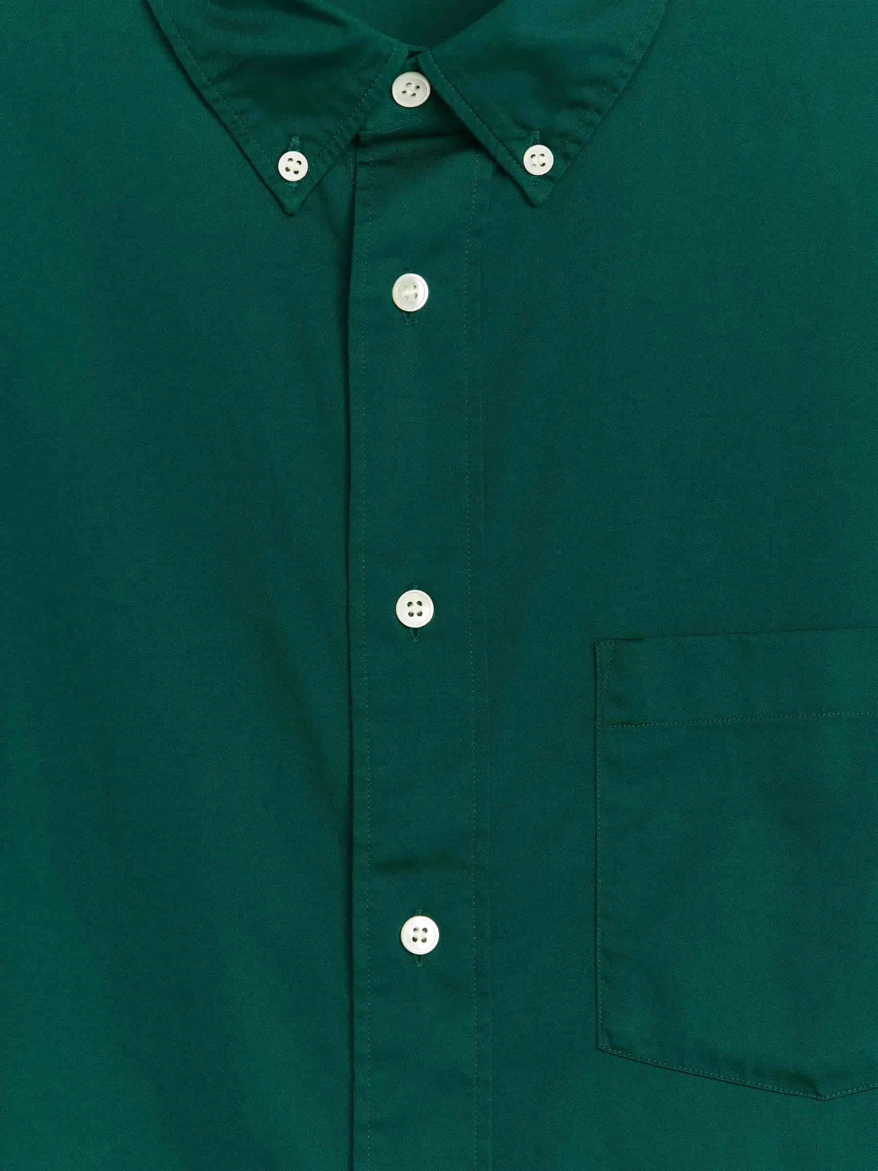 Hemd aus weichem Baumwolltwill genäht. Dieses entspannte Modell mit Knopfleiste verfügt über eine einzelne Brusttasche.