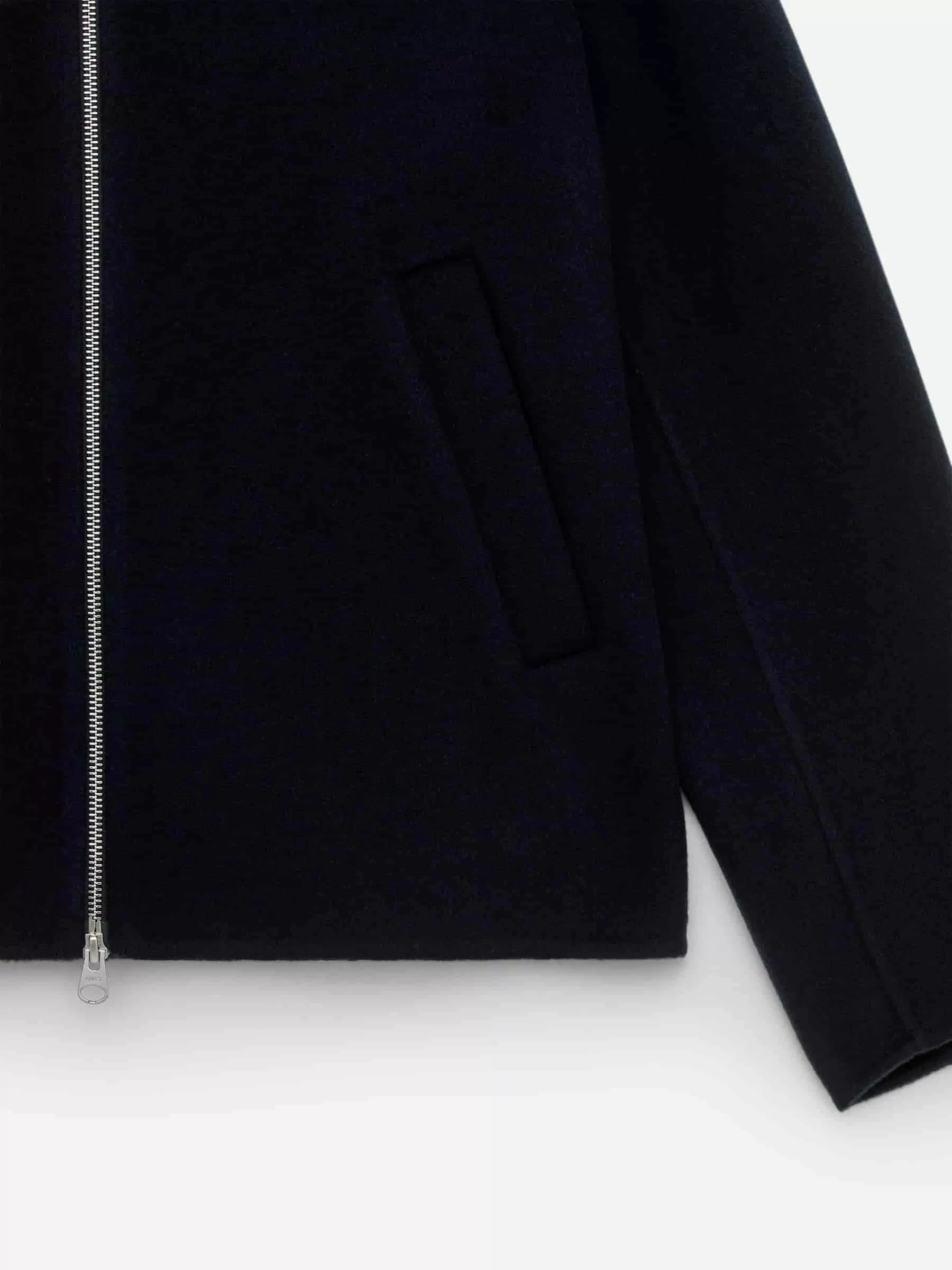 Jacke aus doppelseitigem Wollmischgewebe. Ausgestattet mit einem Zwei-Wege-Reißverschluss aus Metall und Leistentaschen. Normale Passform. Der Stil besteht zu 78 % aus RWS-Wolle (TE-00047206). Produkte, die nach dem Responsible Wool Standard (RWS) zertifiziert sind, enthalten Wollfasern von Farmen, die unabhängig nach Tierschutz- und Landbewirtschaftungsanforderungen zertifiziert sind.