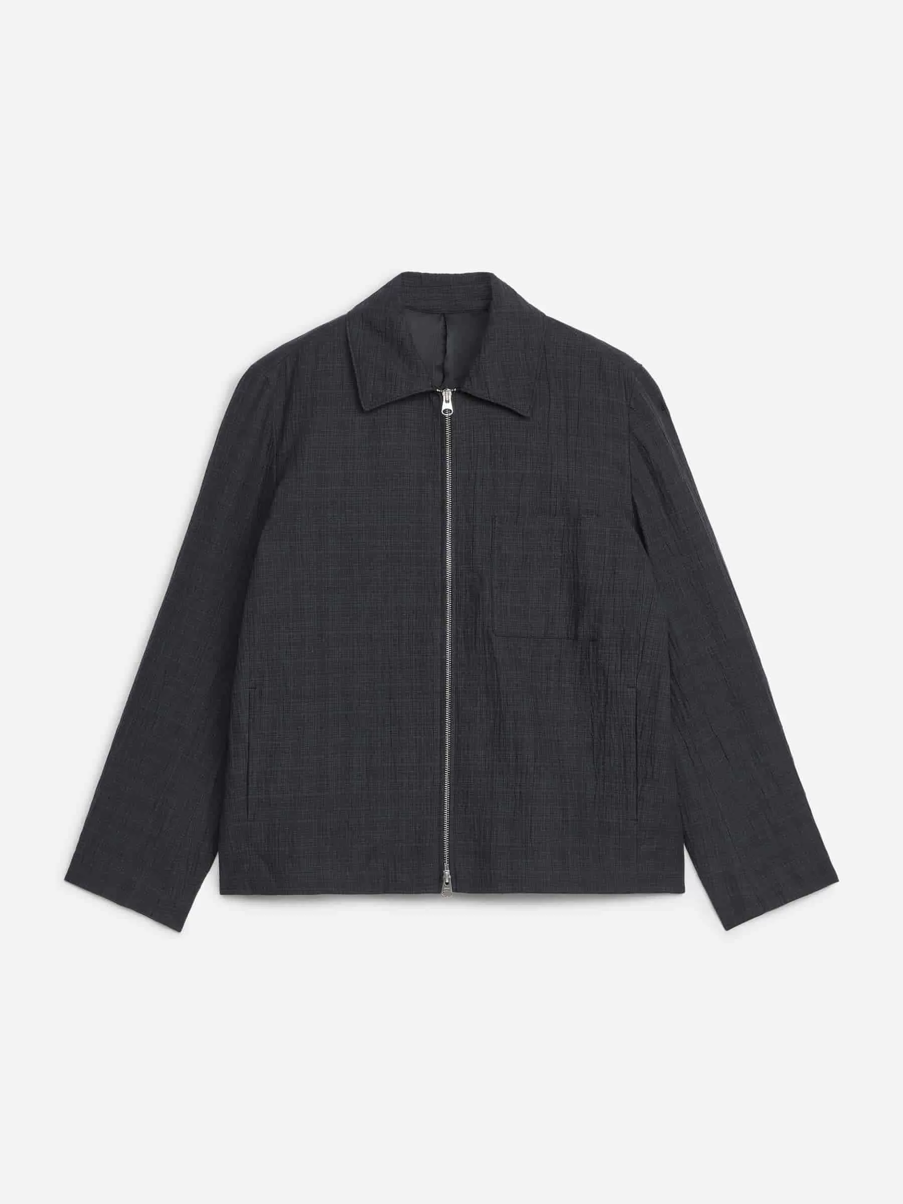 Jacke aus dehnbarem Seersucker-Stoff aus einer Leinenmischung. Für eine normale Passform geschnitten und mit einem Standardkragen, einem Zwei-Wege-Reißverschluss und einer Brusttasche versehen. Taschen an der Seitennaht. Gefüttert.