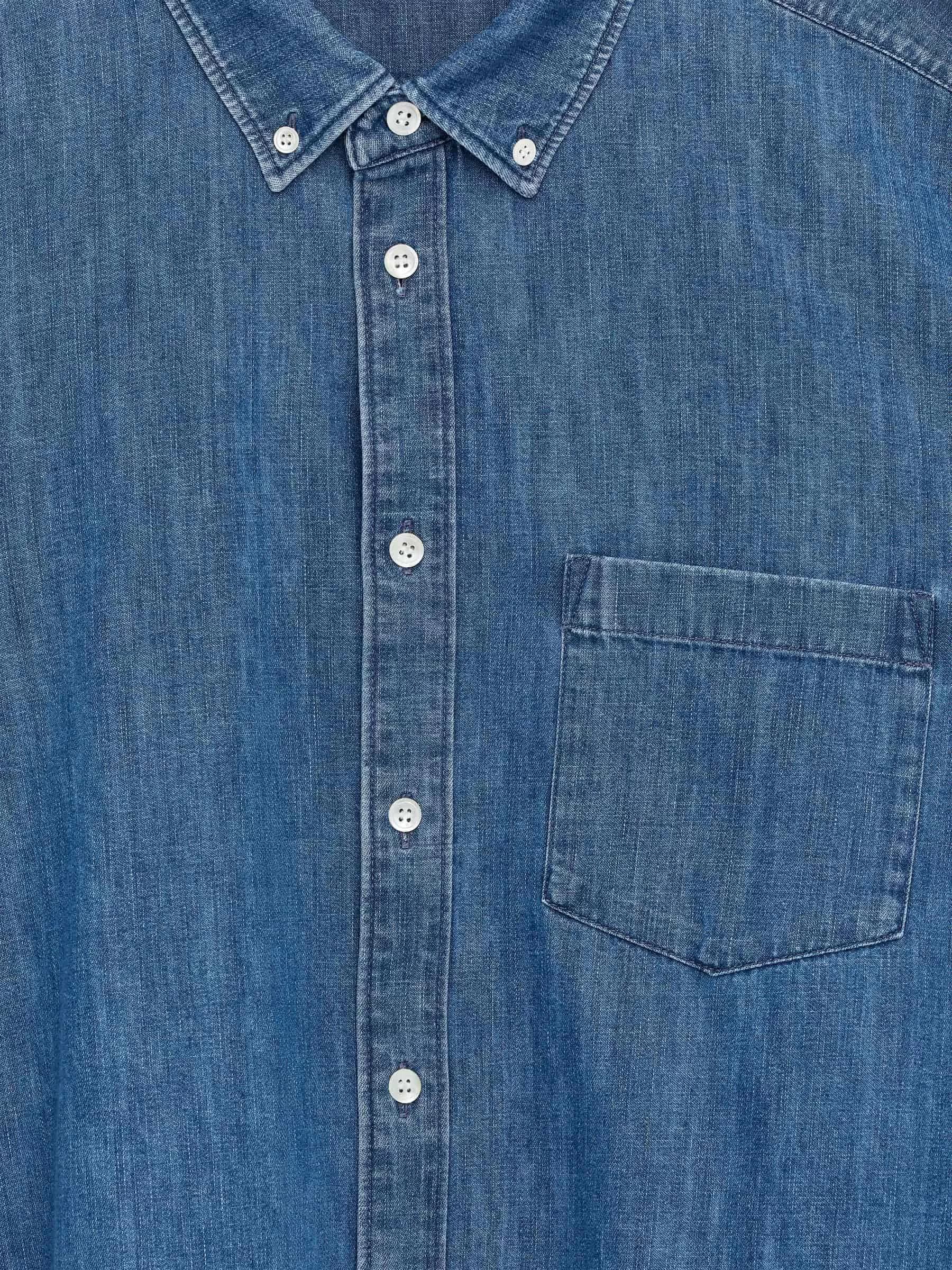 Jeanshemd mit Knöpfen und normaler Passform. Mit Brusttasche und geknöpften Manschetten.