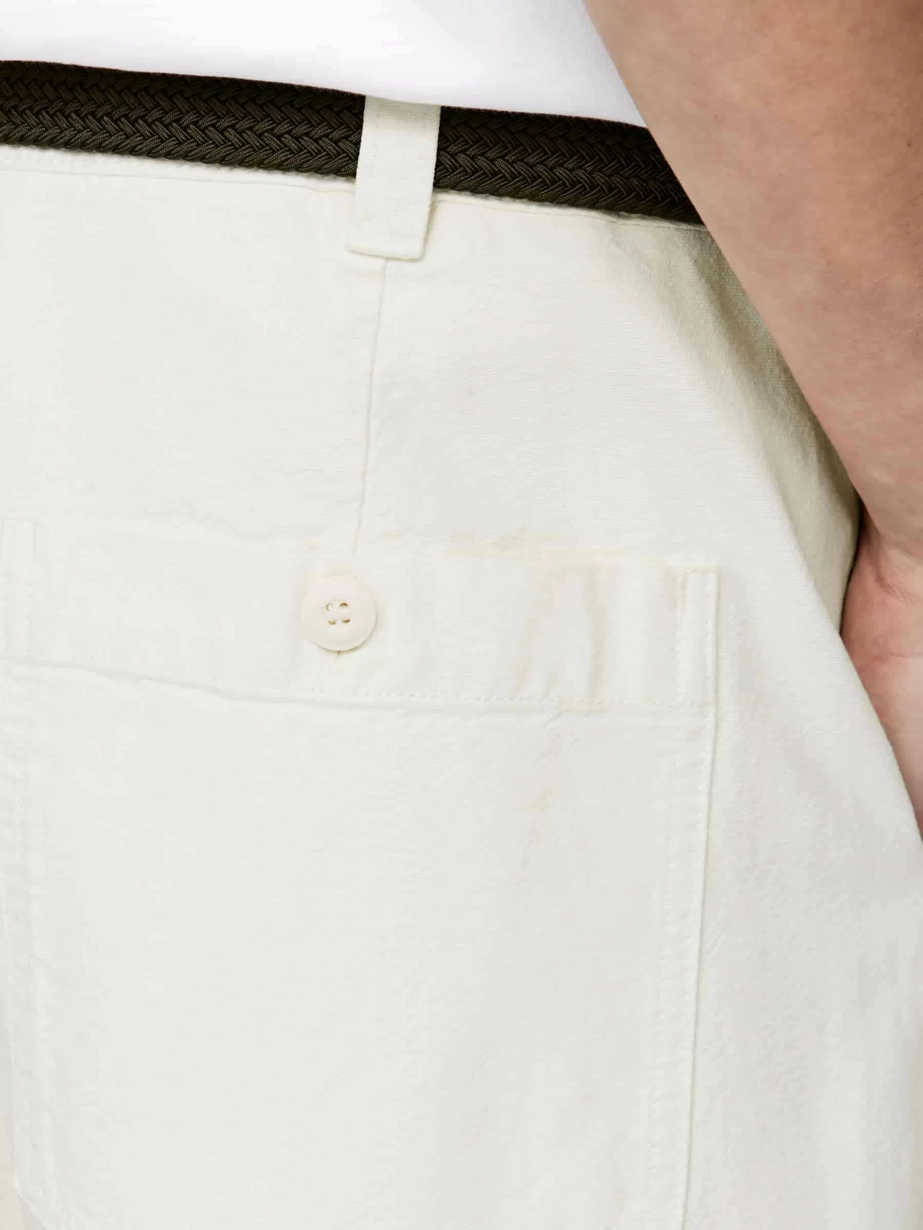 Locker geschnittene Hose aus Baumwoll-Canvas. Mit geradem Bein und Vorder- und Gesäßtaschen. Hosenschlitz mit Reißverschluss und Knopfverschluss. Verstellbare Taillen- und Gürtelschlaufen.