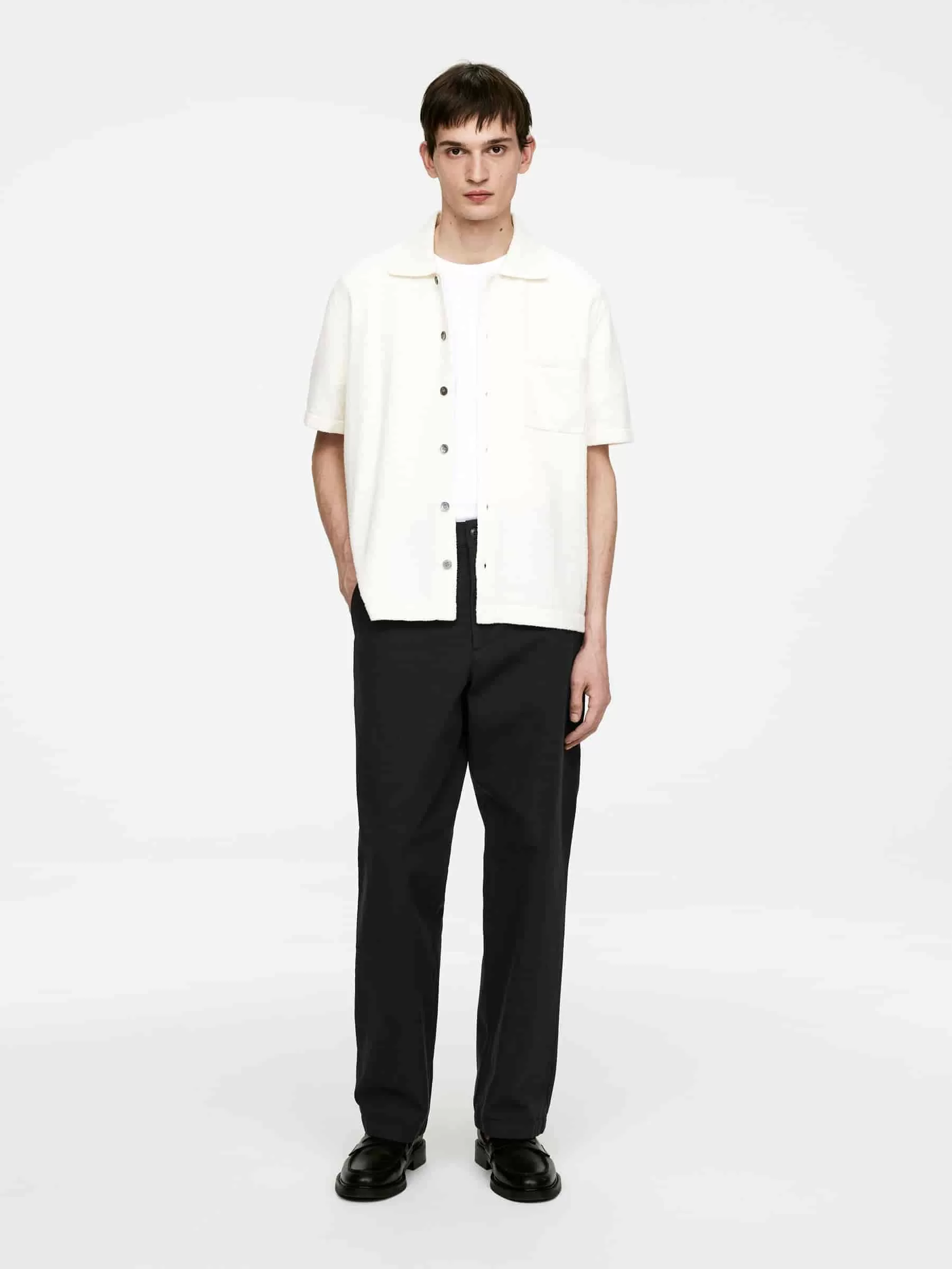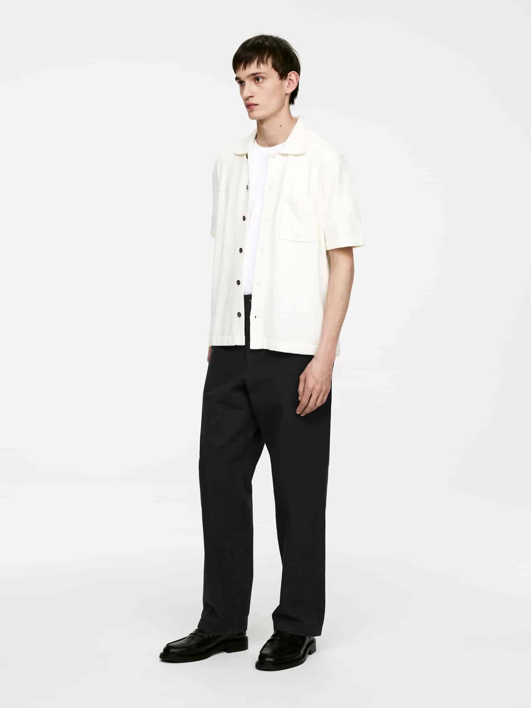 Locker geschnittene Hose aus Baumwoll-Canvas. Mit geradem Bein und Vorder- und Gesäßtaschen. Hosenschlitz mit Reißverschluss und Knopfverschluss. Verstellbare Taillen- und Gürtelschlaufen.
