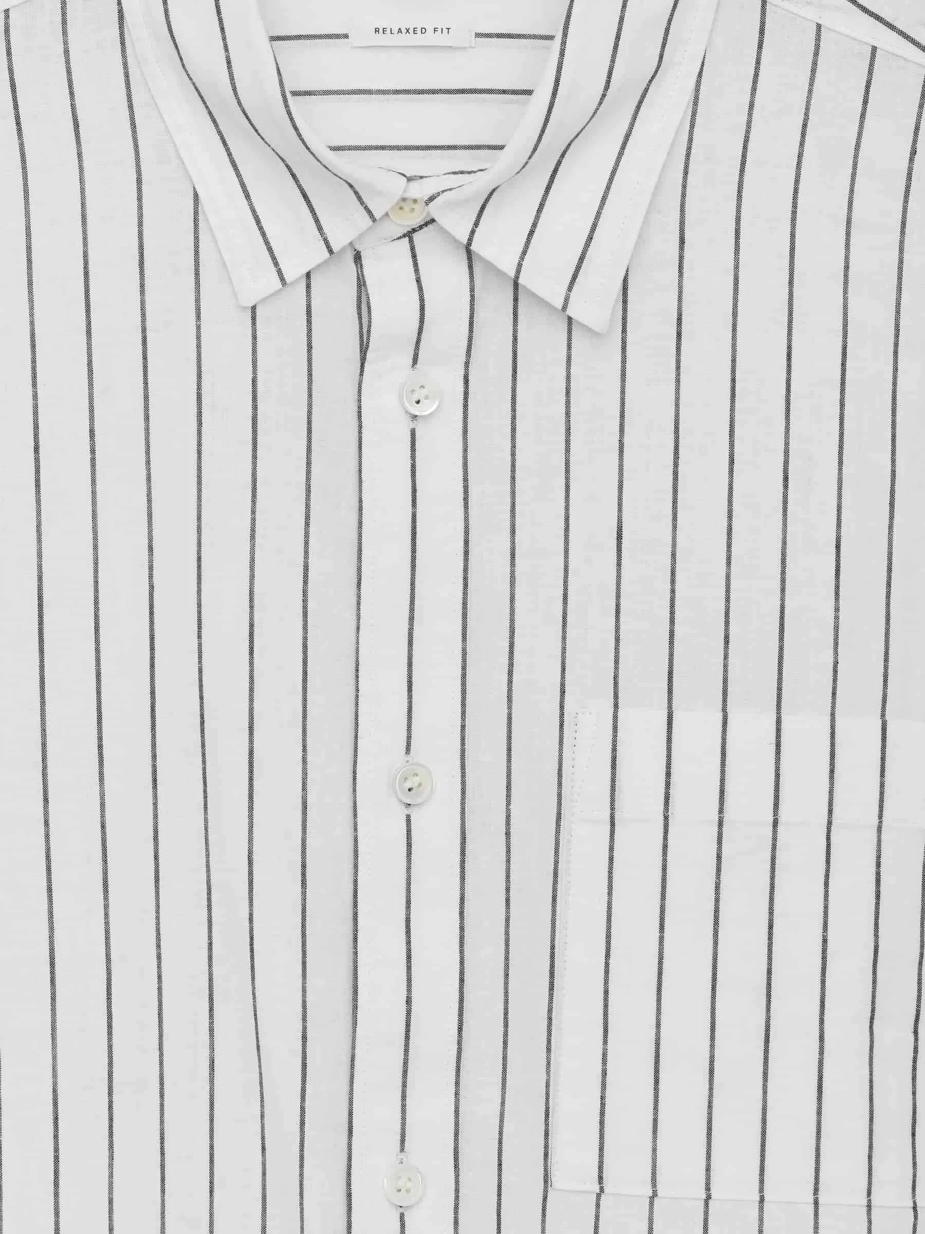 Kurzarmhemd aus einer Baumwoll-Leinen-Mischung. Für eine lockere Passform geschnitten, mit normalem Kragen und einer einzelnen Brusttasche.