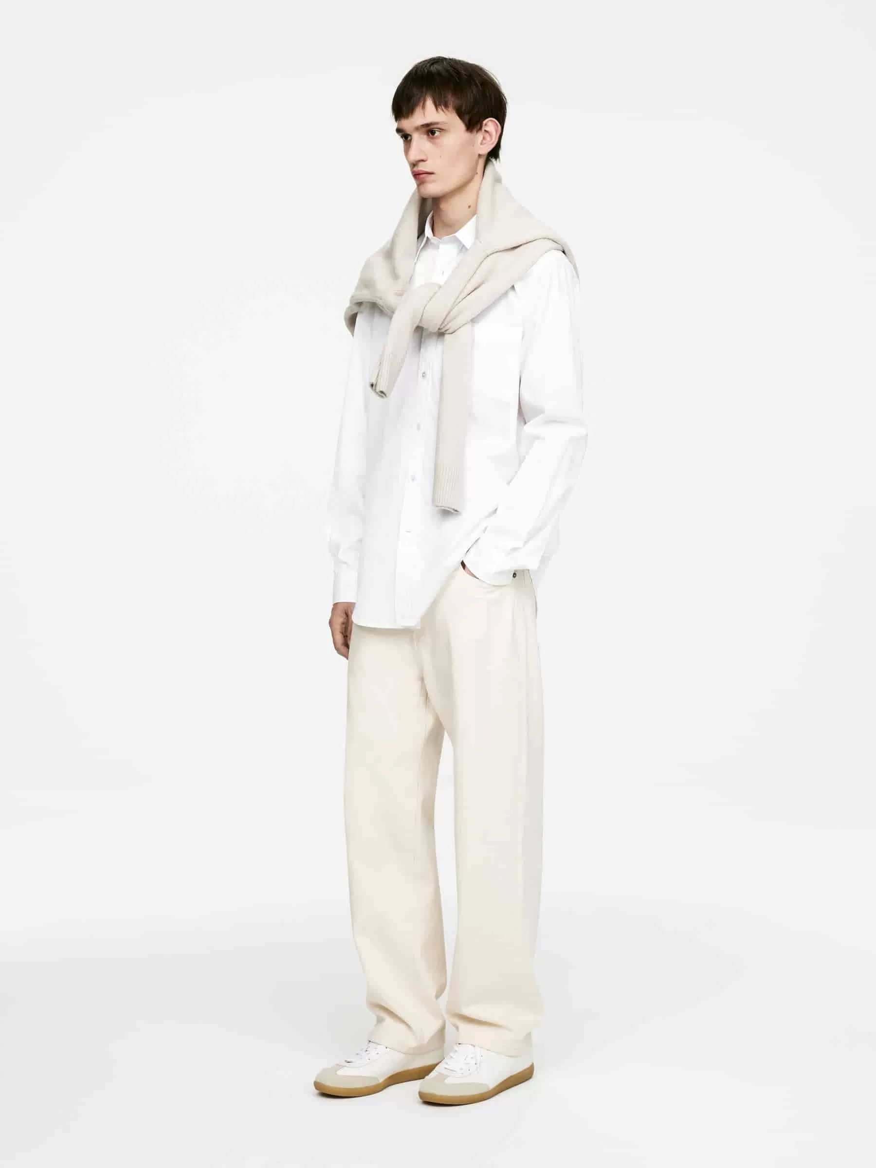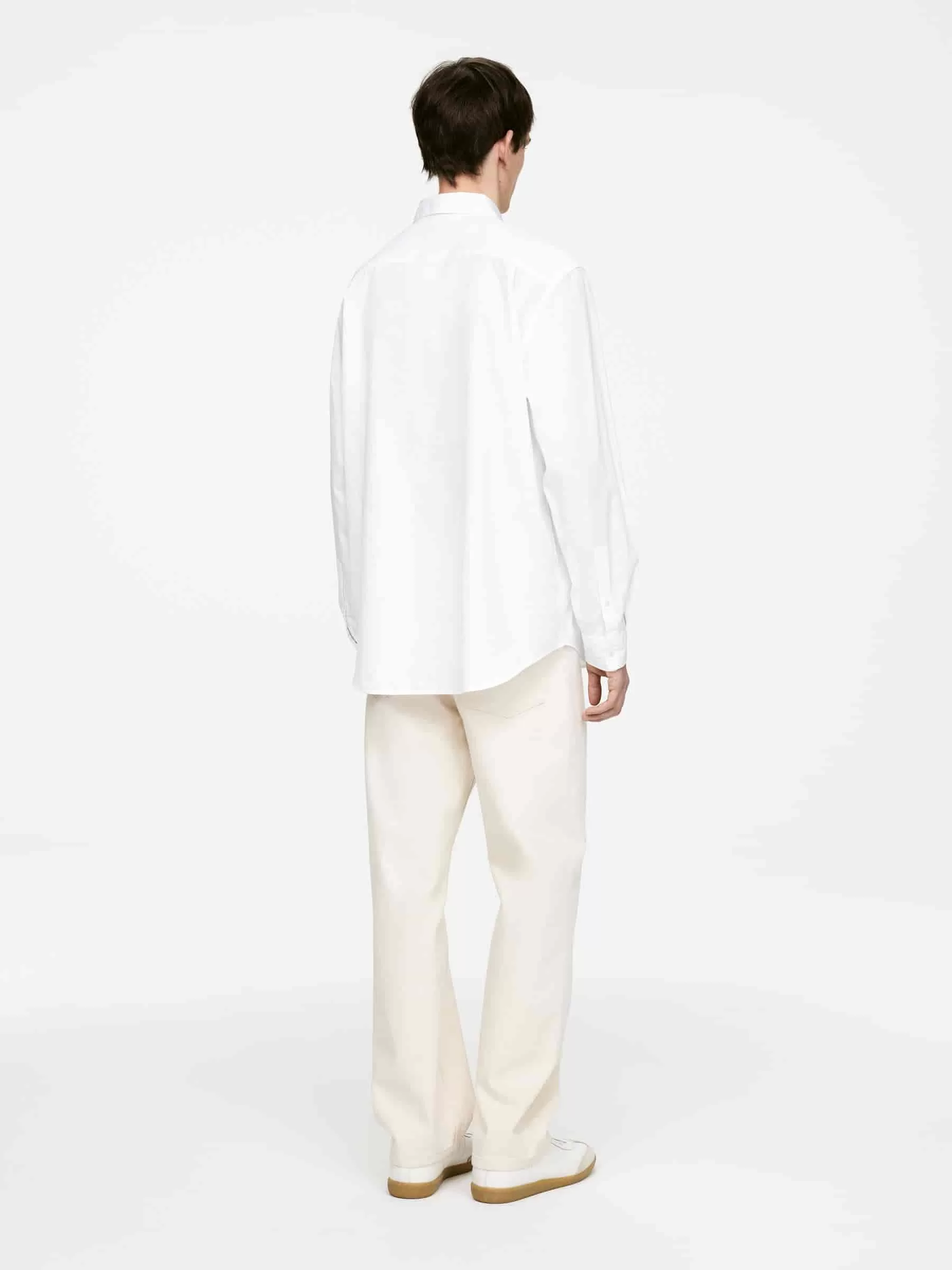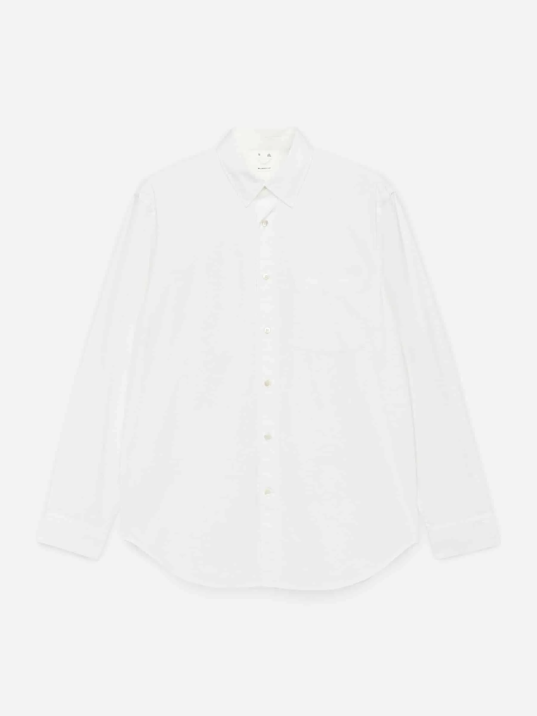Hemd aus einem Popeline-Stoff aus Baumwolle genäht. Ausgestattet mit einer einzelnen Brusttasche und geknöpften Manschetten. Entspannte Passform.