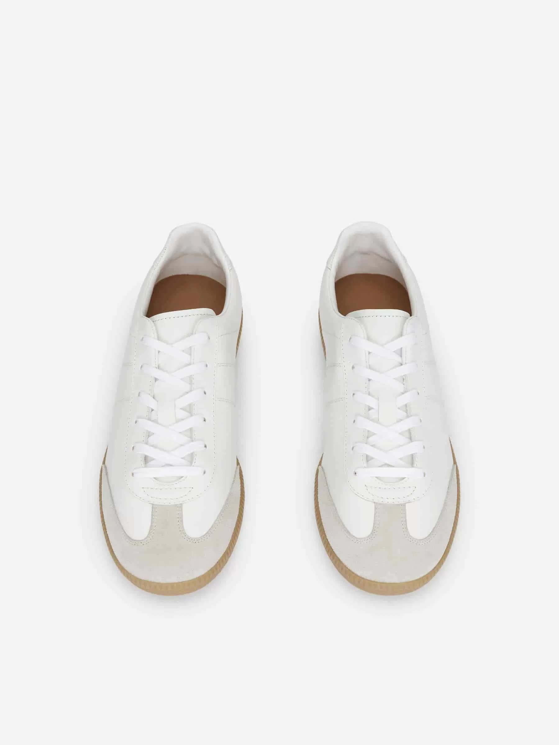 Ledersneaker mit Wildlederdetails. Ein Schnürmodell mit Gummisohle.