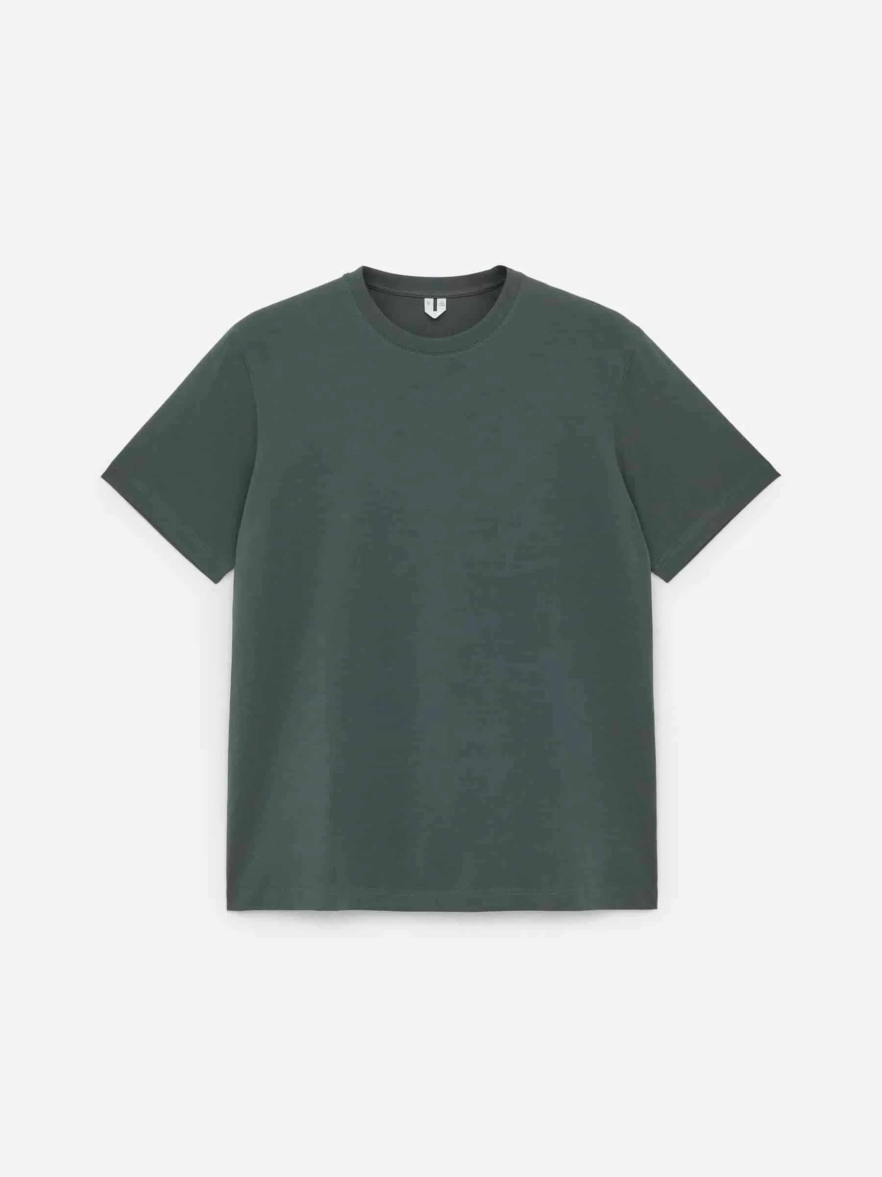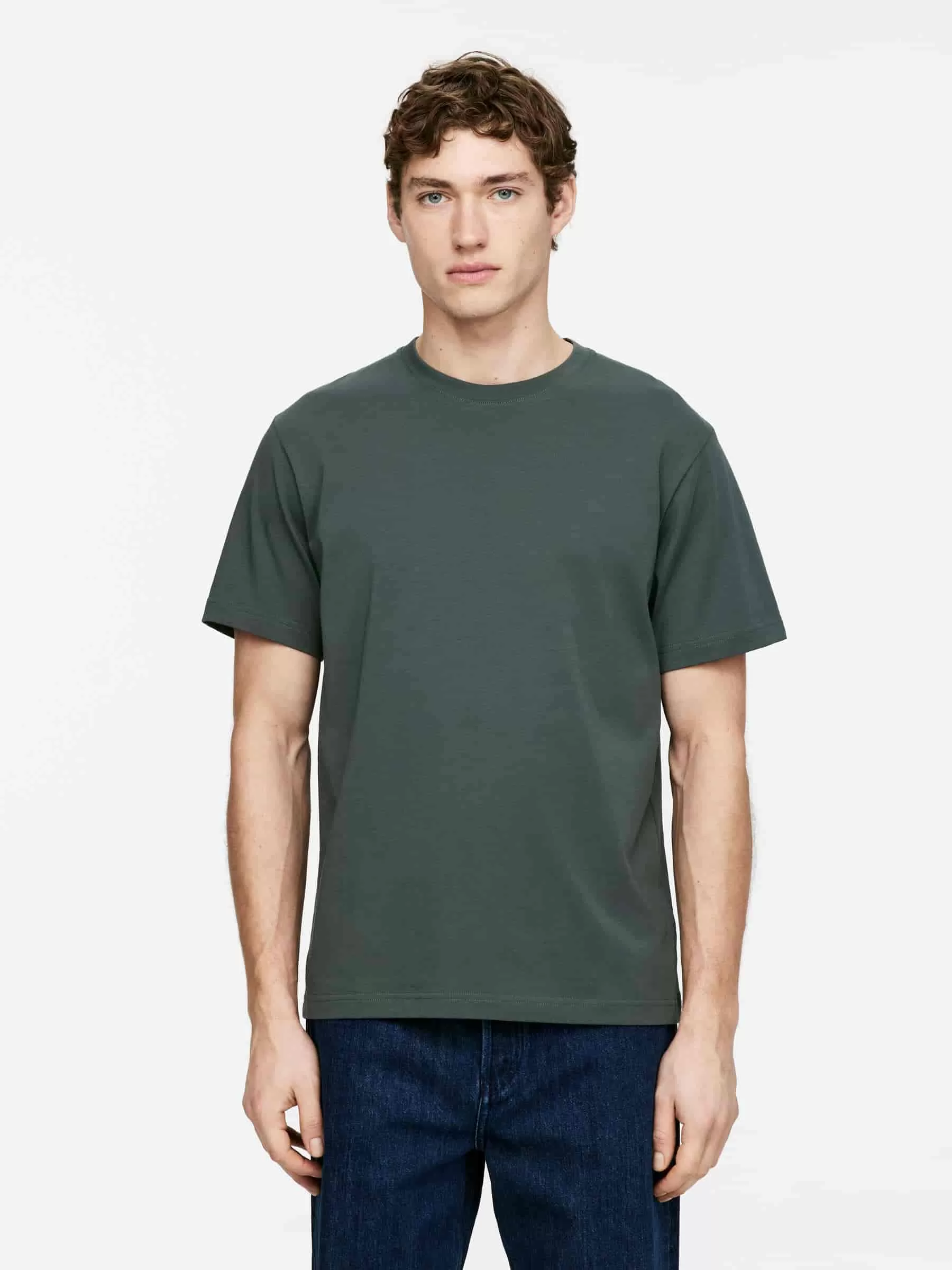 Klassischer T-Shirt-Schnitt mit Rundhalsausschnitt für eine normale Passform. Es besteht aus 170 GSM Single Jersey, was darauf hinweist, dass es das leichteste der Standard-T-Shirts von ARKET ist.