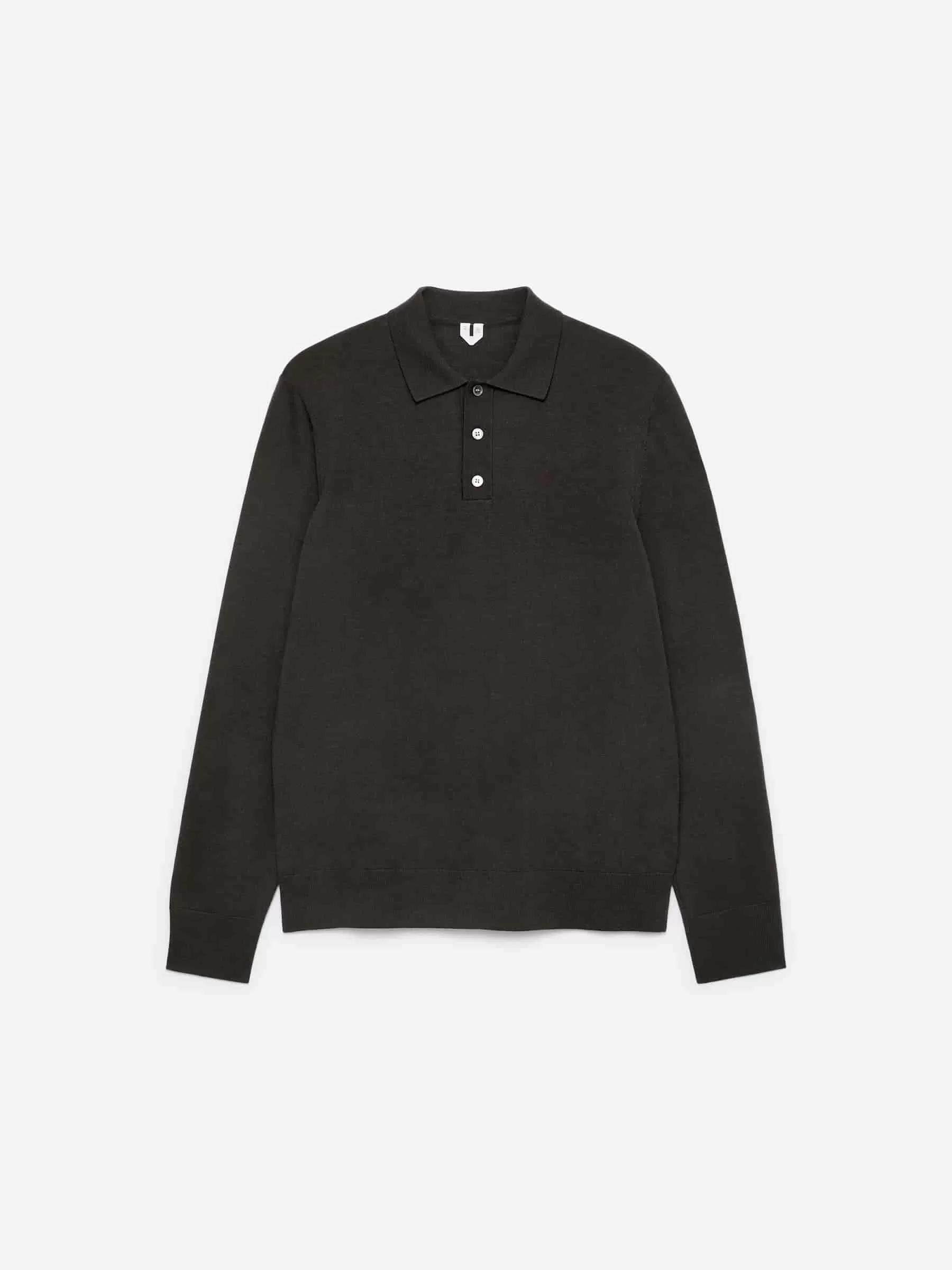 ARKE Herren Merino-Polopullover Dunkelbraun