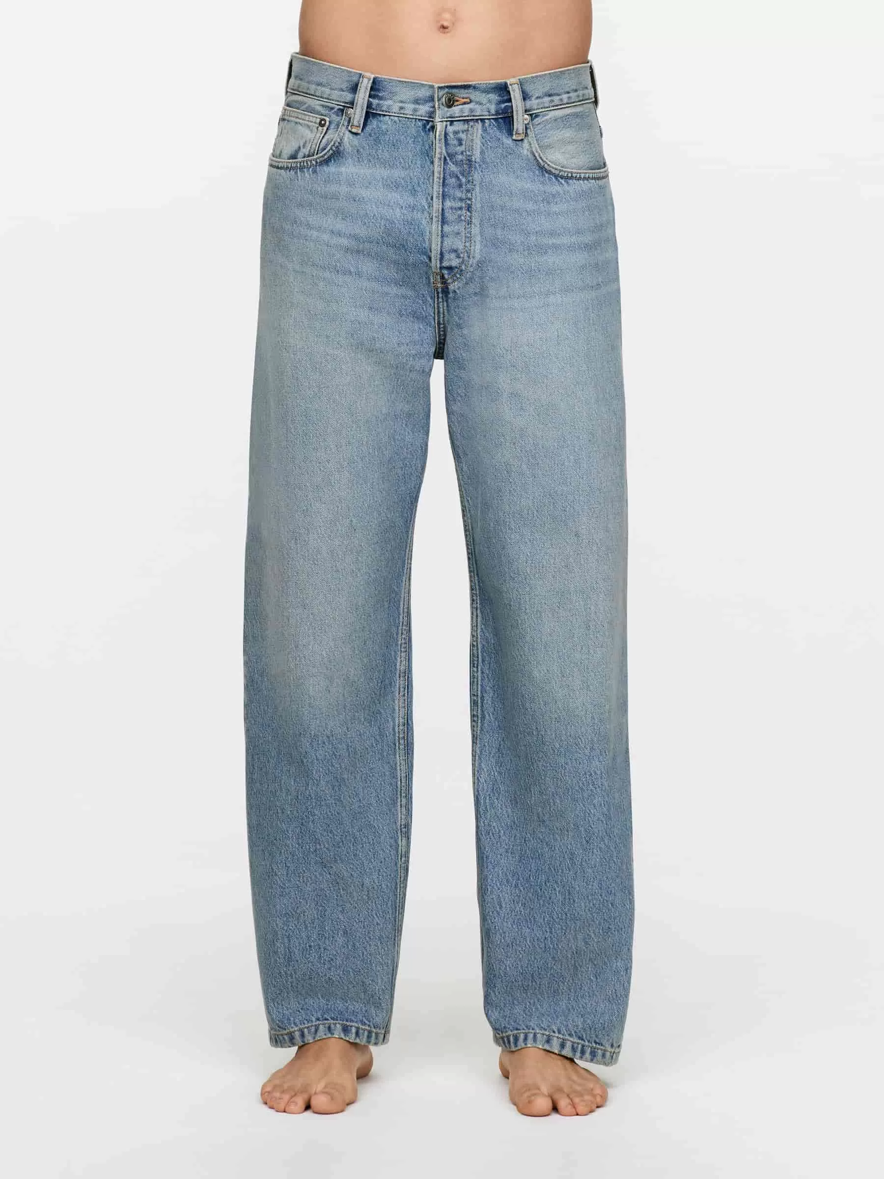MIST ist unsere weiteste Passform, geschnitten aus nicht dehnbarem Baumwolldenim. Es verfügt über einen tiefen Schritt, eine lockere Passform, die mehr Platz um den Sitz herum bietet, und breite, durchgehende Beine. Knopfleiste.