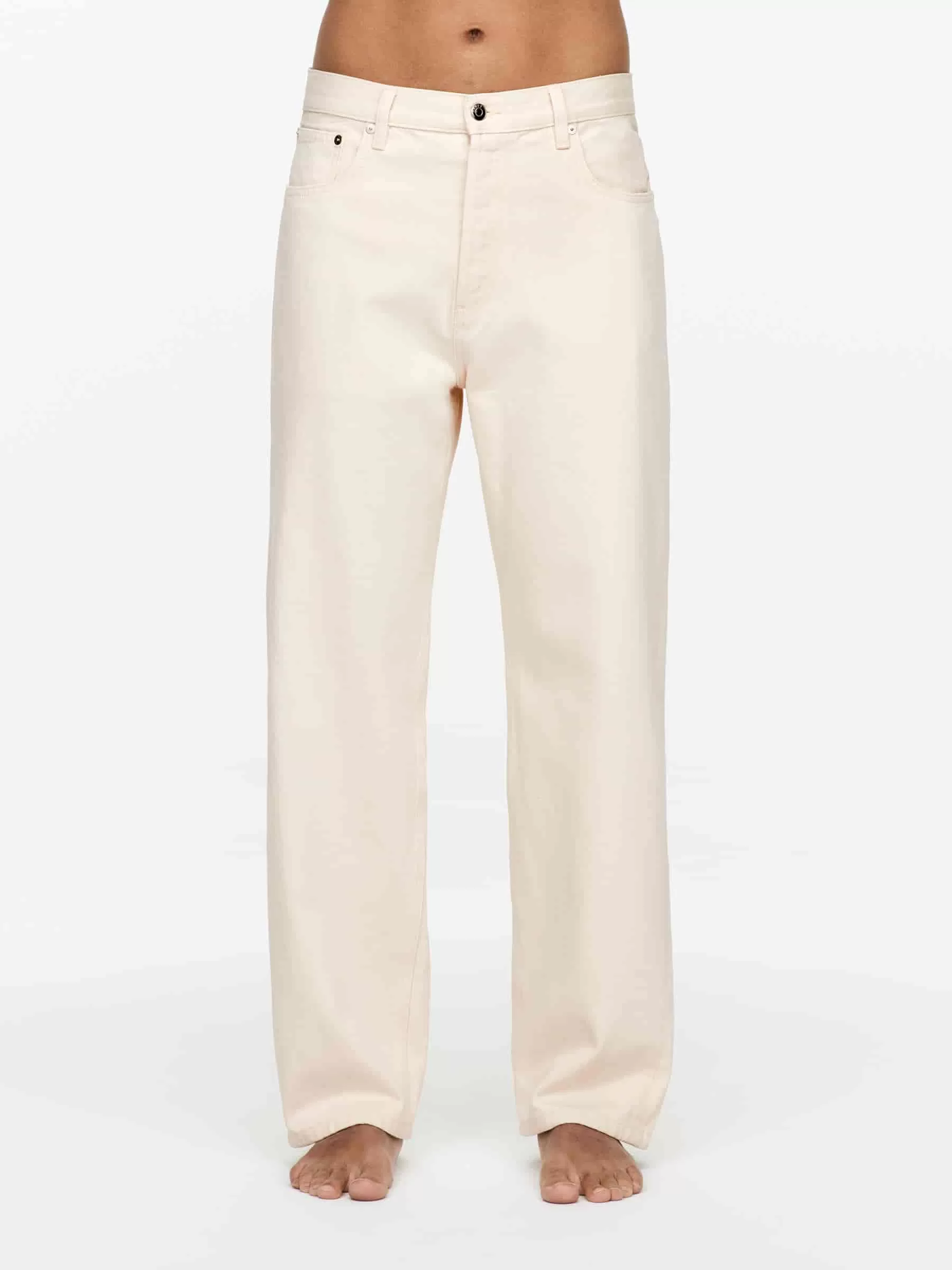 MIST ist unsere weiteste Passform, geschnitten aus nicht dehnbarem Baumwolldenim. Es verfügt über einen tiefen Schritt, eine lockere Passform, die mehr Platz um den Sitz herum bietet, und breite, durchgehende Beine. Knopfleiste.