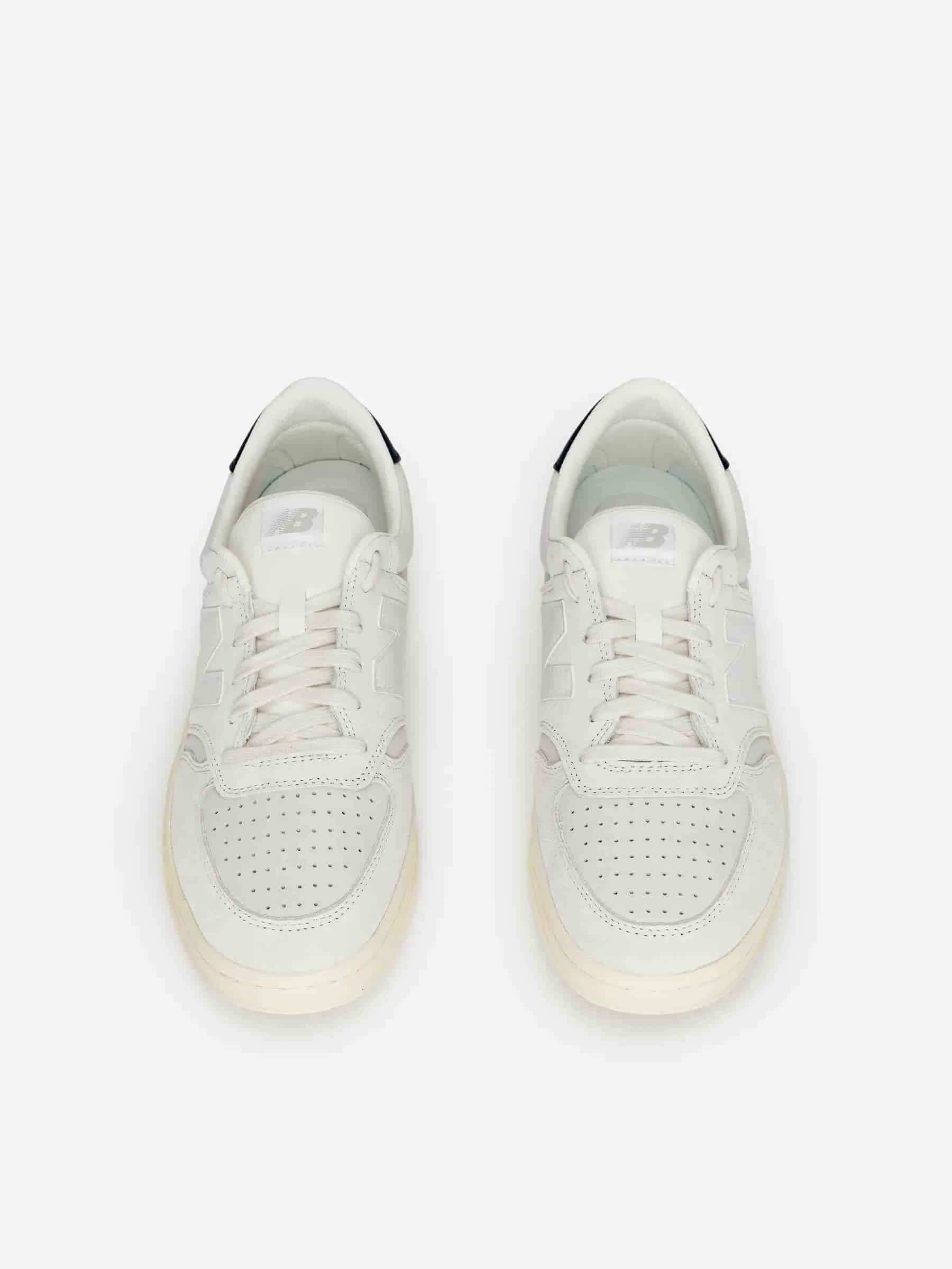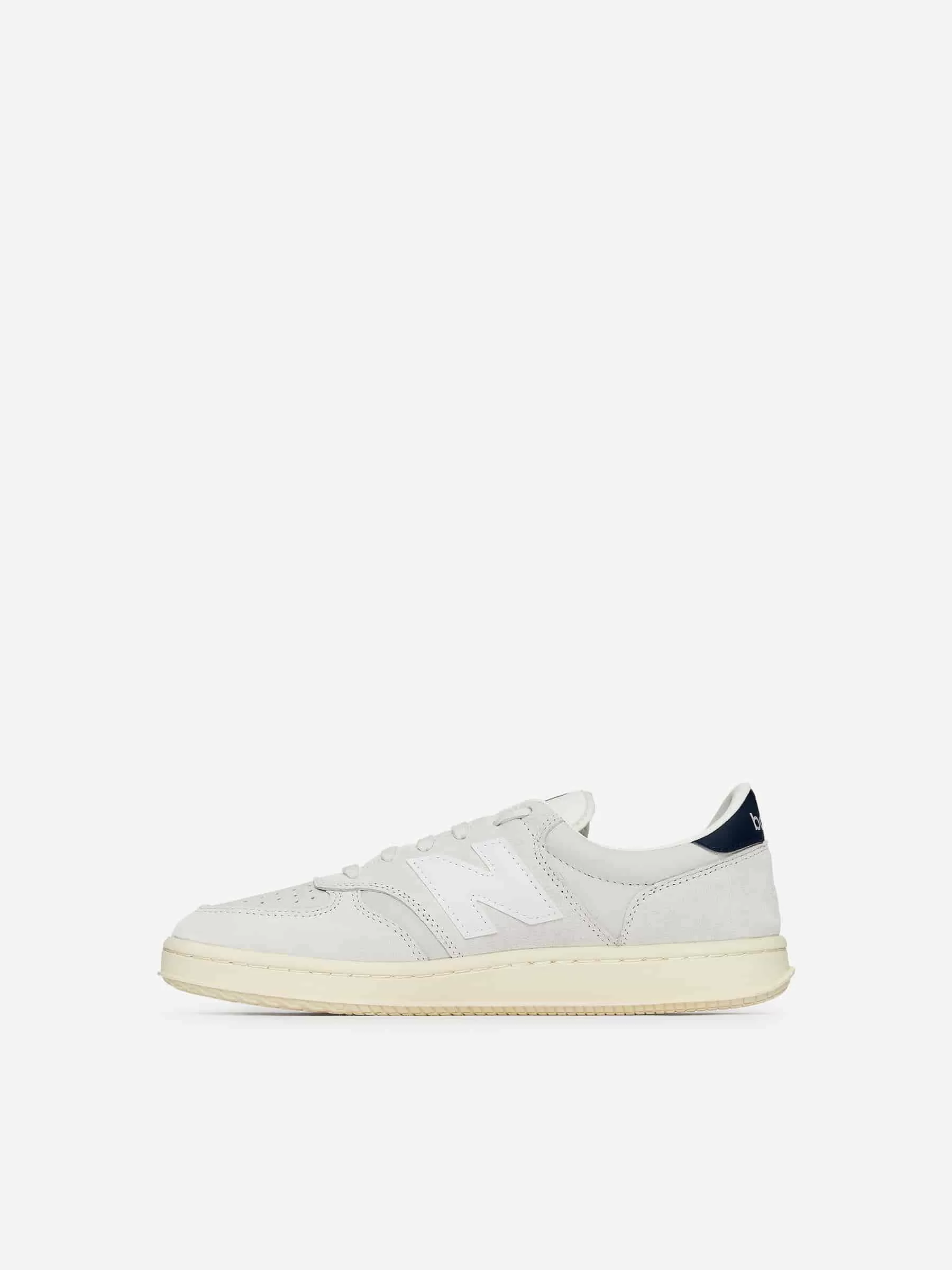 Der New Balance CT500 wurde ursprünglich 1982 für den Tennisplatz entwickelt. Diese Version ist aus Wildleder und Nubuk gefertigt, mit Leder besetzt und mit perforierten Details für Atmungsaktivität versehen.
