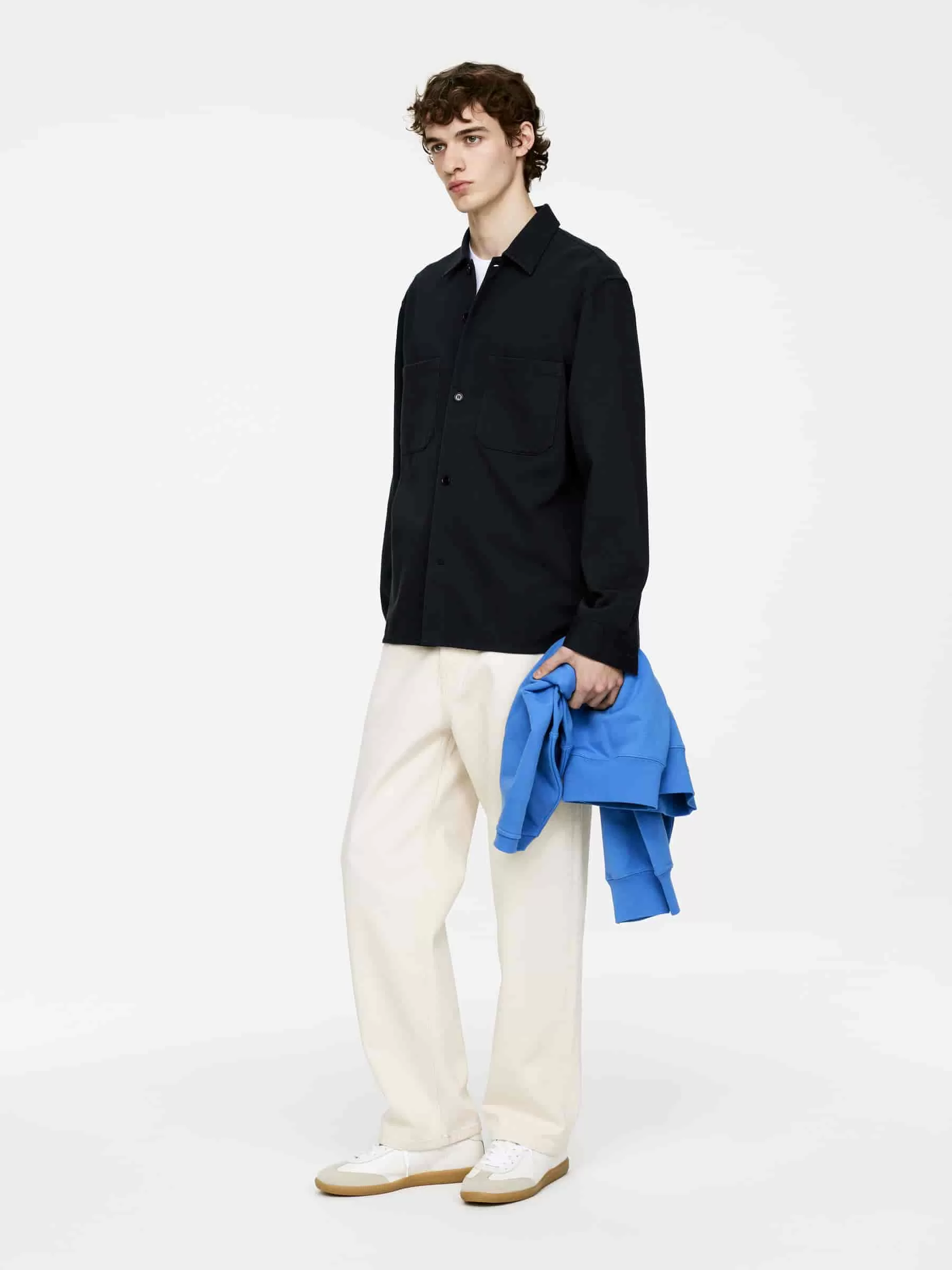 Overshirt aus glattem Baumwoll-Twill-Gewebe. Ein normal geschnittener Stil mit Brusttaschen, Bügelkragen sowie Knopfleiste und Manschetten.