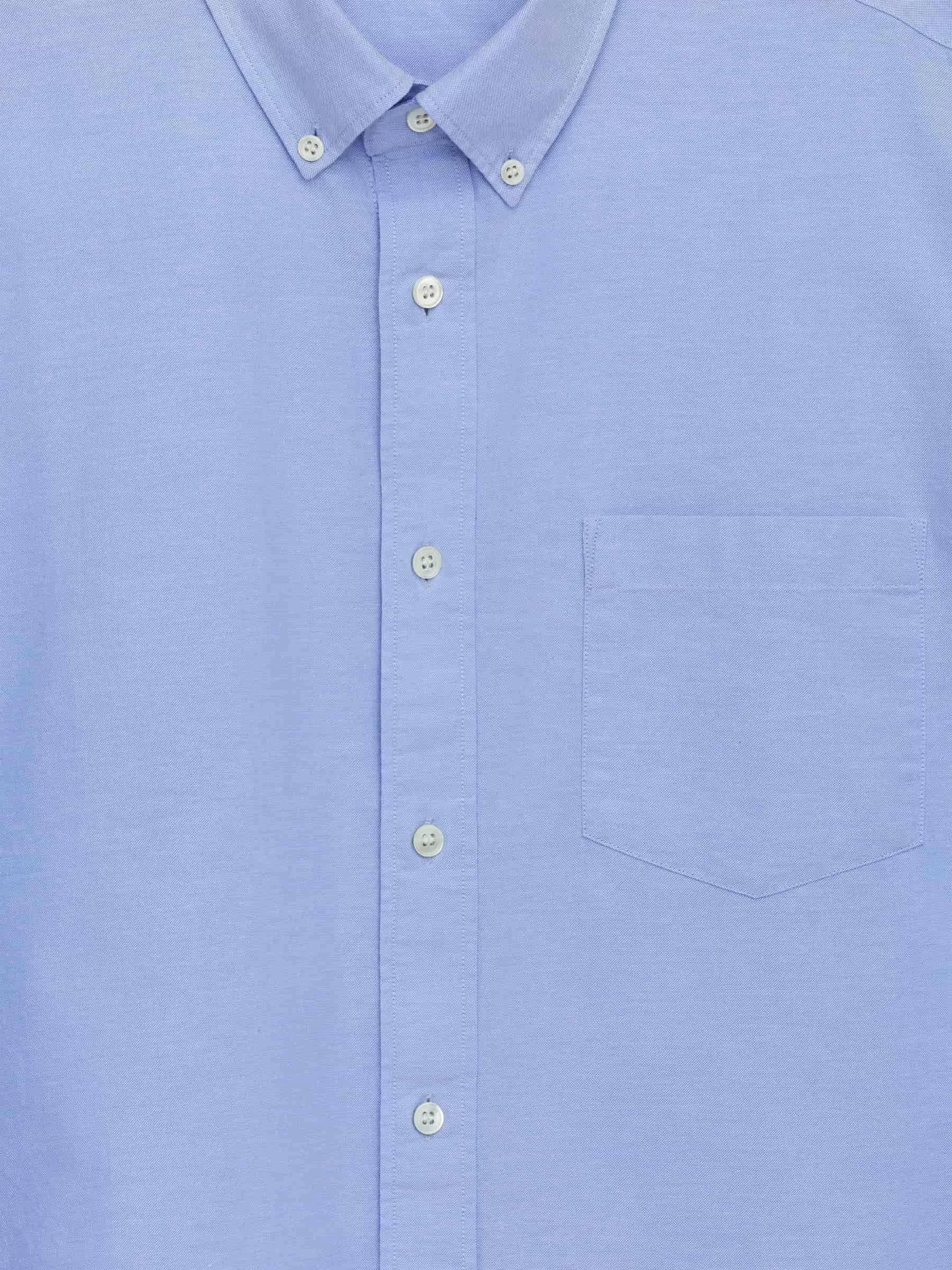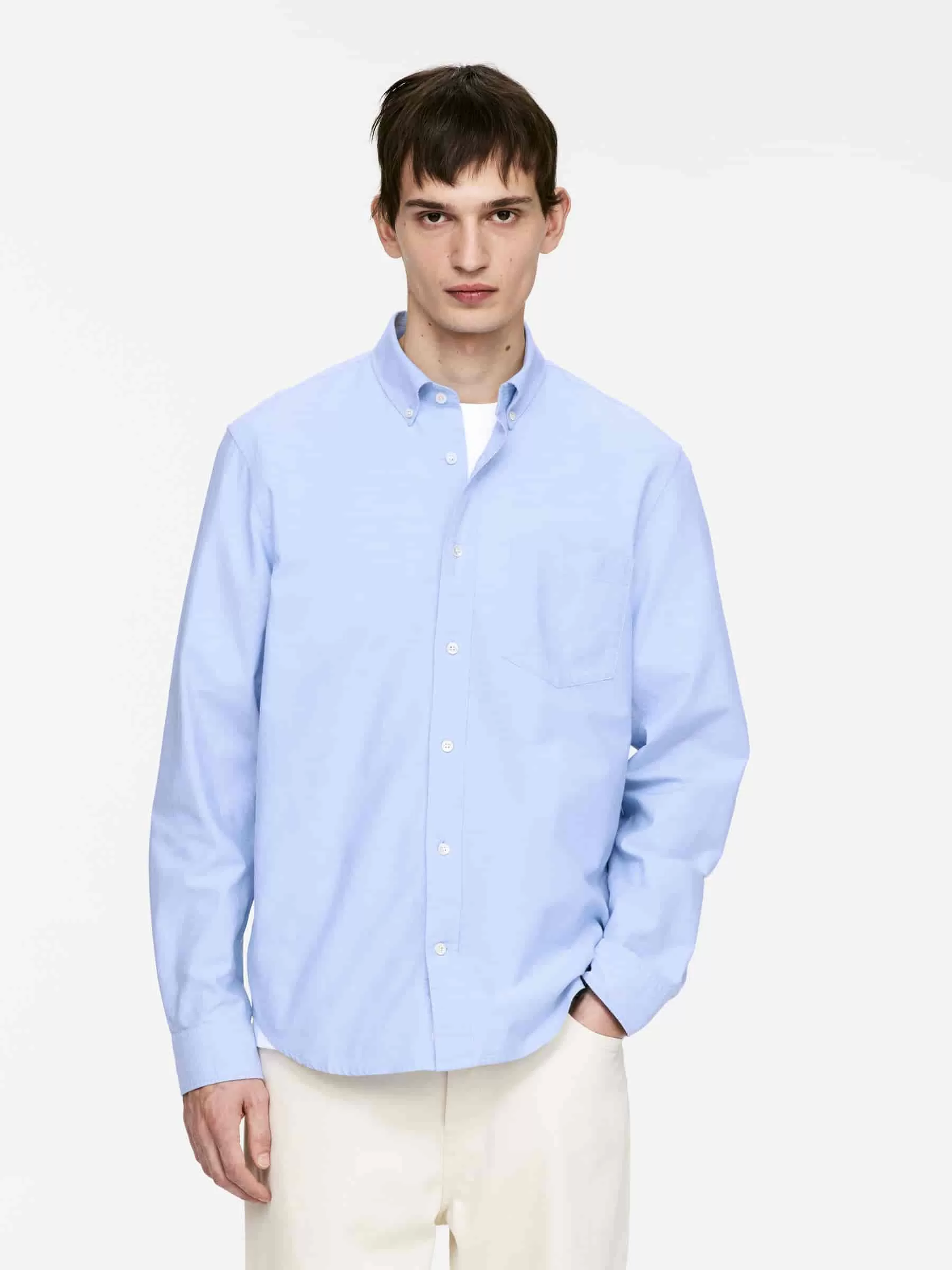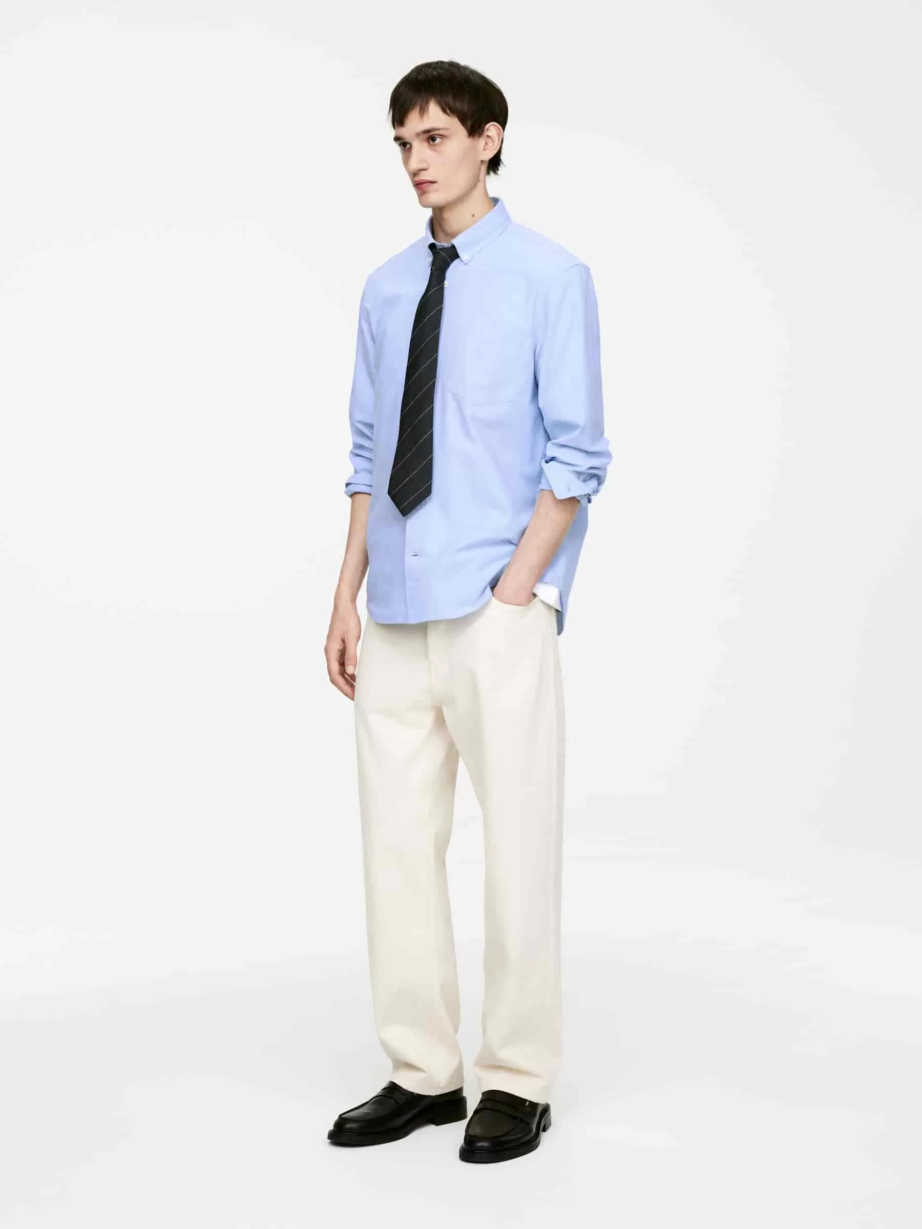 Dieses Hemd ist eines der archetypischen Designs von ARKET, ein normal geschnittenes Hemd mit Button-Down-Kragen. Diese Iteration ist aus einem Oxford-Gewebe genäht. Ein lässiger Stil mit normaler Knopfleiste vorne und einer Brusttasche. Abgerundeter Saum.