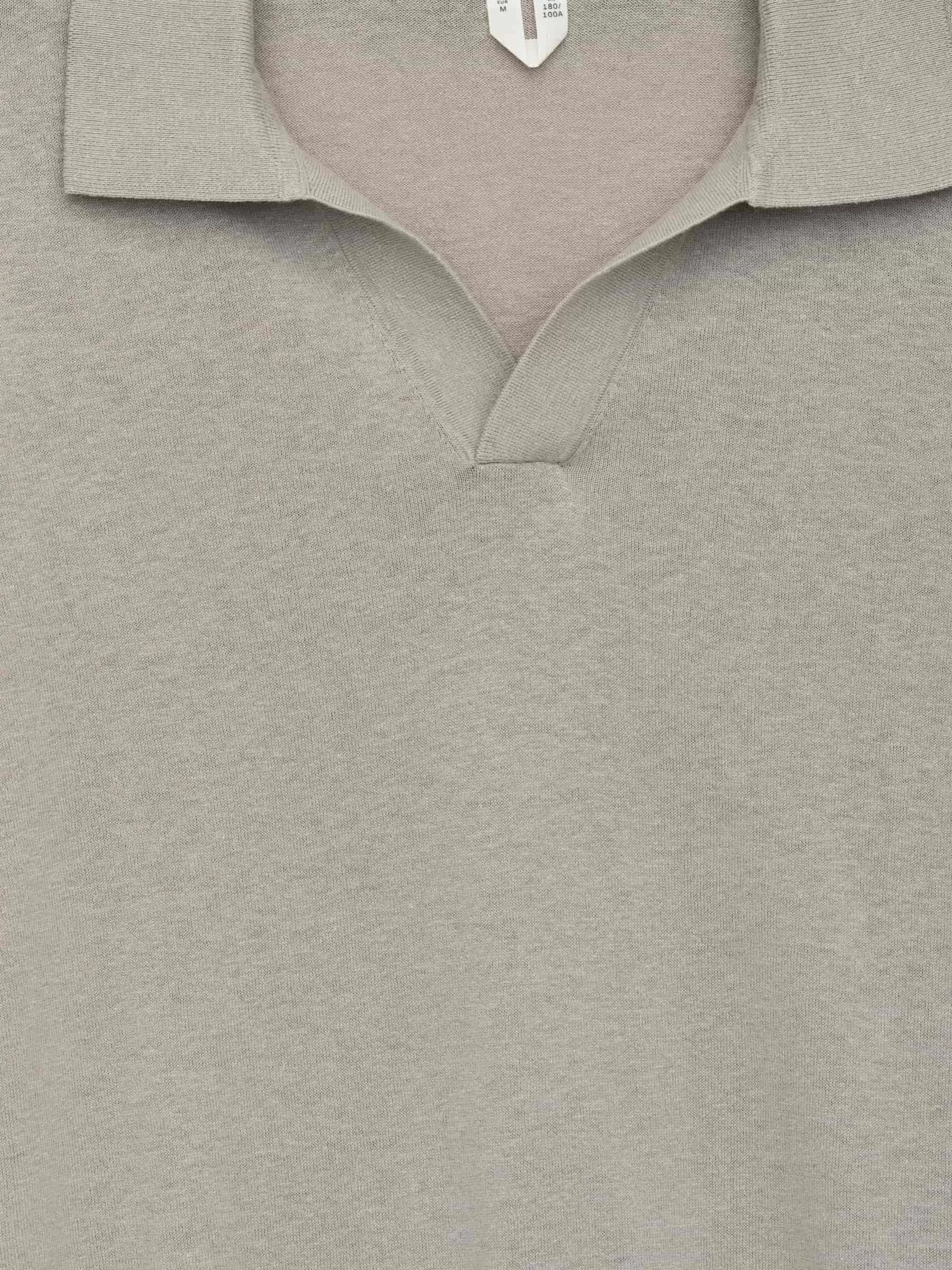 Die Mischung aus Leinen und Baumwolle verleiht diesem Feinstrick-Poloshirt einen weichen, kühlenden Tragekomfort. Ein lässiger Kurzarmstil mit Rippstrickkragen und V-Ausschnitt. Normale Passform.
